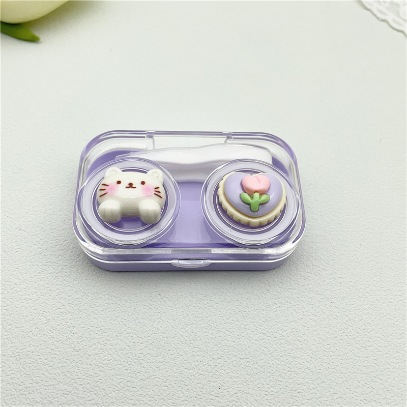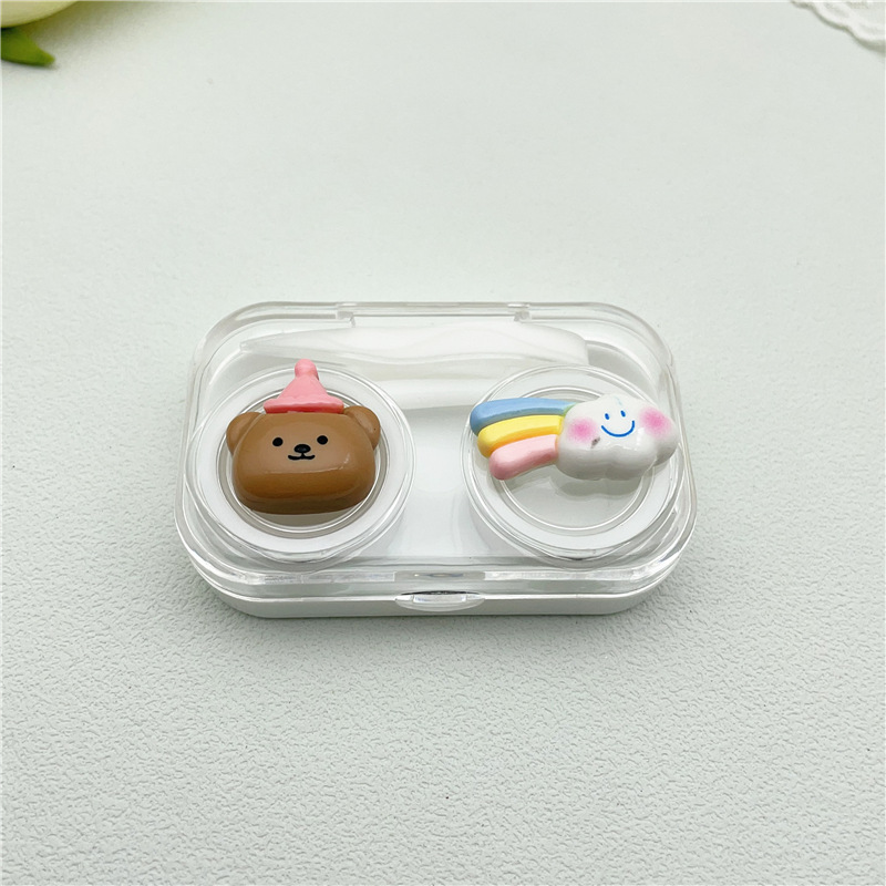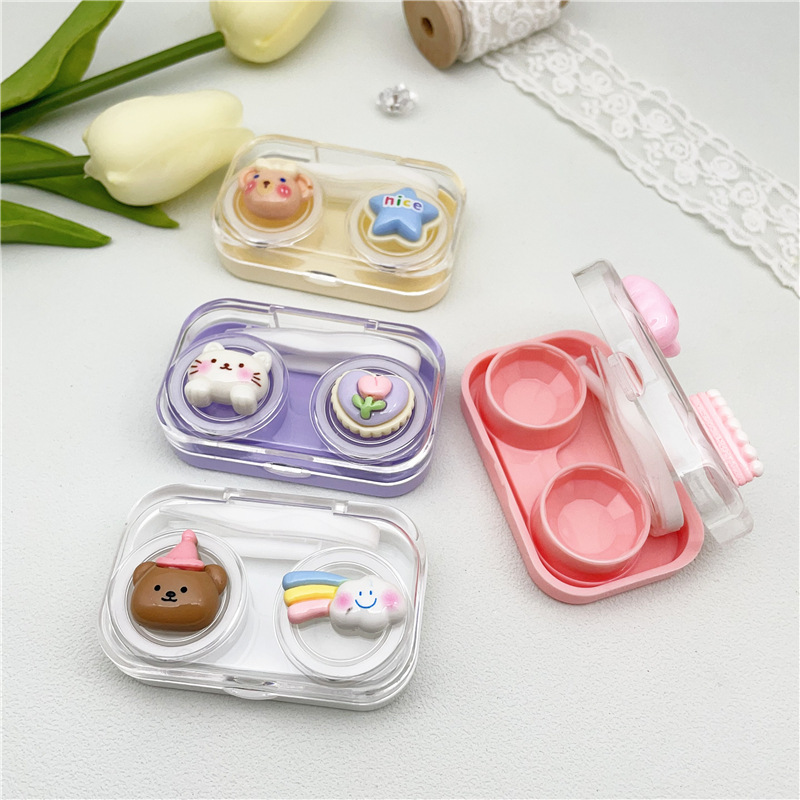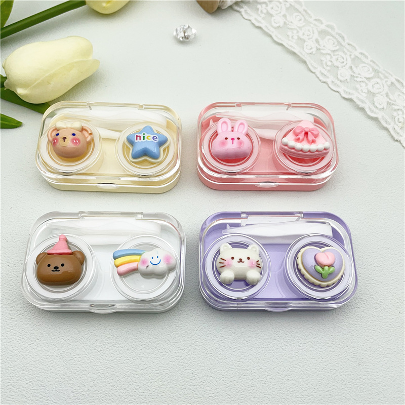 新款diy美瞳盒隐形眼镜伴侣盒双联盒一开即用便携