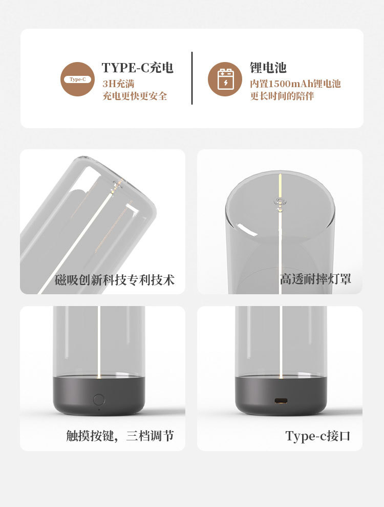 外贸专供LED露营灯 Type-c充电防蓝光便携式小夜灯高透耐摔创意灯