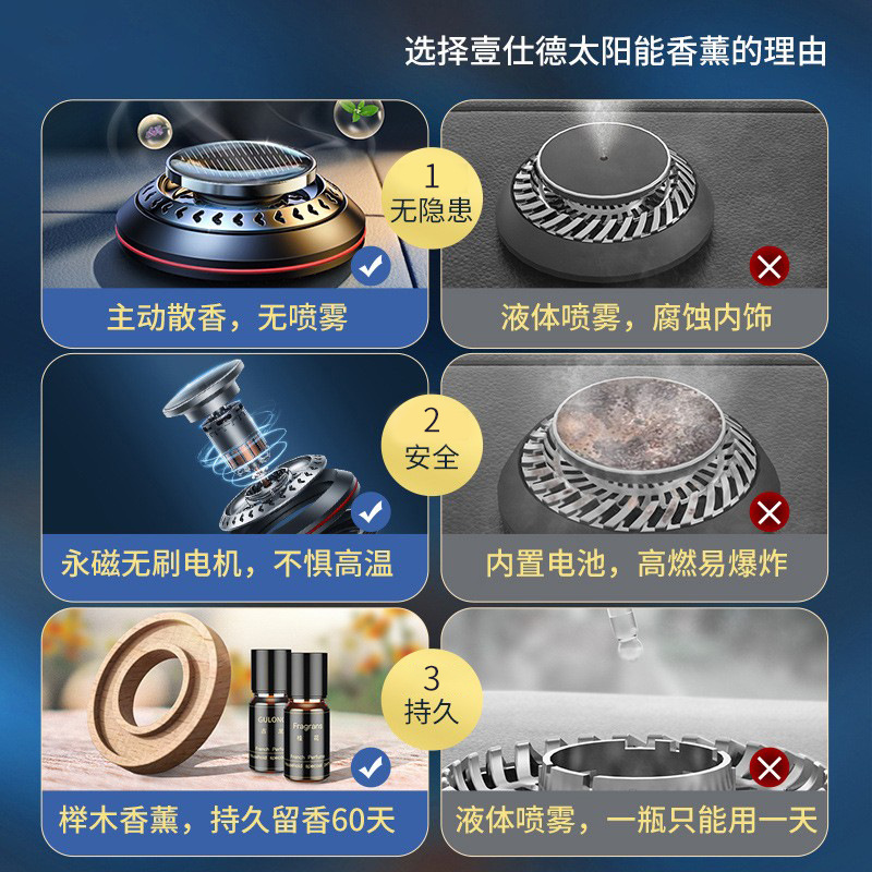 创意汽车内饰品 固体摆件精油香水底座批发 铝合金太阳能车载香熏
