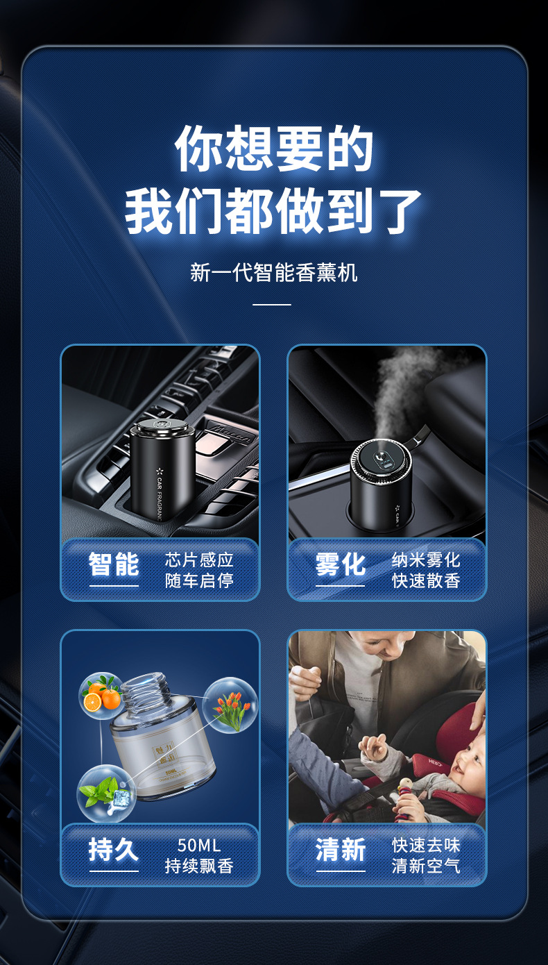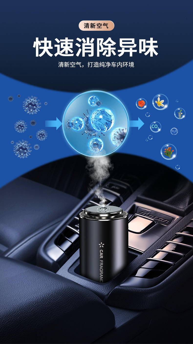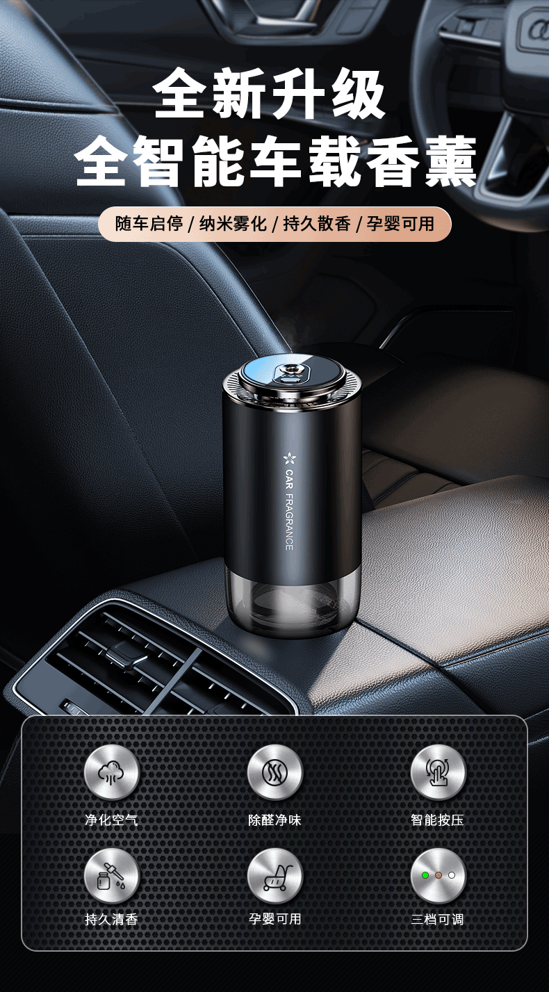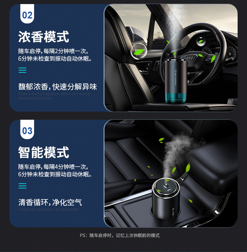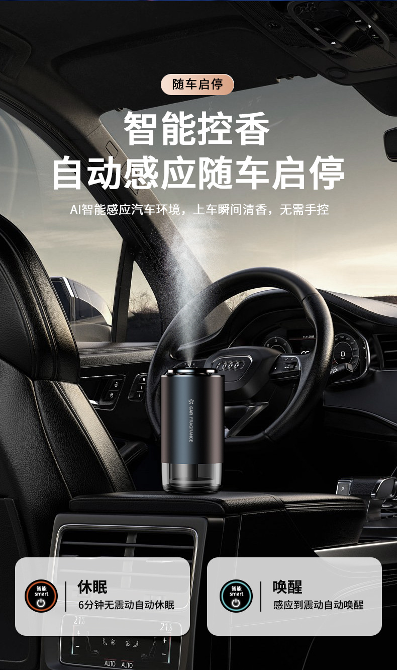 汽车智能喷雾香薰古龙森林铝合金随车启动座式香薰车用车载香水仪