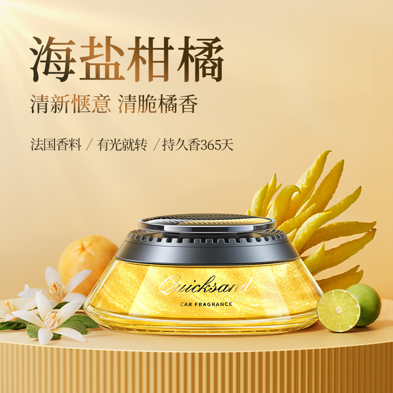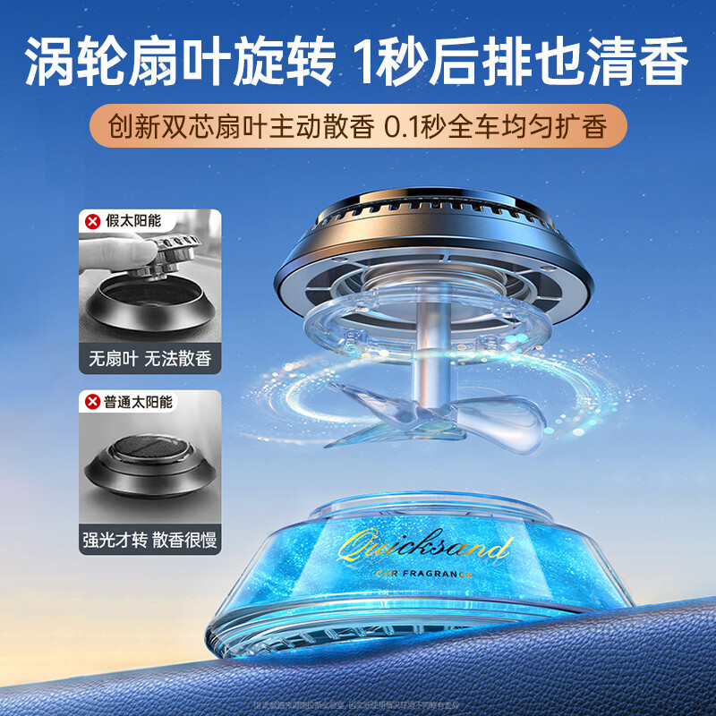 图拉斯光感旋转流沙汽车香水除醛净化空气黑科技太阳光能车载香薰