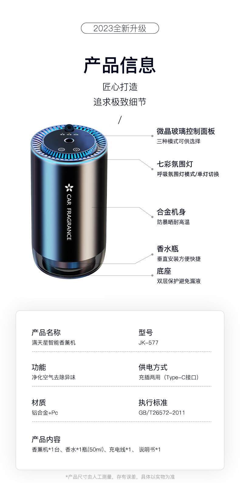 星空顶智能投影车载香薰机车用香水汽车用品七彩氛围喷雾车载香熏
