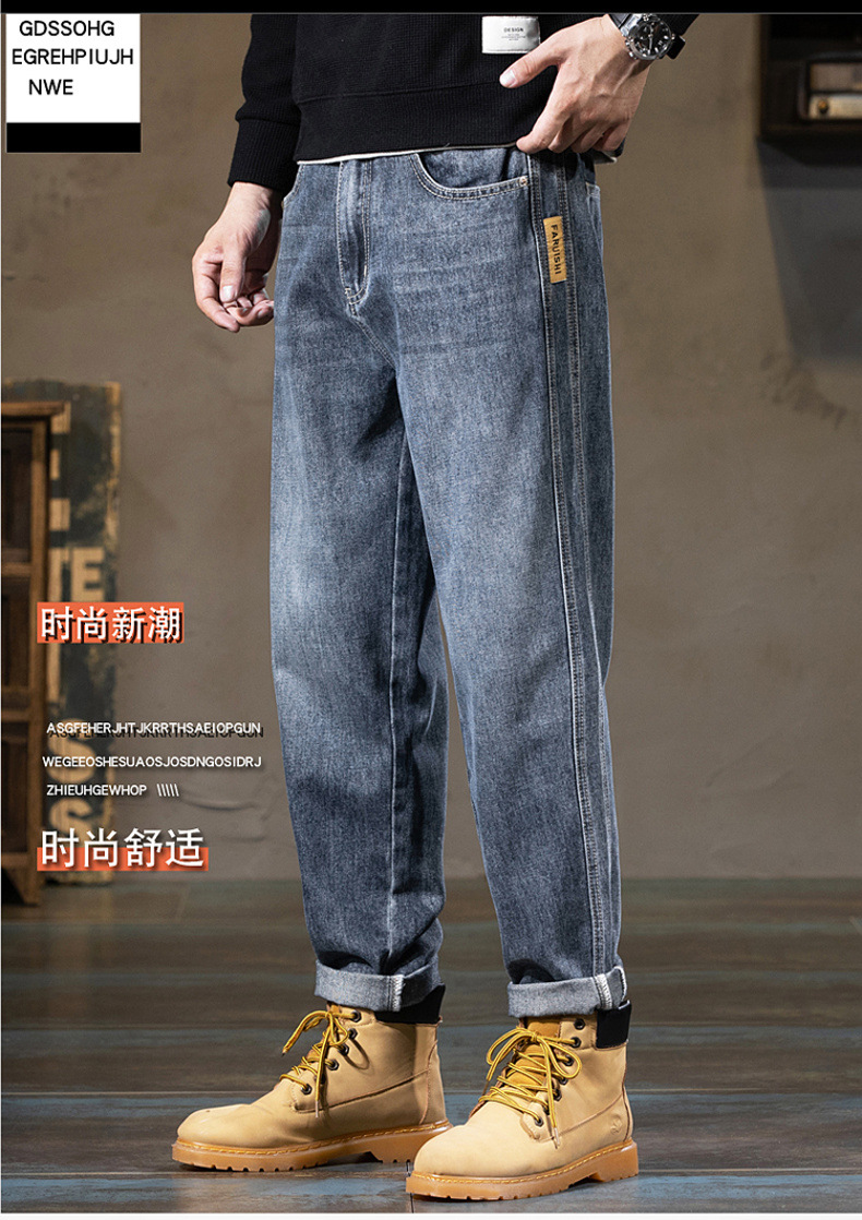 牛仔裤男士潮牌九分束脚裤2023新款宽松直筒哈伦长裤子秋季男装