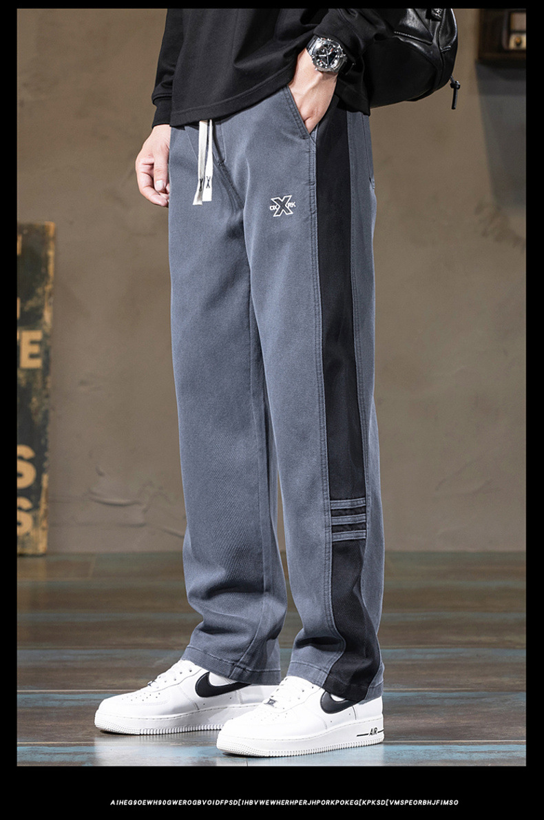 休闲裤男士2023春秋季新款潮牌垂感条纹宽松直筒裤百搭阔腿长裤子