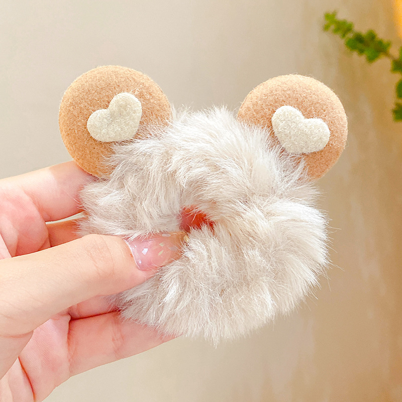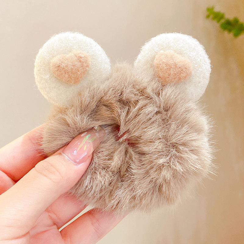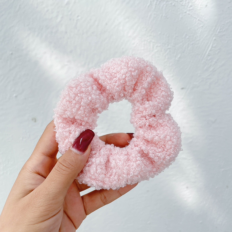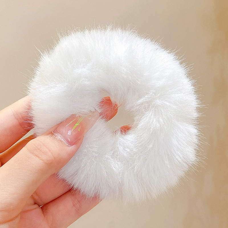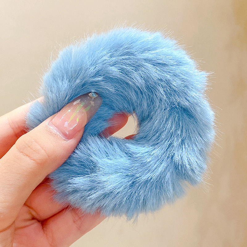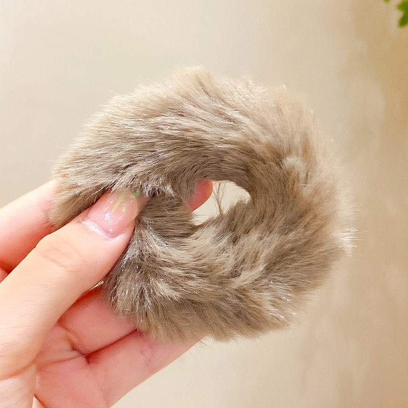 韩国温暖毛绒发圈秋冬款拼接发绳毛毛头绳批发复古猪大肠JK发饰女