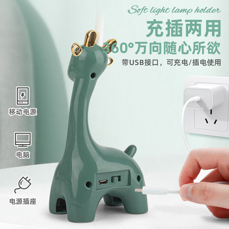 卡通长颈鹿宿舍声控夜晚卧室充电台灯床头灯小夜灯护眼看书写字灯