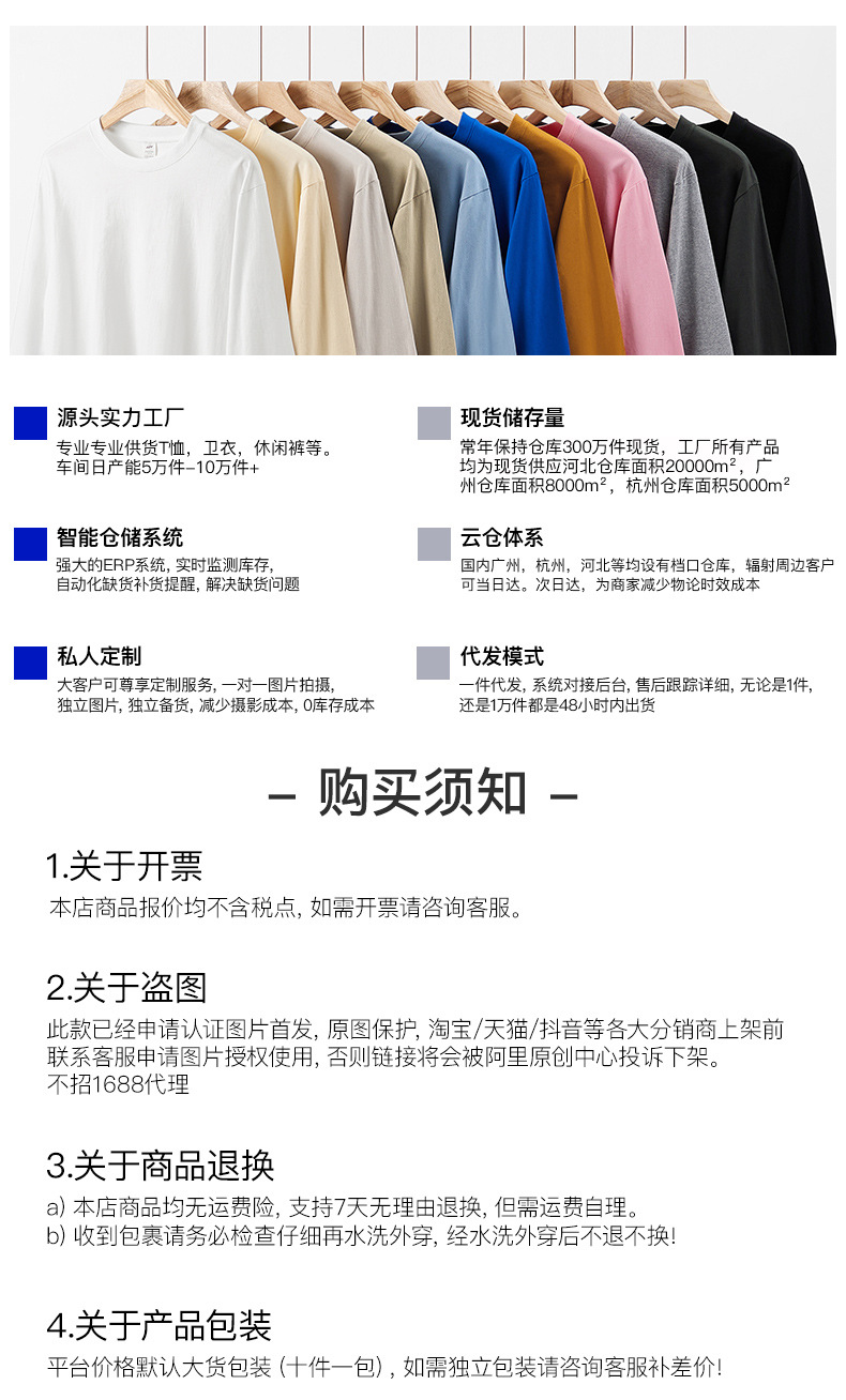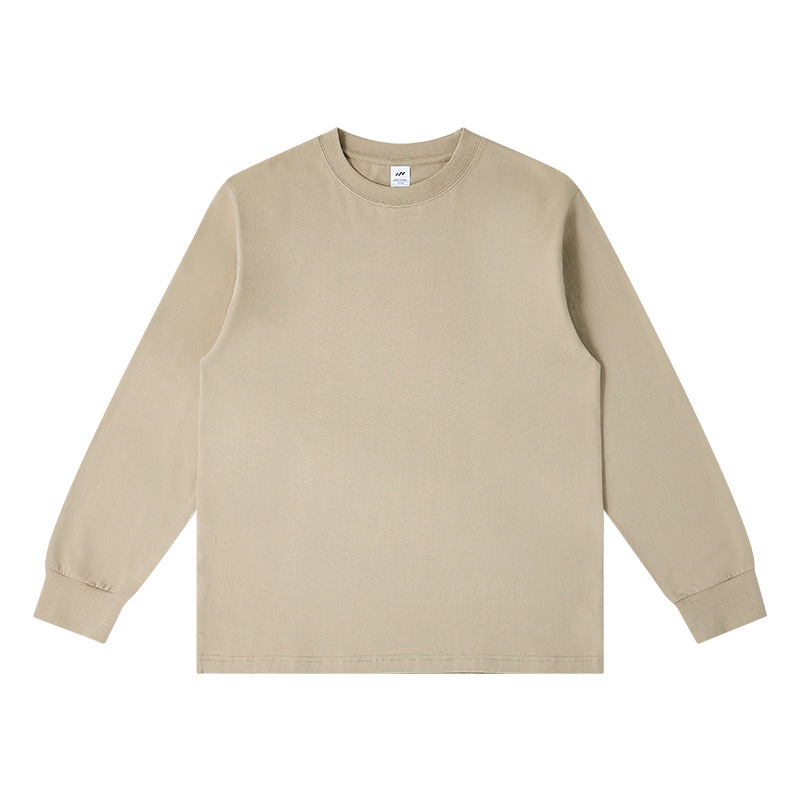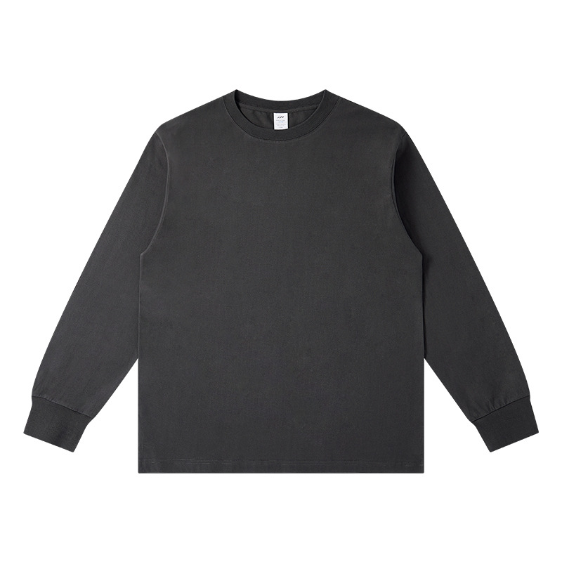 直播爆款重磅纯棉230g螺纹长袖圆领男大码宽松打底白色T恤女批发