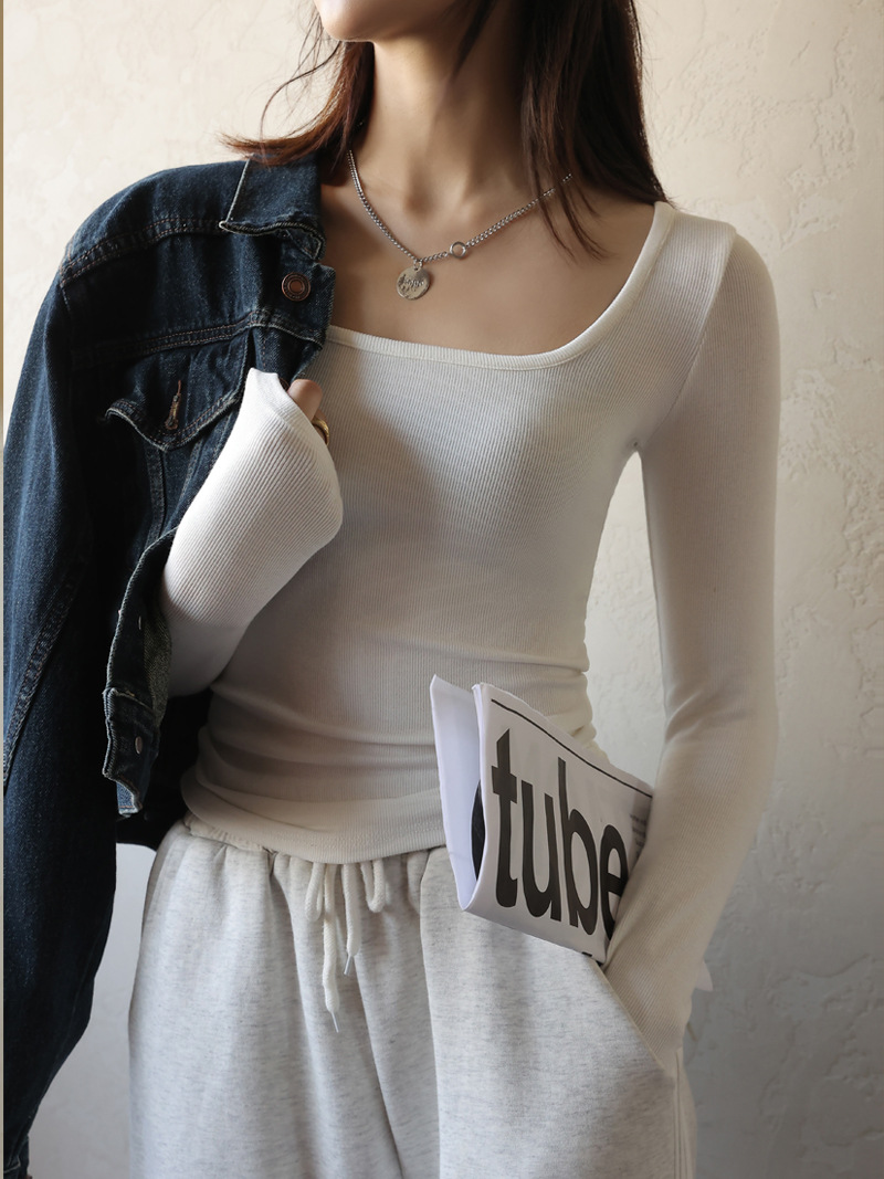 莫代尔T恤2023年秋打底衫黑色低领女春秋季上衣长袖内搭韩版修身