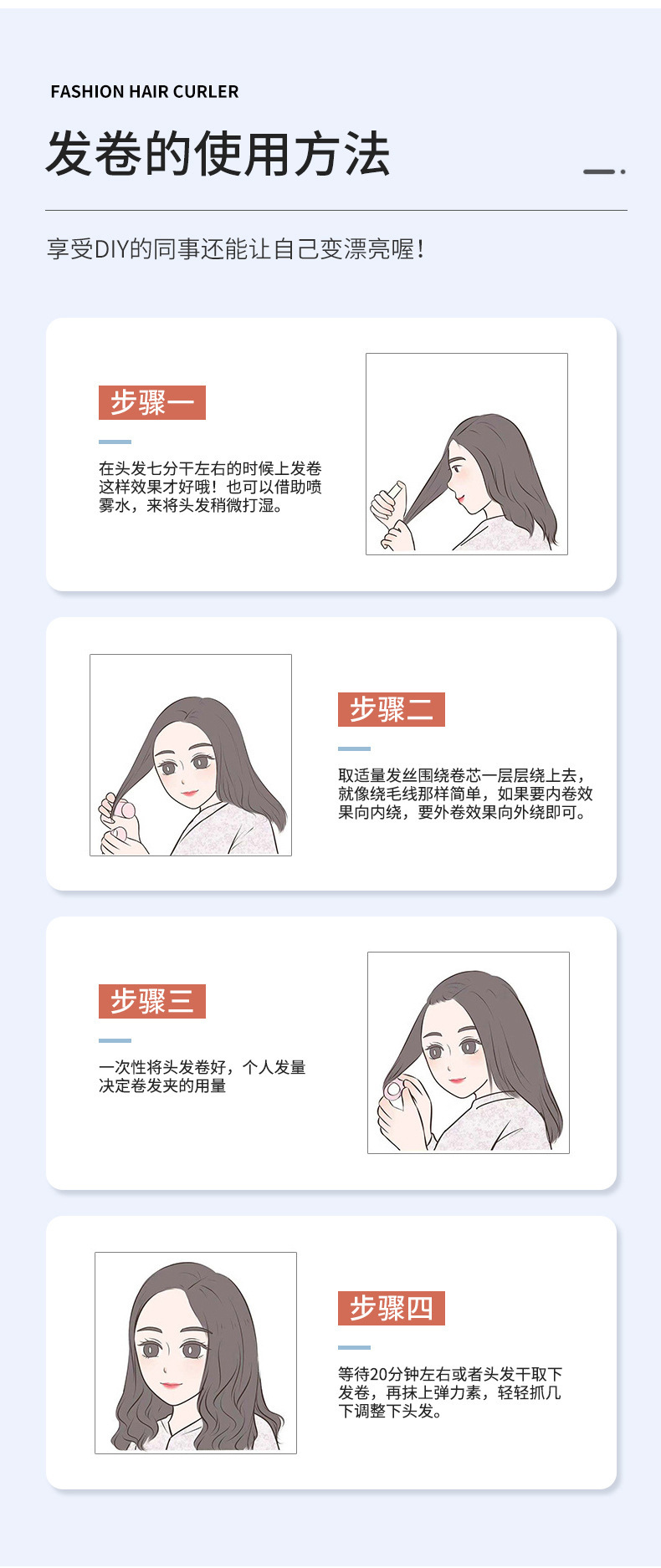 伊芝莲卷发筒发根蓬松卷发空气刘海卷发夹自粘发卷魔术卷发6个装