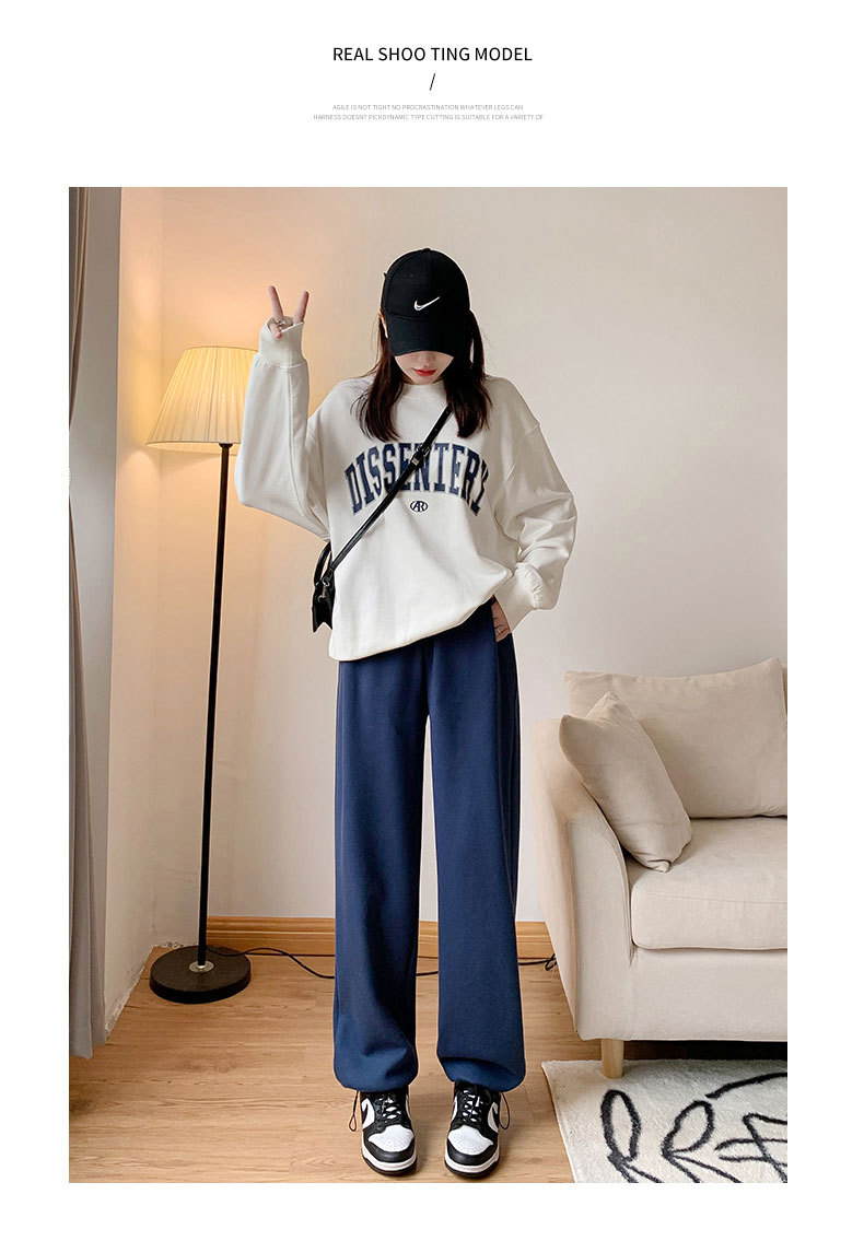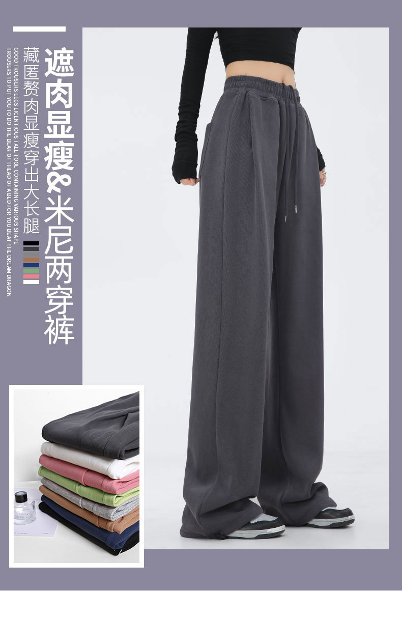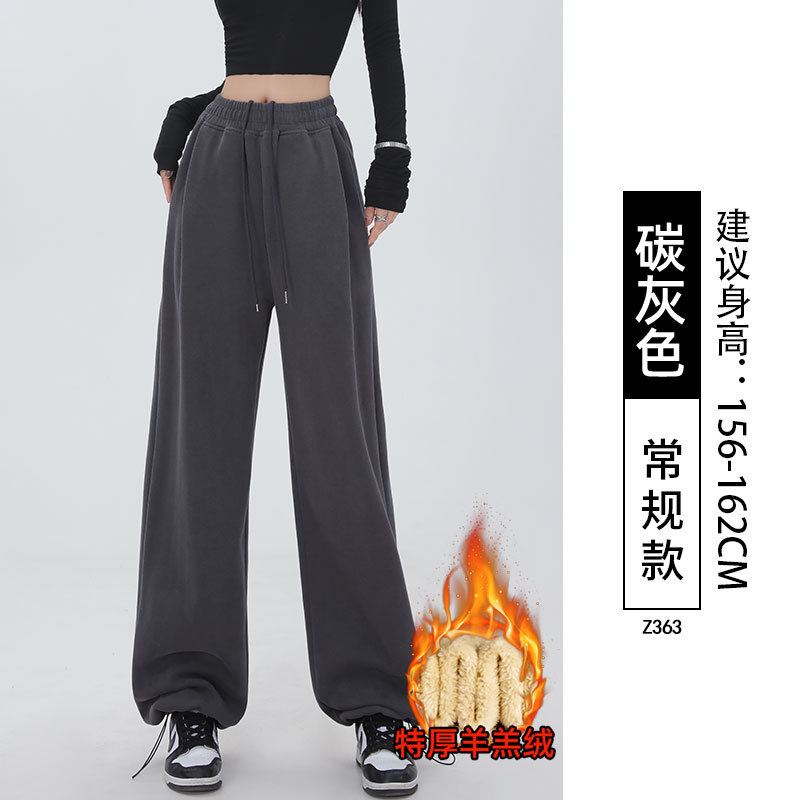 美式灰色运动裤子女秋冬季2023束脚宽松加绒休闲卫裤小个子阔腿裤
