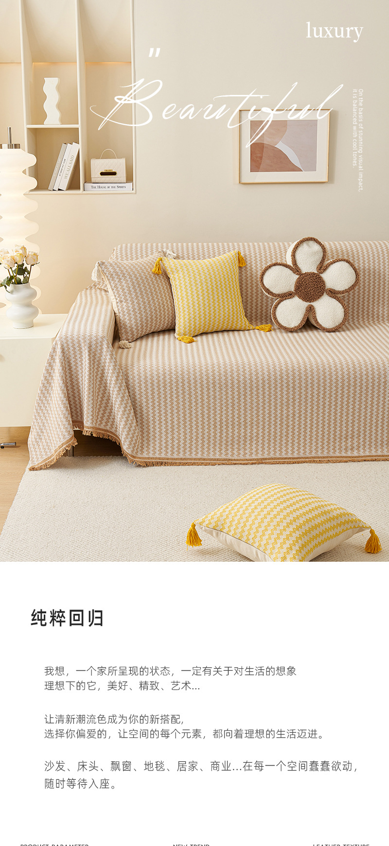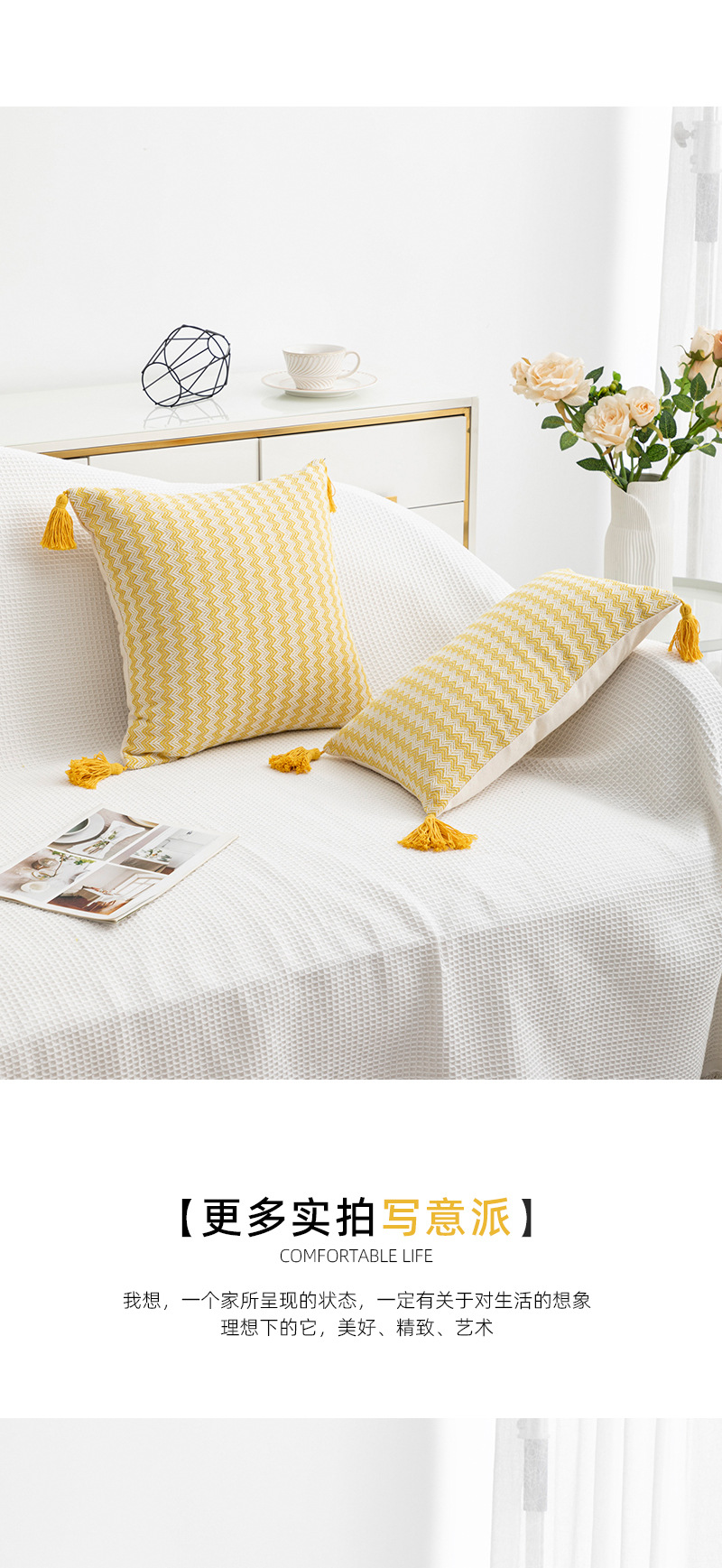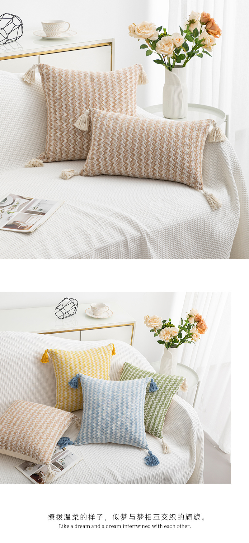 新款现代简约纯色波浪纹抱枕居家沙发装饰靠枕卧室床头提花靠垫套