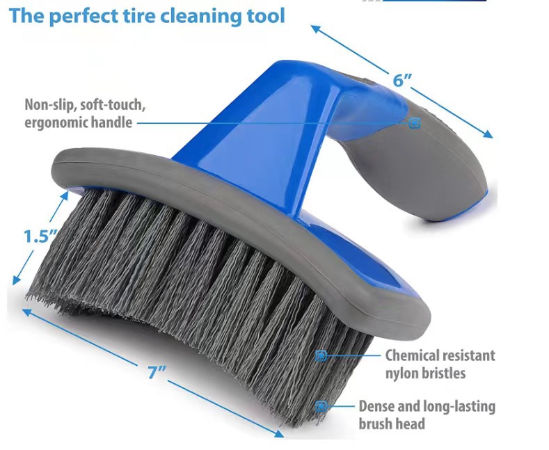 3件套蓝色工具汽车轮毂刷包胶手柄钢圈轮胎清洁工具套装脚垫清洗