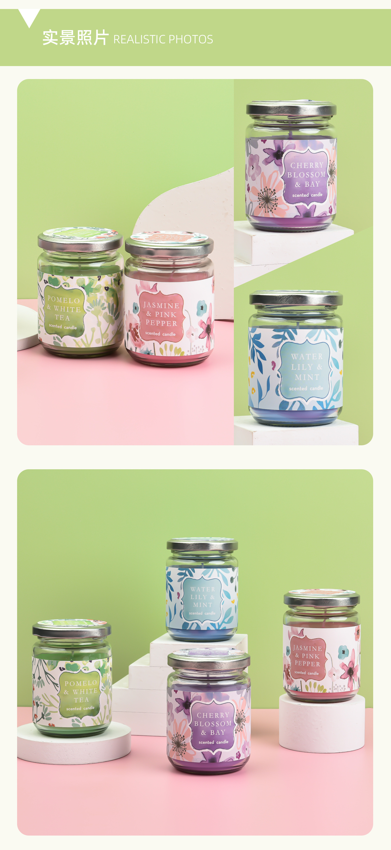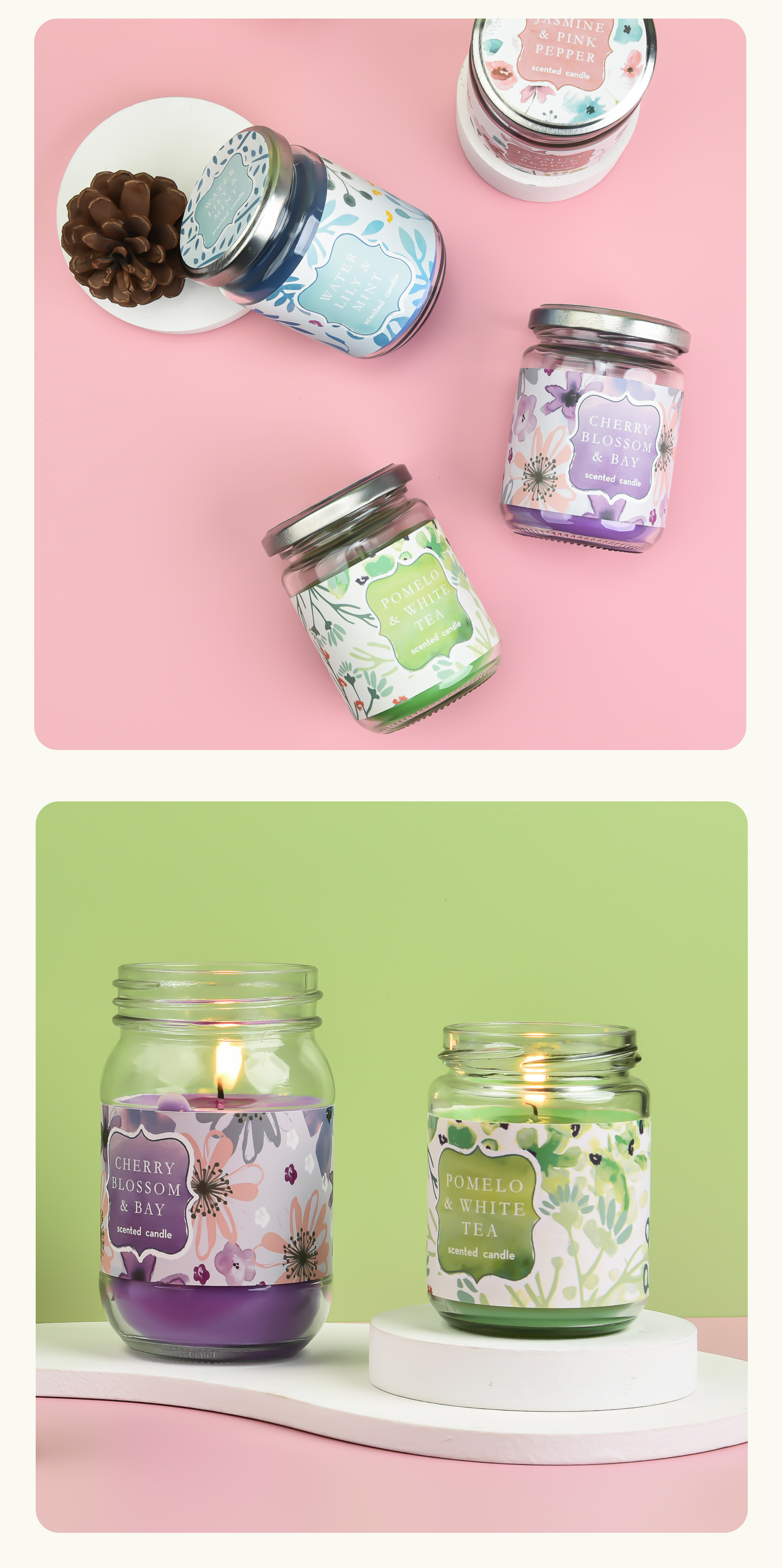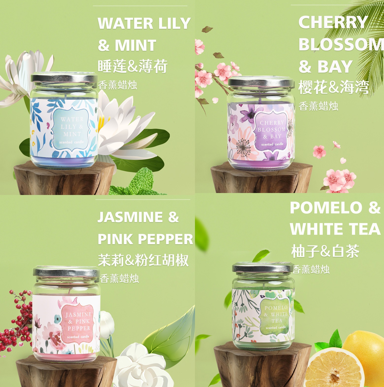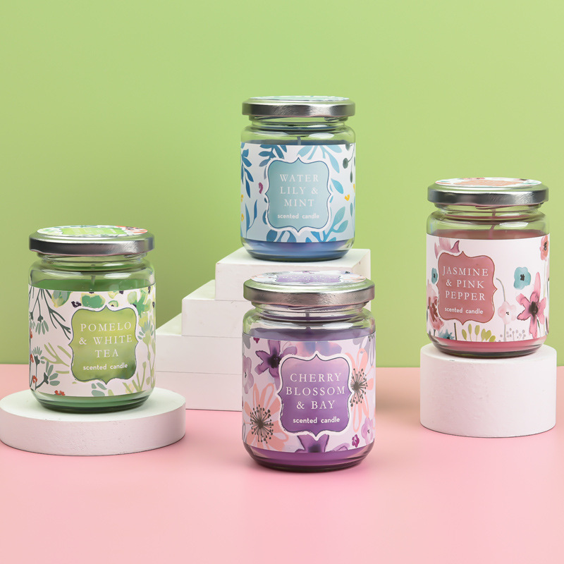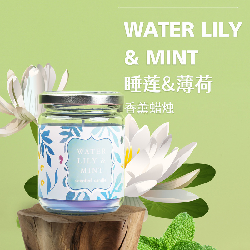 睡莲香薰蜡烛160克玻璃罐香薰大豆蜡烛无烟环保卧室香氛蜡烛跨境