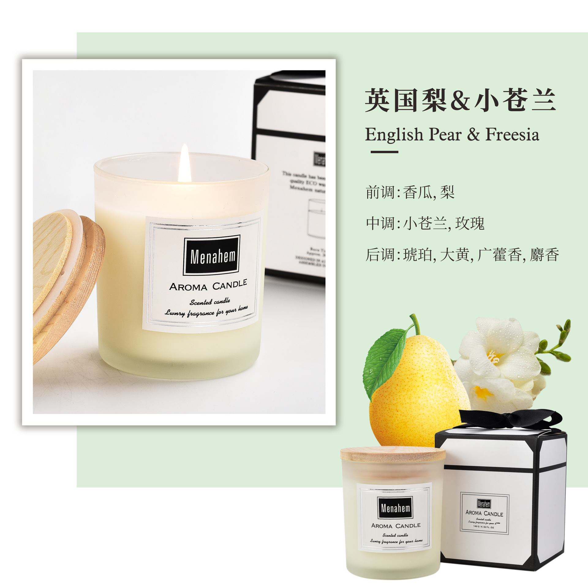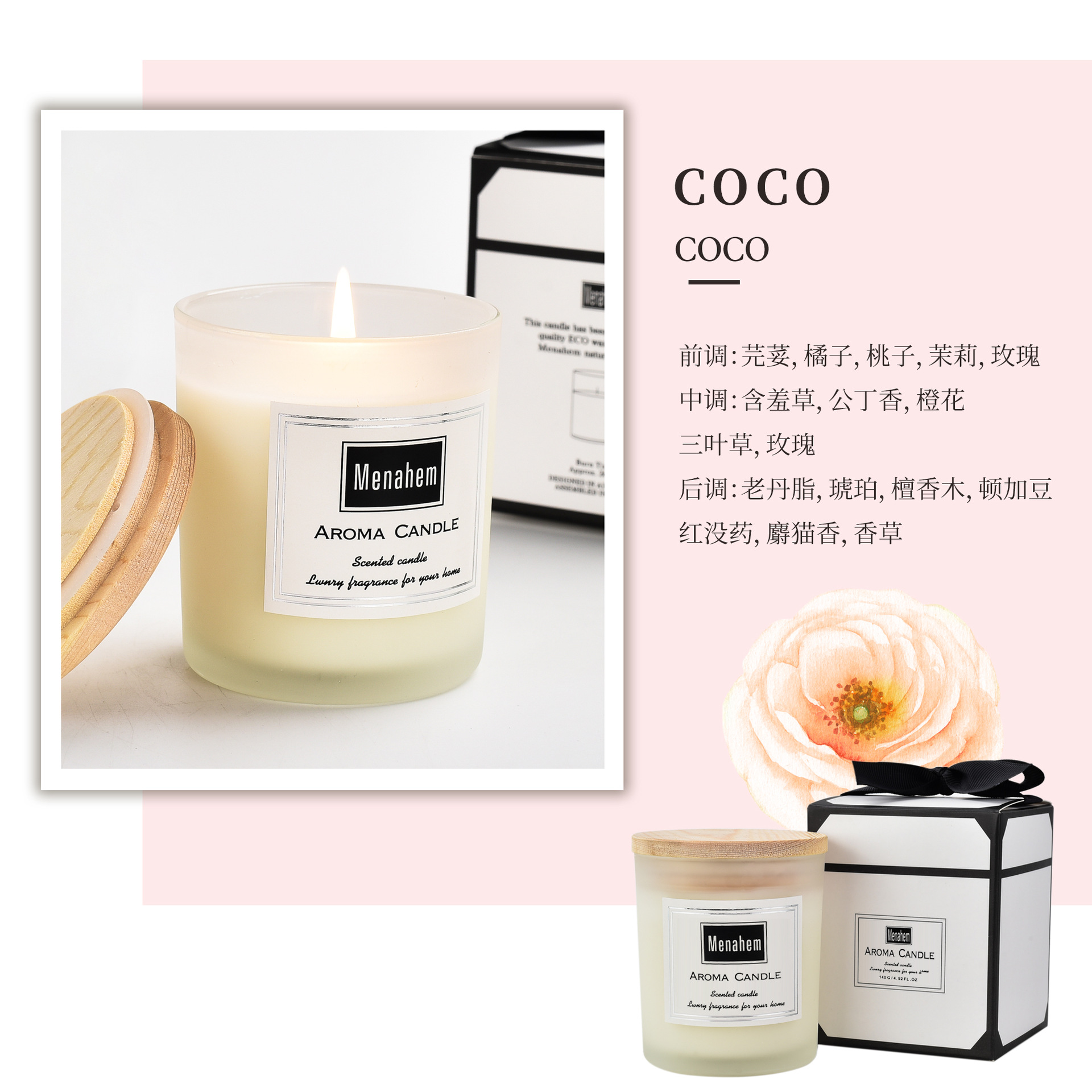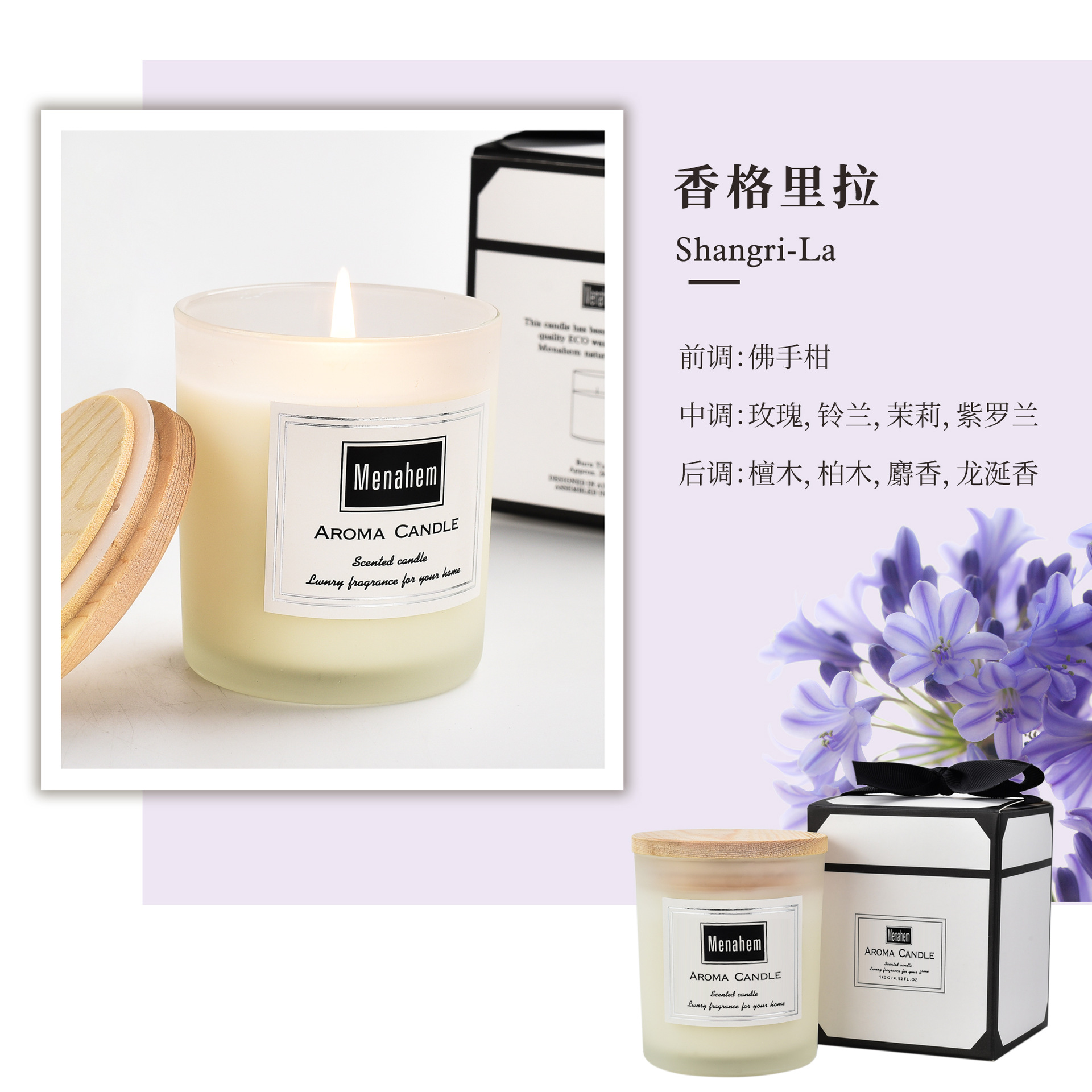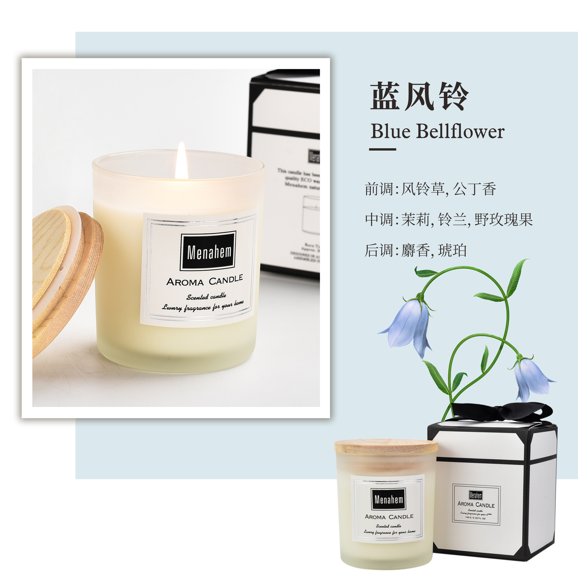 加工定制OEM 木盖磨砂杯香薰蜡烛植物精油大豆蜡无烟蜡烛配伴手礼