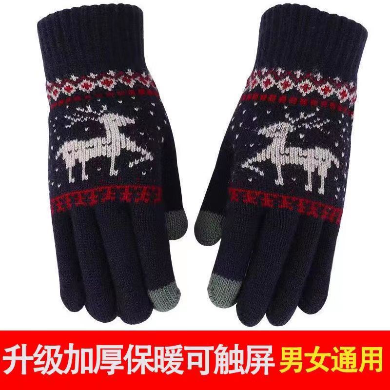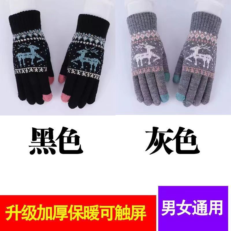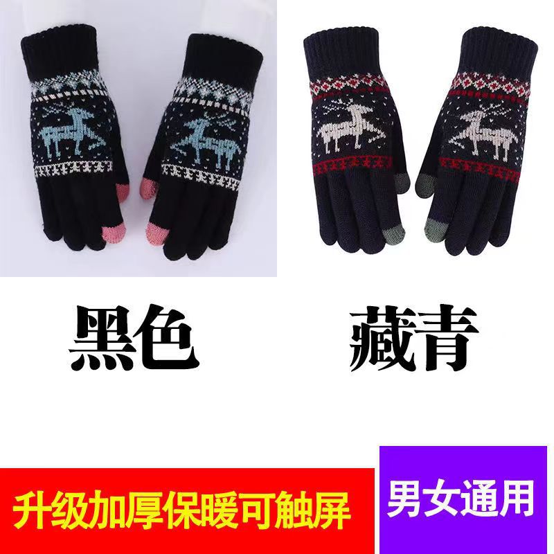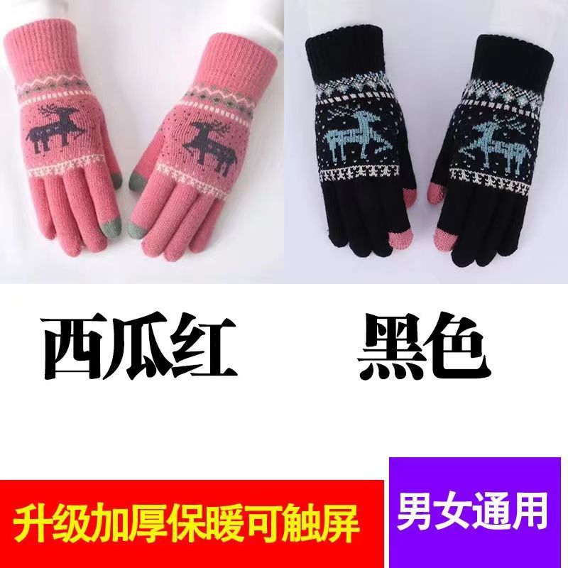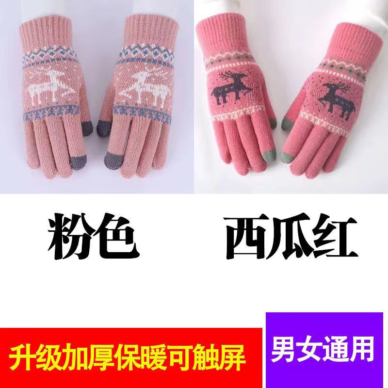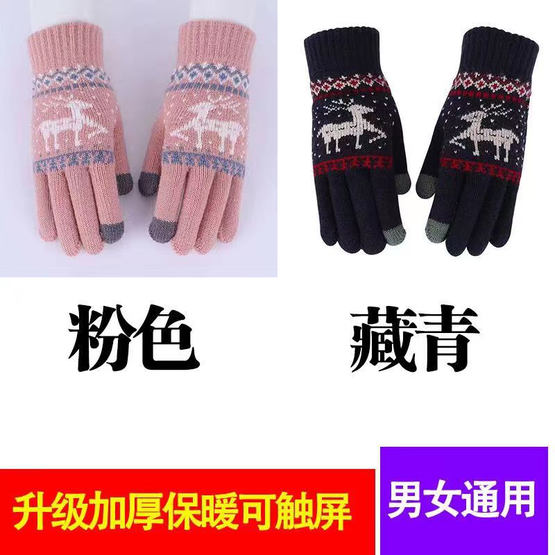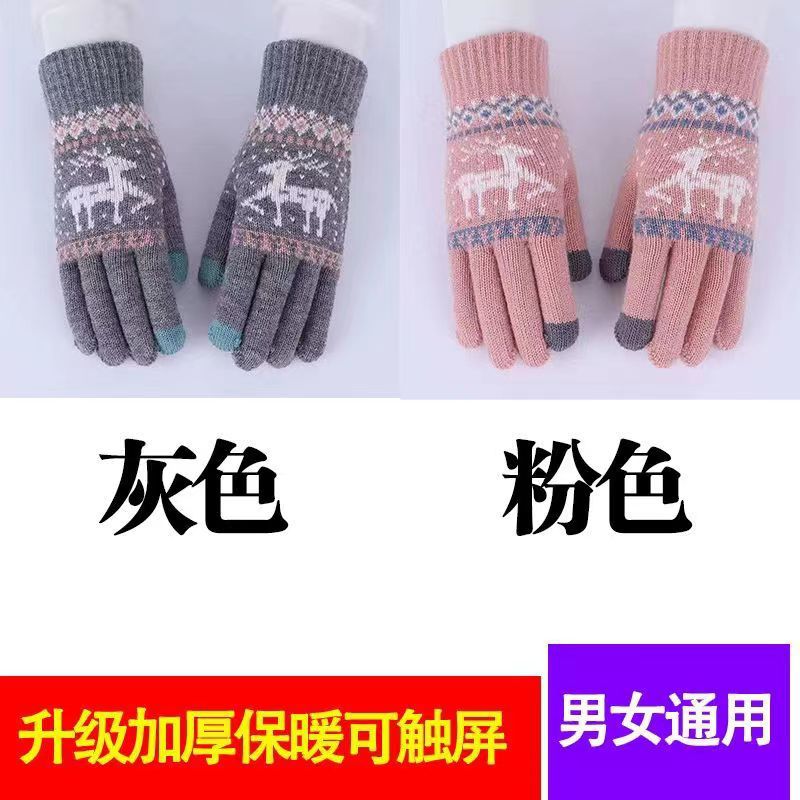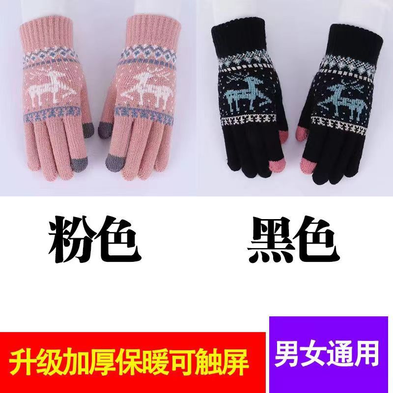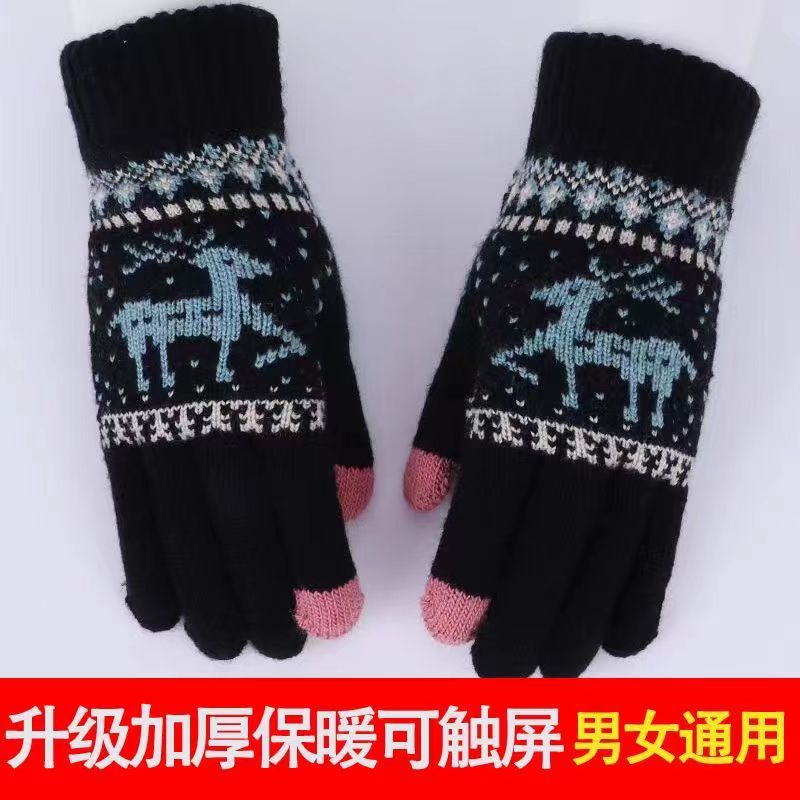 手套男女保暖防寒双层加厚冬季保暖触屏手套防寒针织毛线手套骑行