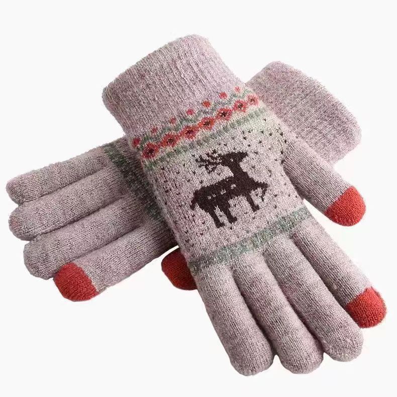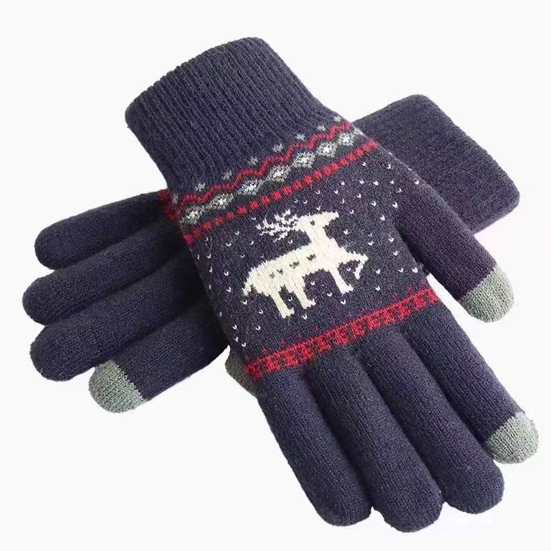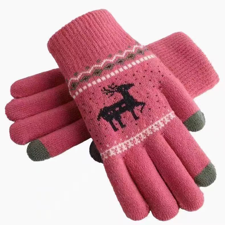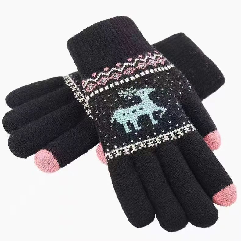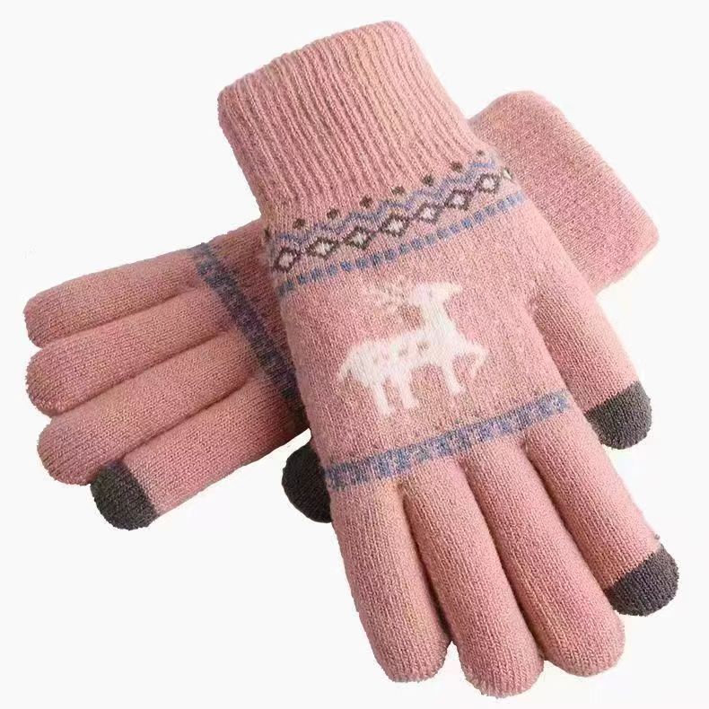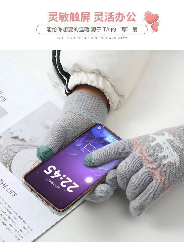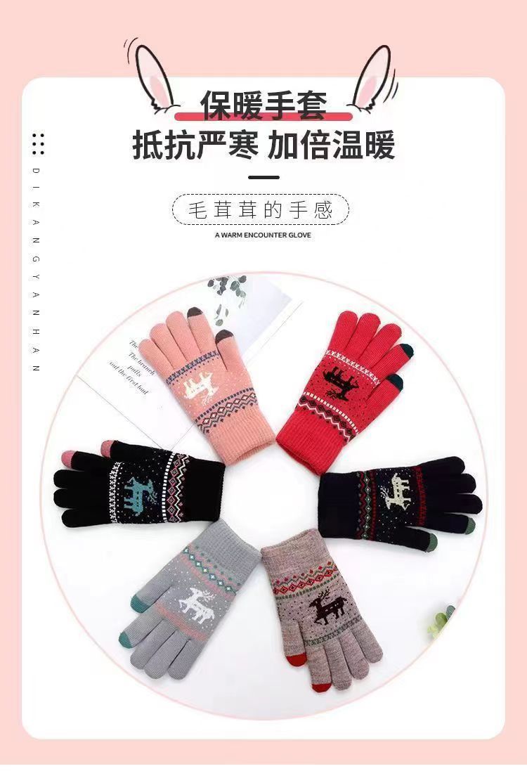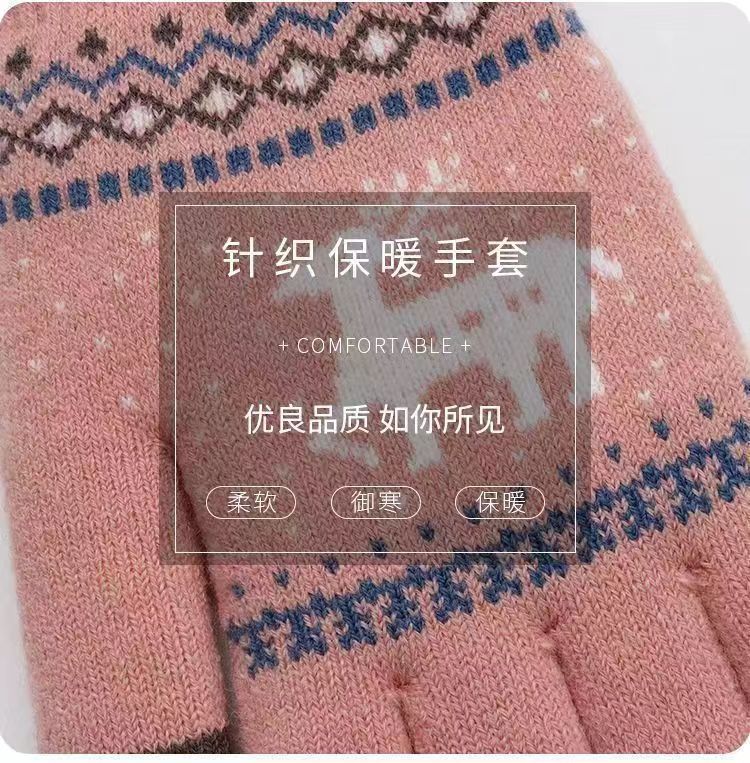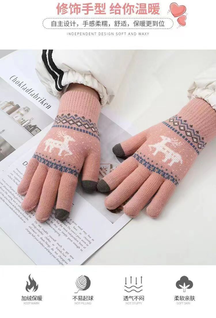 手套男女保暖防寒双层加厚冬季保暖触屏手套防寒针织毛线手套骑行