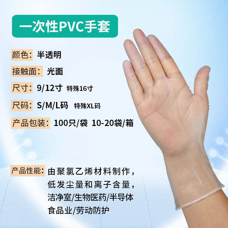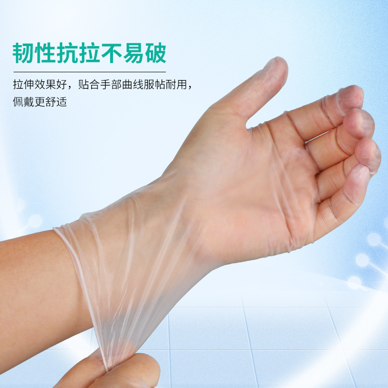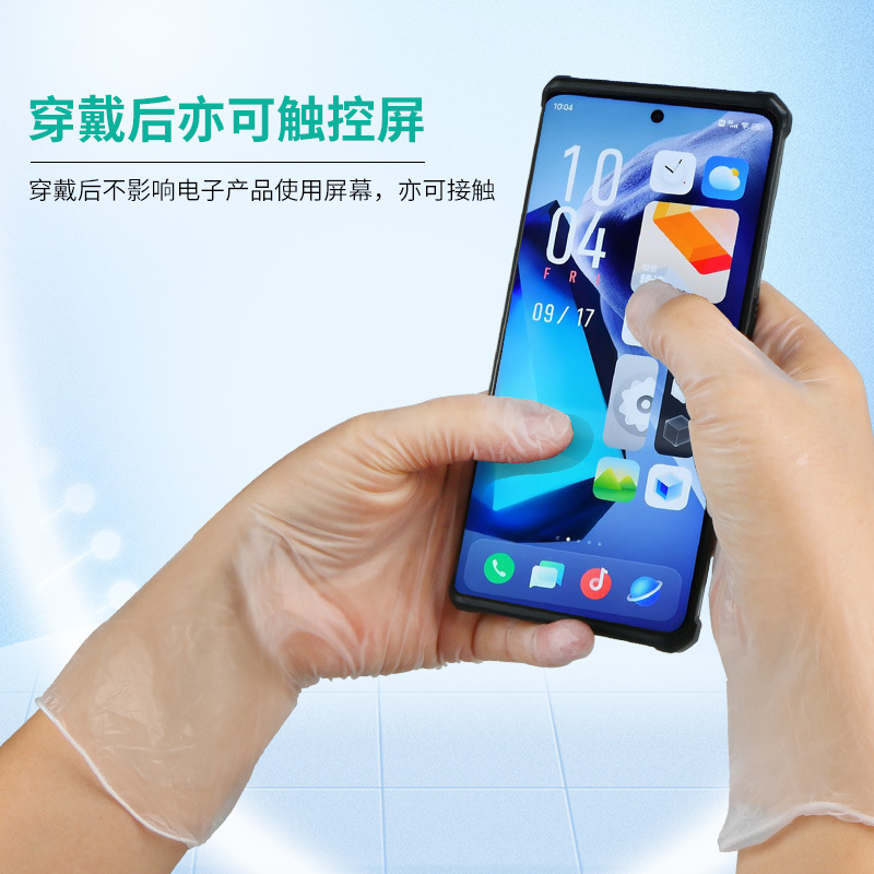 加厚透明PVC手套无粉光面手套 拉不破食品级触屏手套无尘室手套