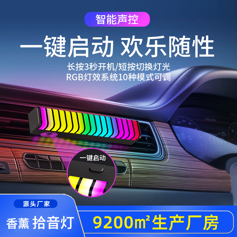车载香薰出风口汽车氛围灯车内摆件智能车用香水RGB拾音节奏装饰