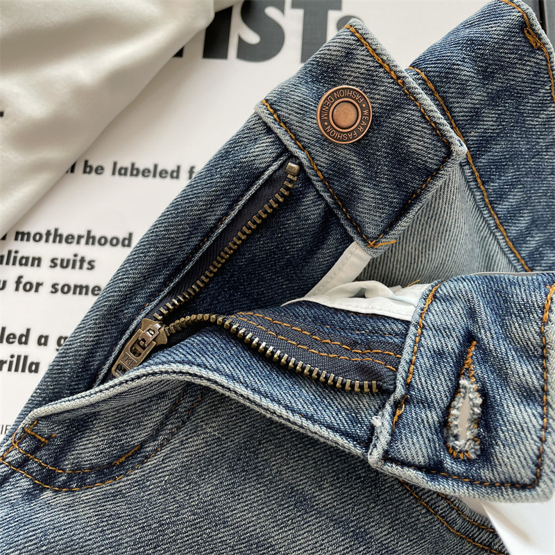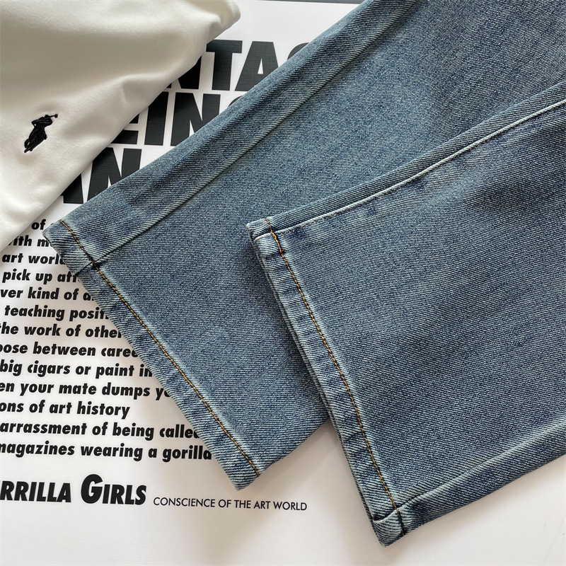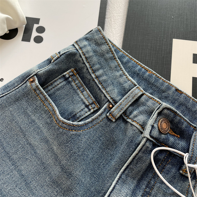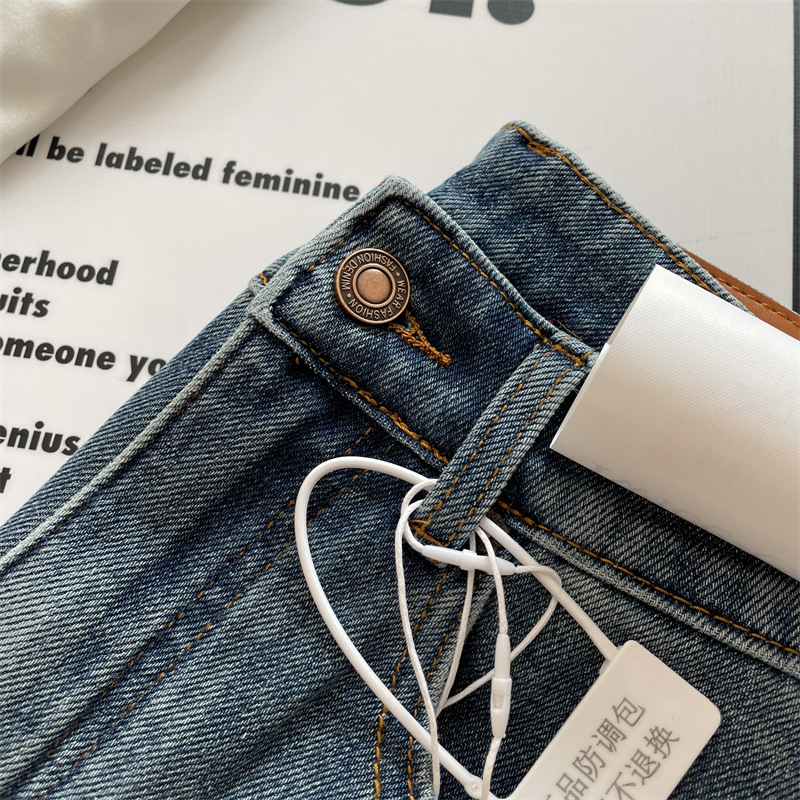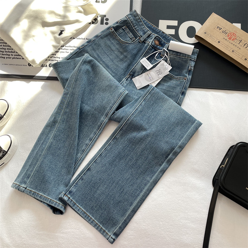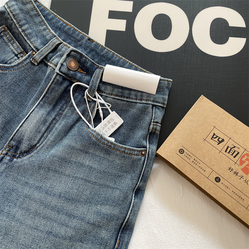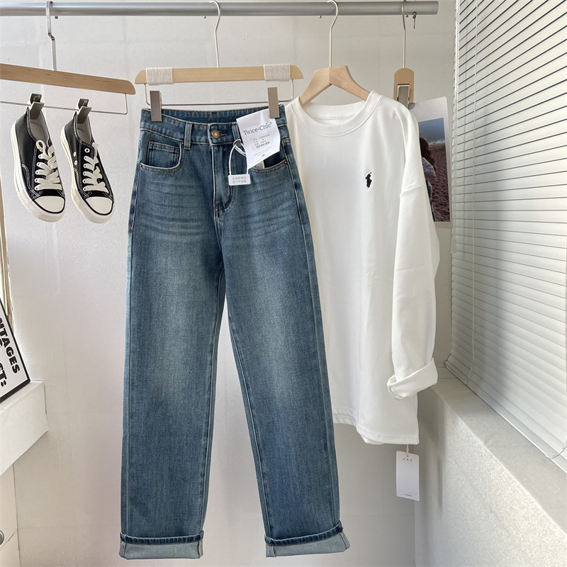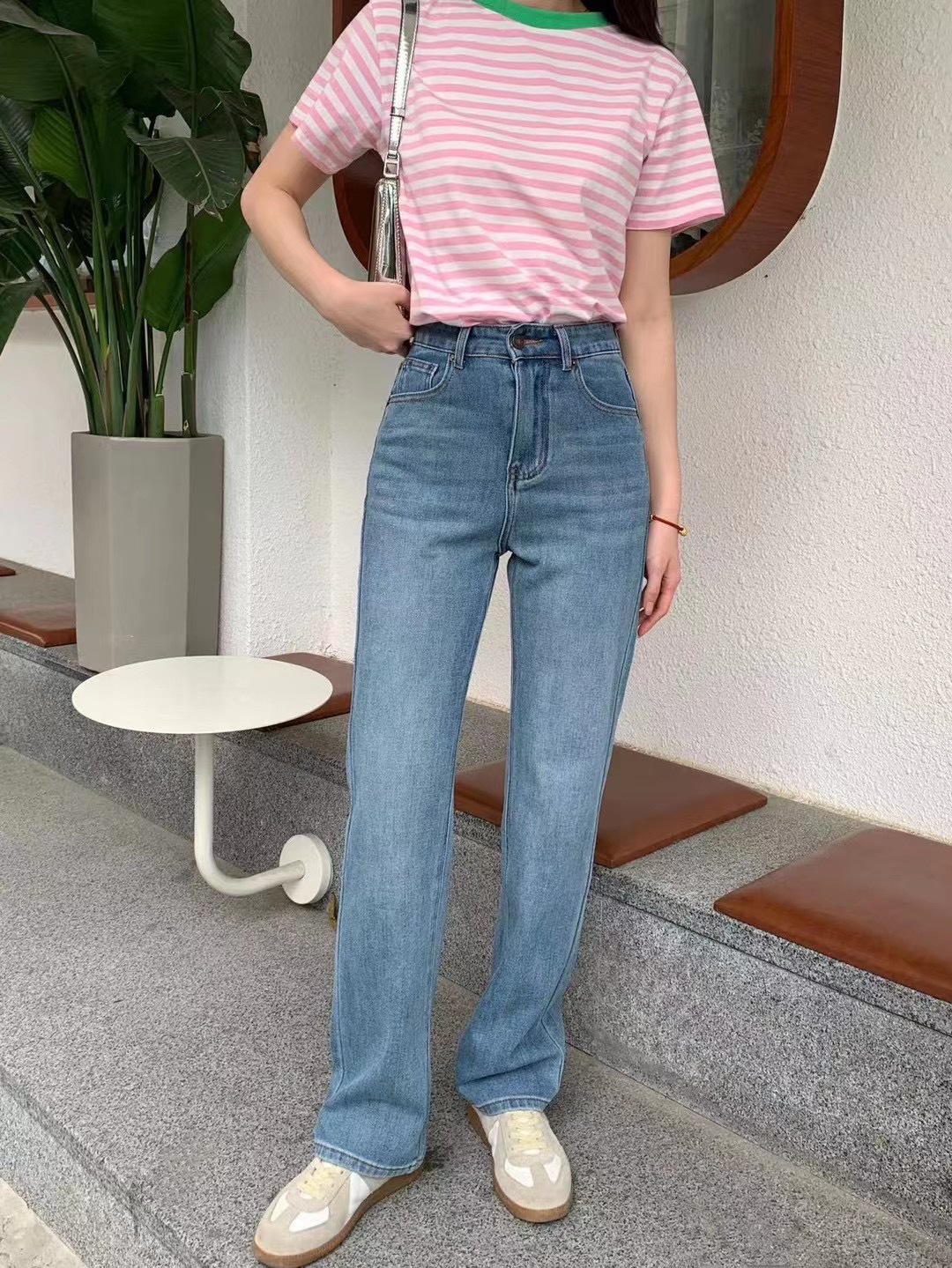 四面弹窄版超柔纱直筒长裤高腰显瘦百搭怀旧蓝弹力牛仔裤女春秋新
