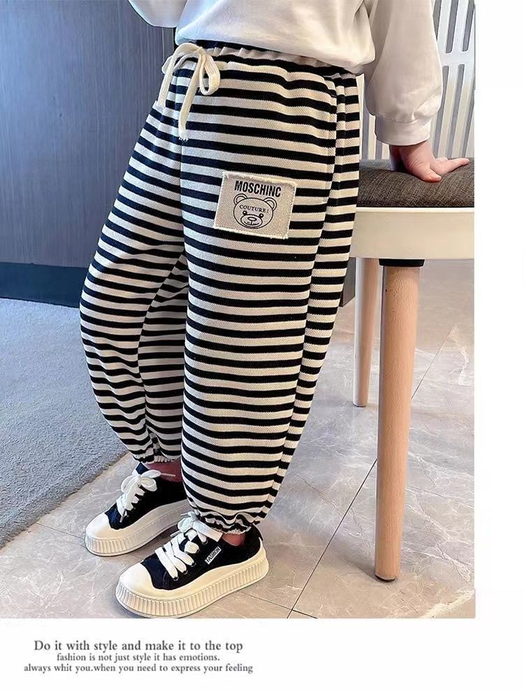 儿童新款条纹百搭卫裤女宝宝宽松休闲裤男童幼儿园神裤韩版运动裤