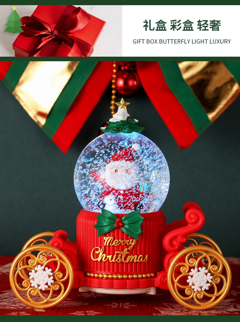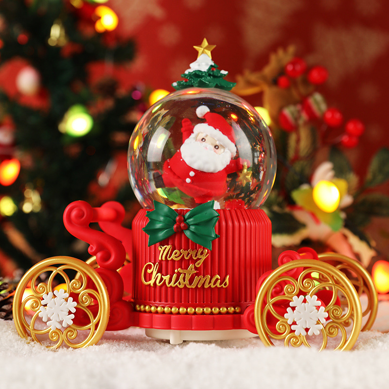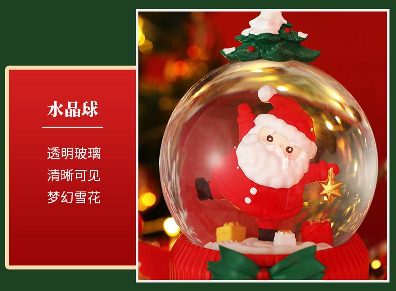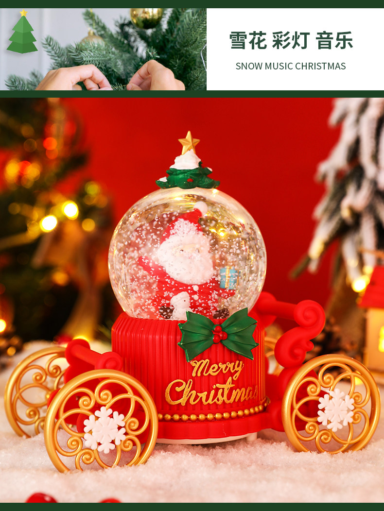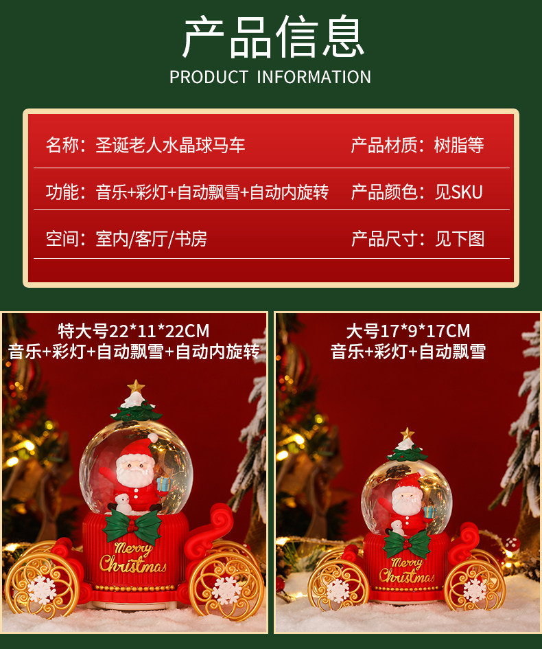 水晶球音乐盒圣诞老人马车可旋转飘雪花八音盒礼物儿童女孩摆件