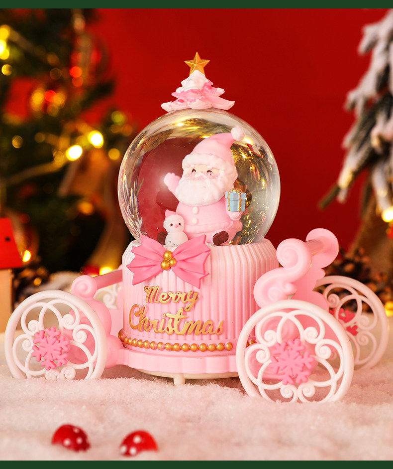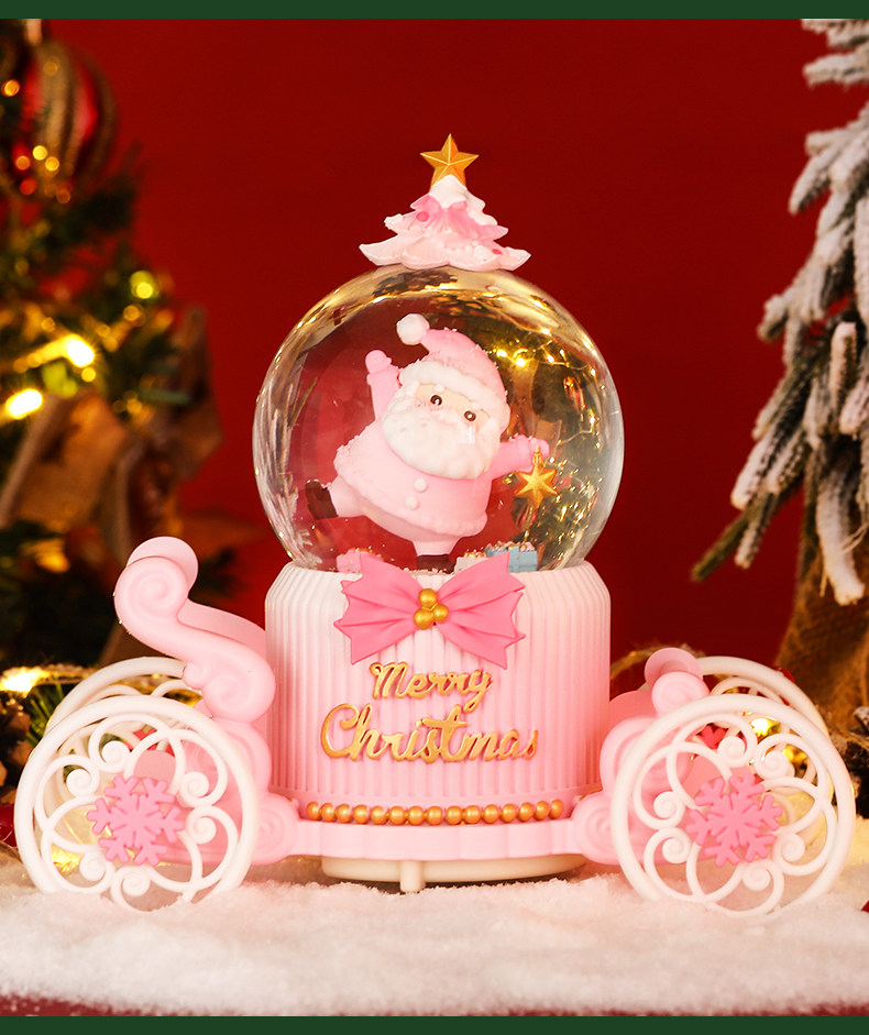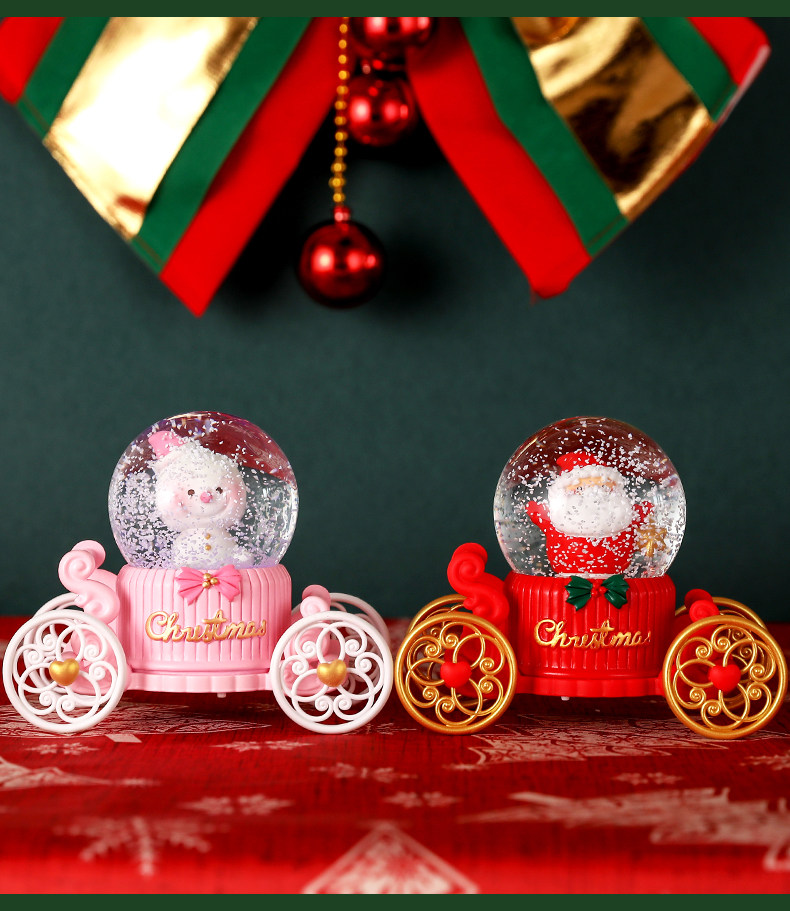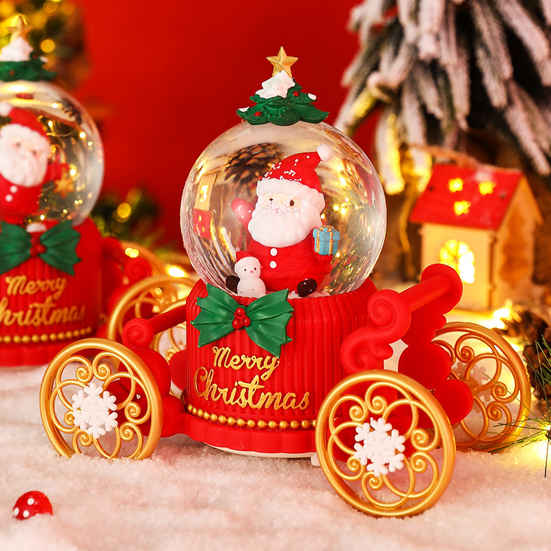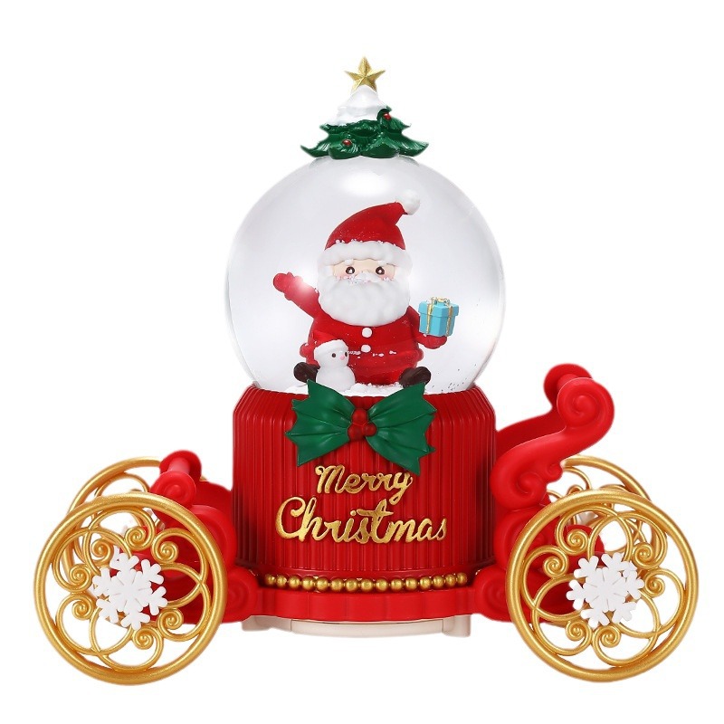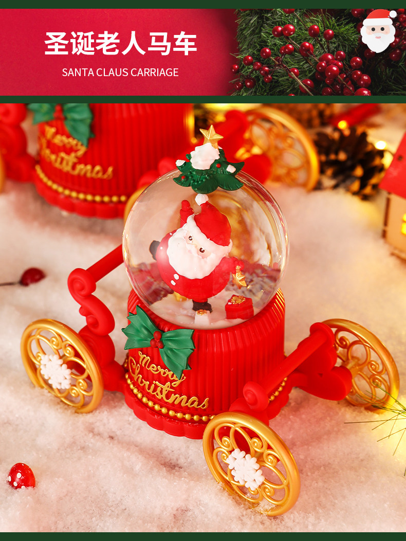 水晶球音乐盒圣诞老人马车可旋转飘雪花八音盒礼物儿童女孩摆件
