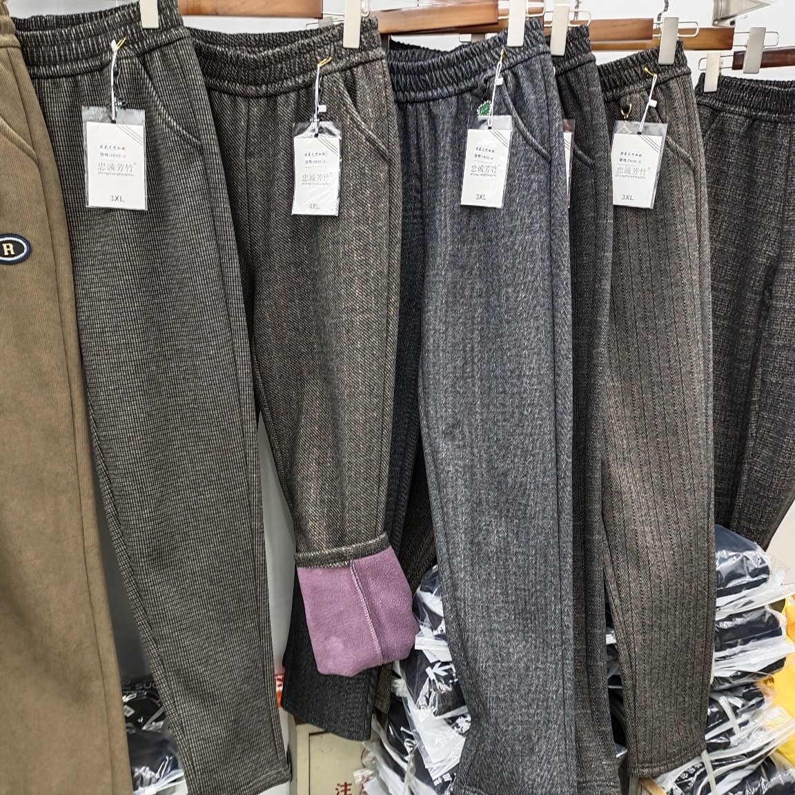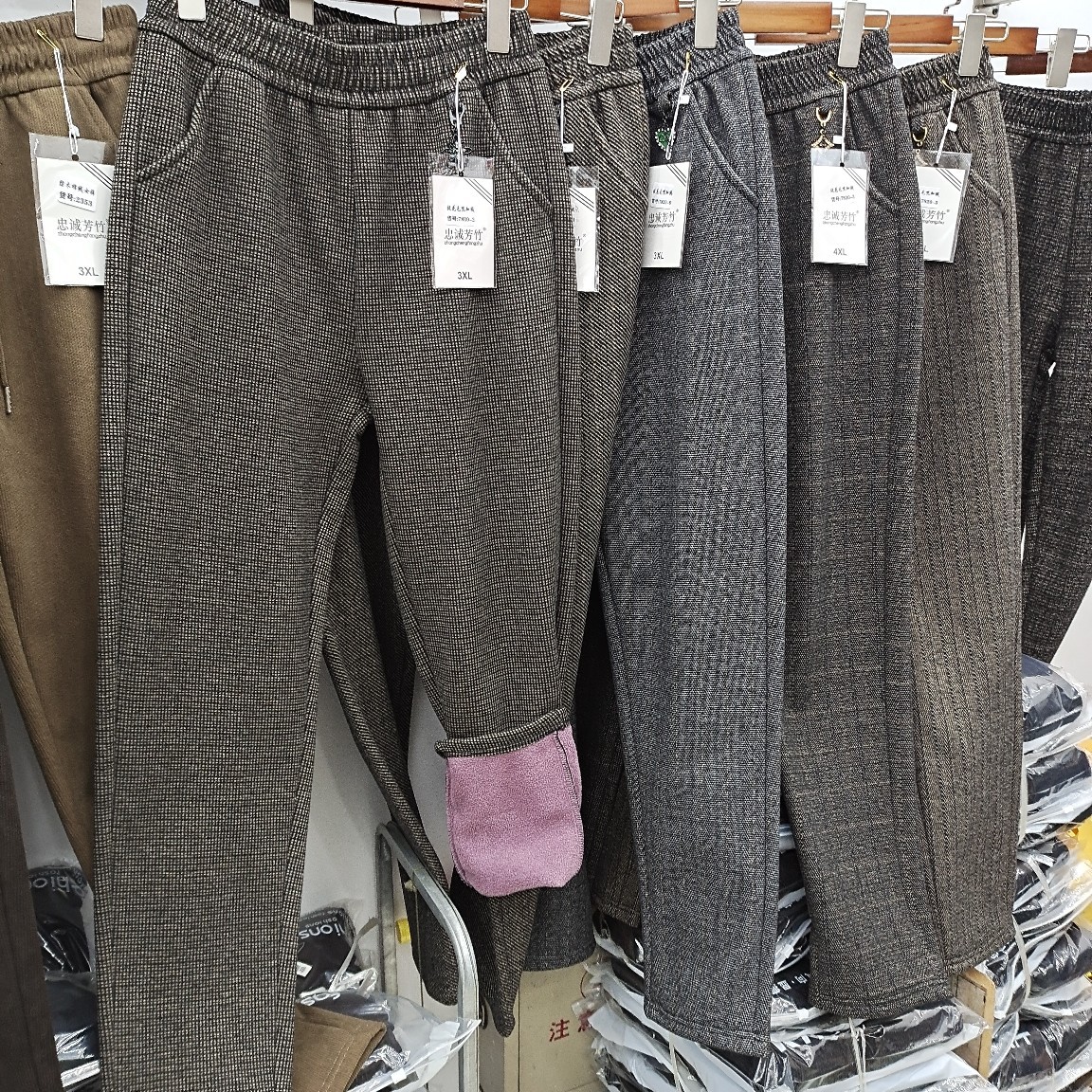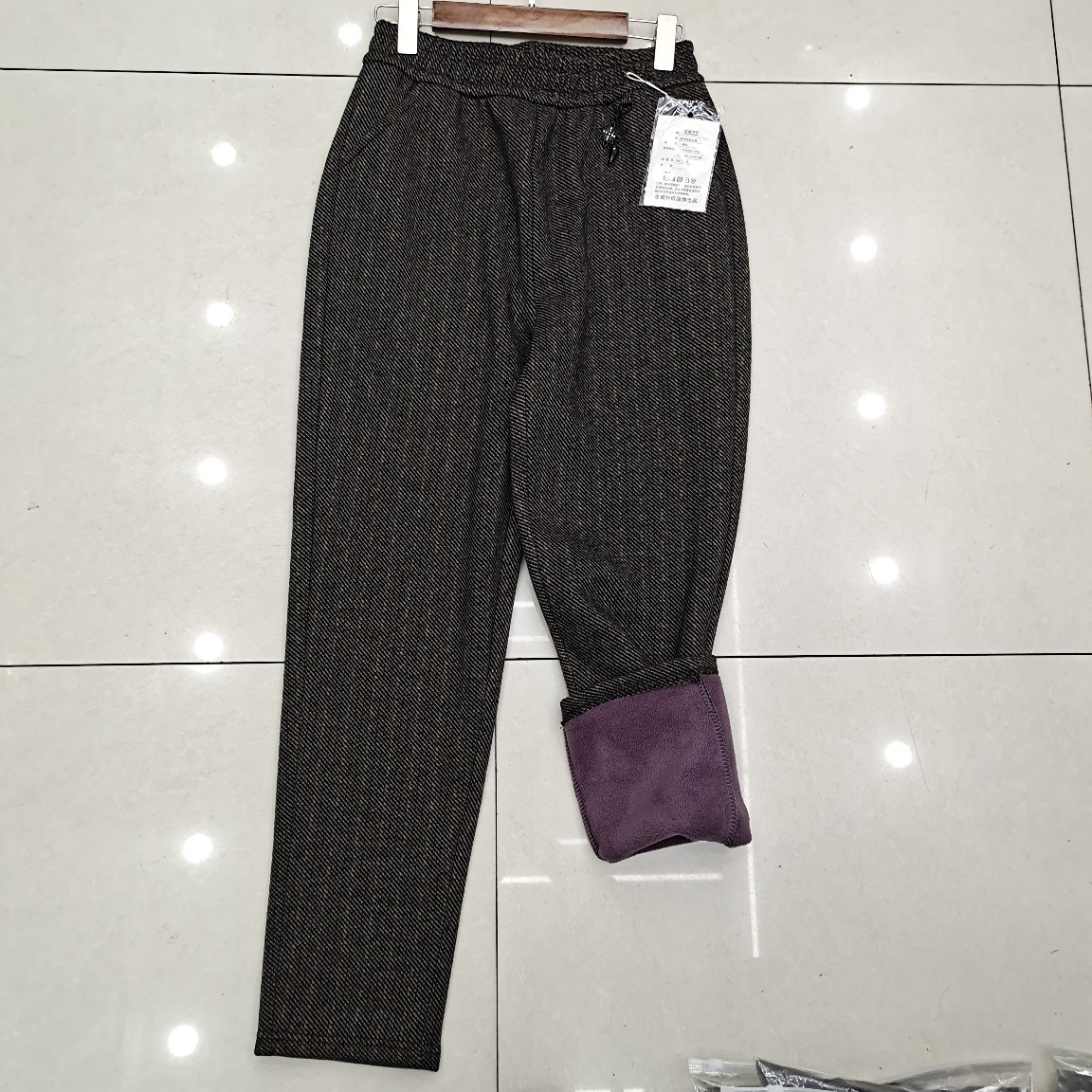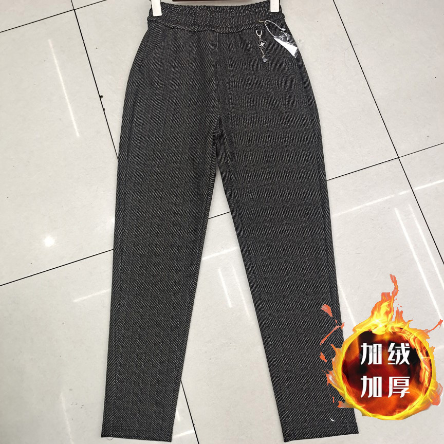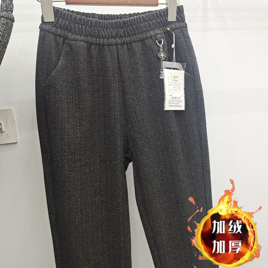 高档加绒加厚提花休闲裤2023年秋冬新款高腰显瘦百搭直筒裤宽松裤