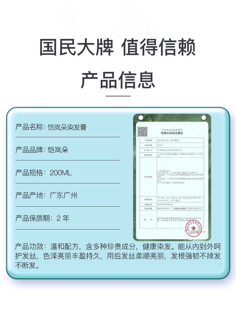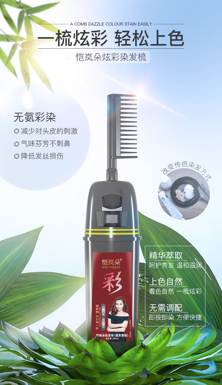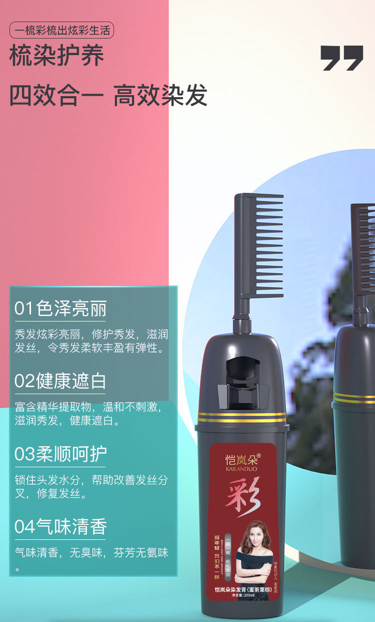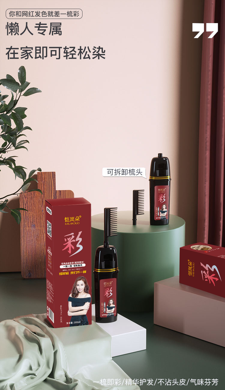 恺岚朵一梳彩染发剂批发纯美发产品彩色盖白植物染发膏黑油盖白发