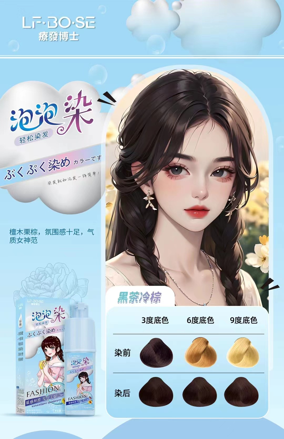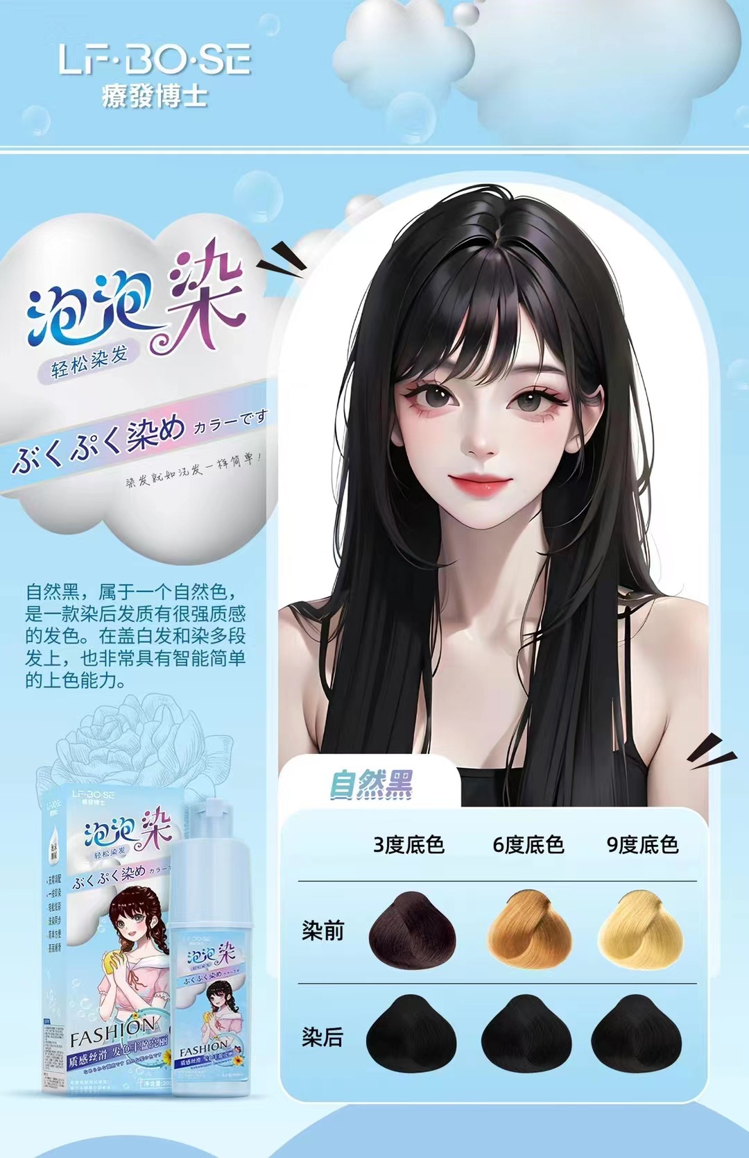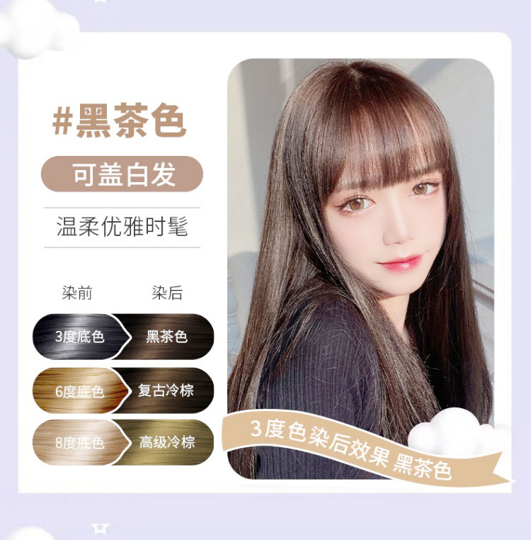 嘉瀛泡泡染发剂工厂批发家用男女士通用黑茶色纯植物一支黑洗发露