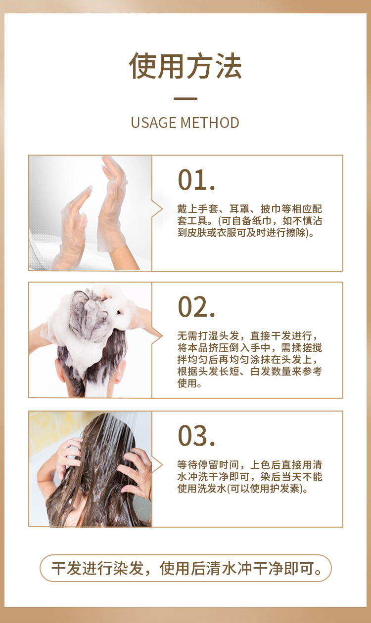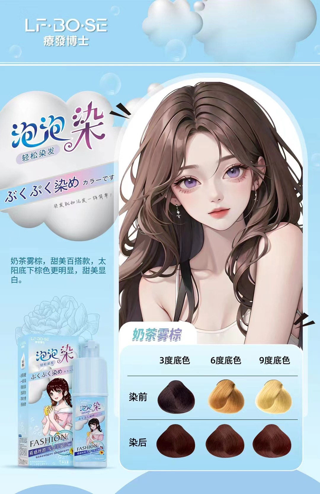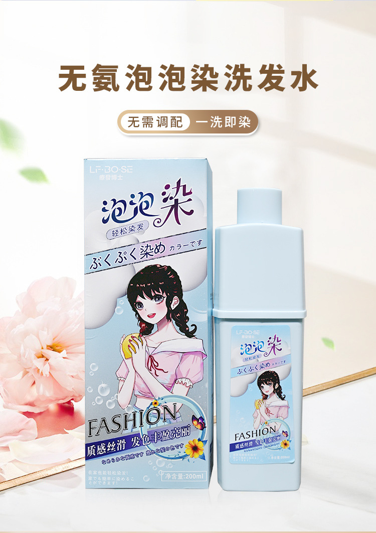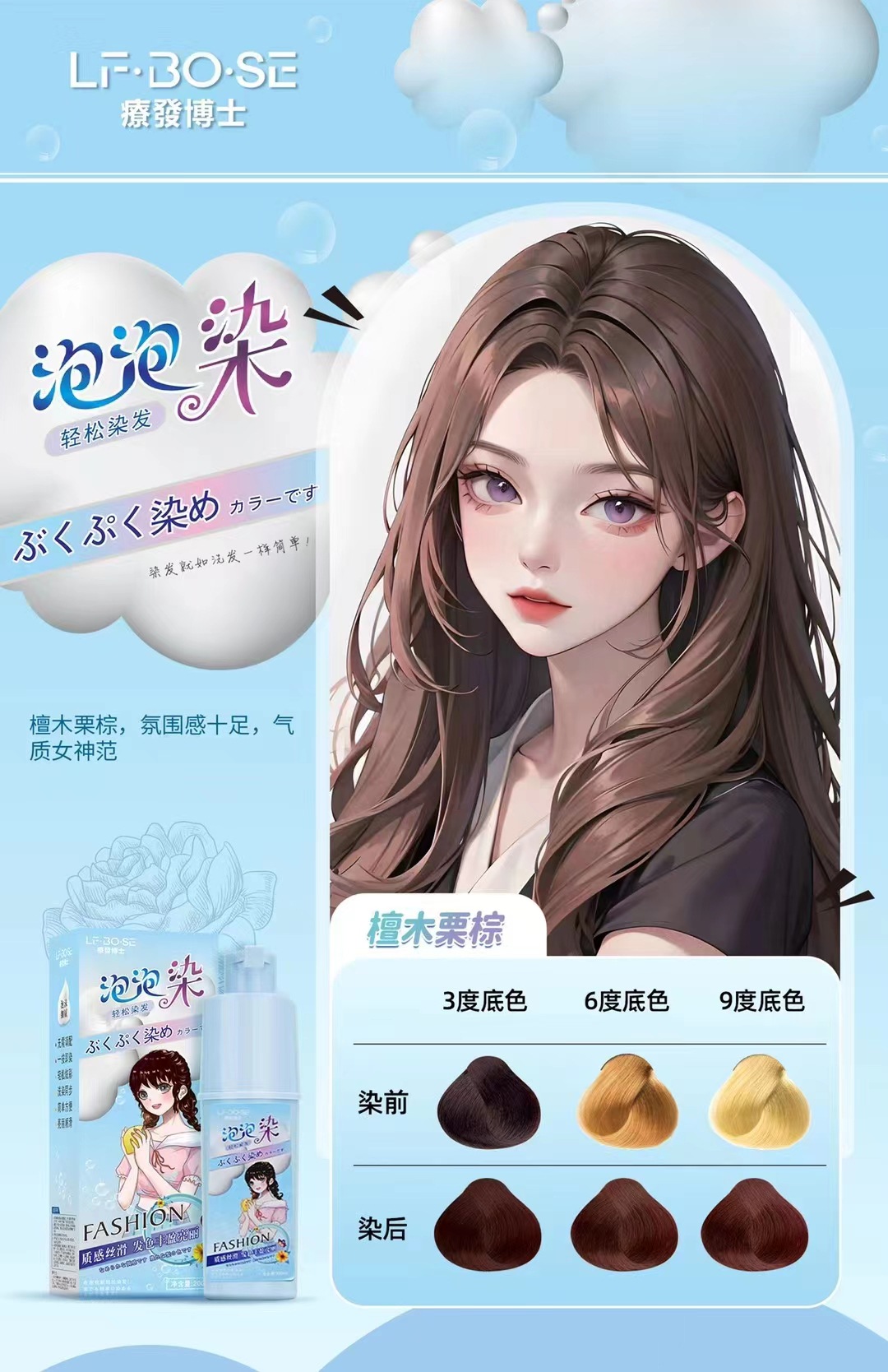 嘉瀛泡泡染发剂工厂批发家用男女士通用黑茶色纯植物一支黑洗发露