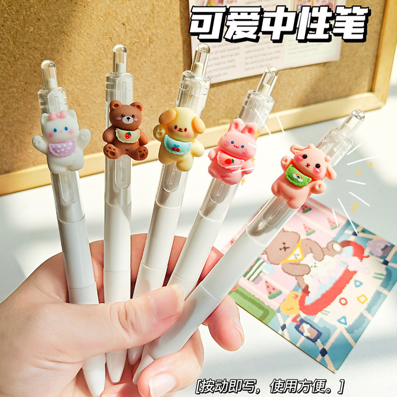 可爱卡通按动中性笔学生书写文具用品 新款创意黑色高颜值签字笔