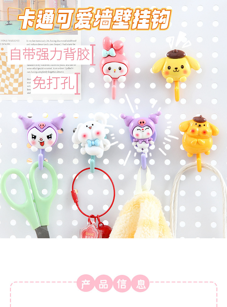 可爱卡通墙壁挂钩学生创意免打孔无痕强力粘钩挂壁小物件收纳挂勾