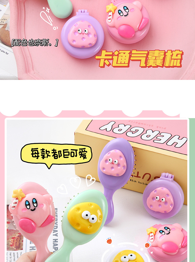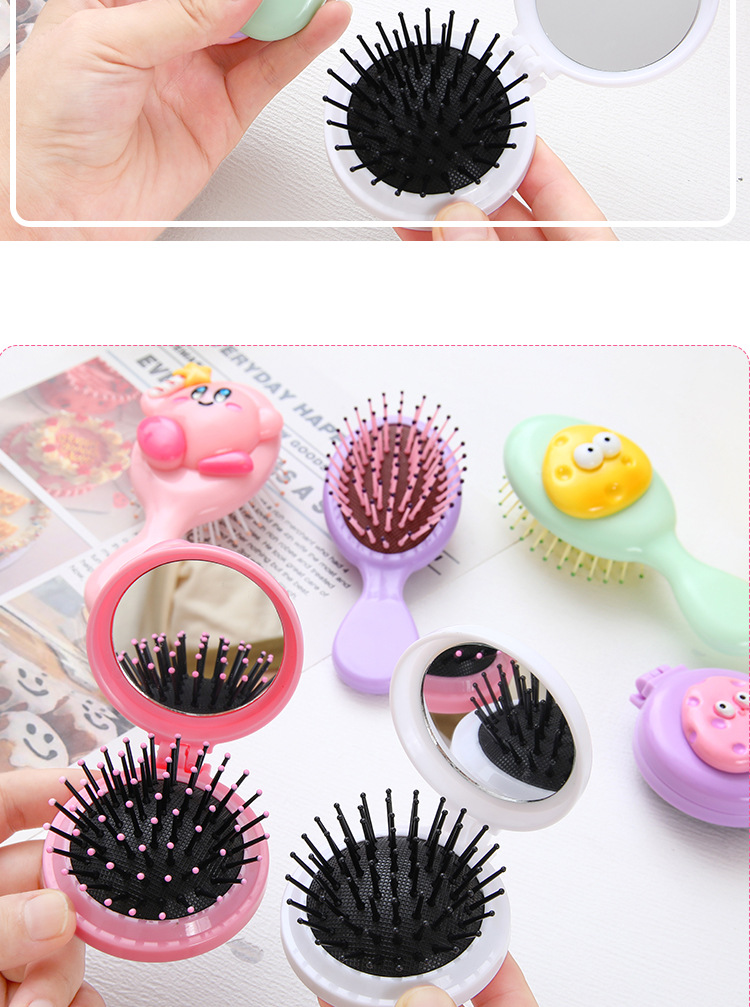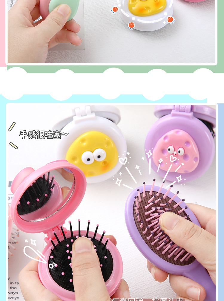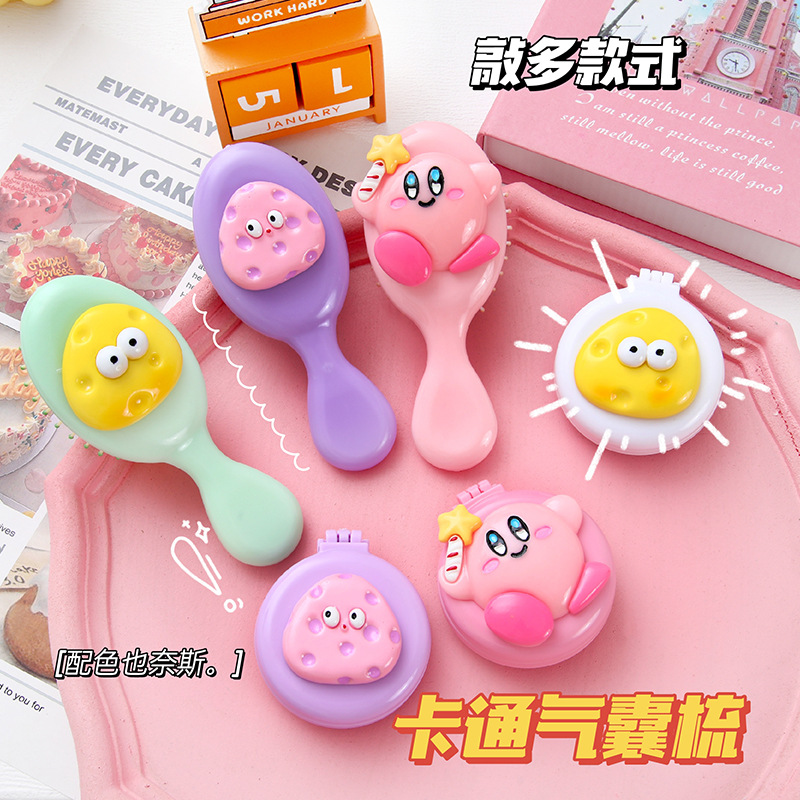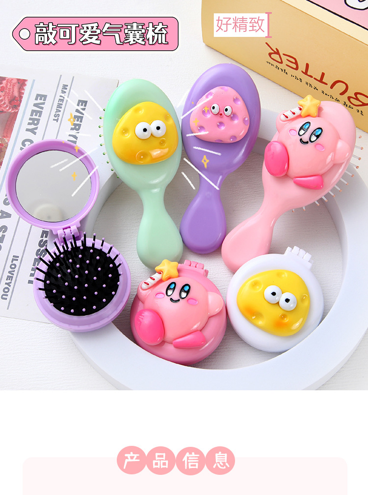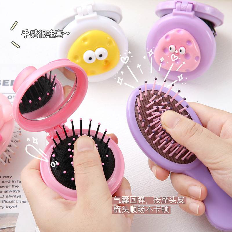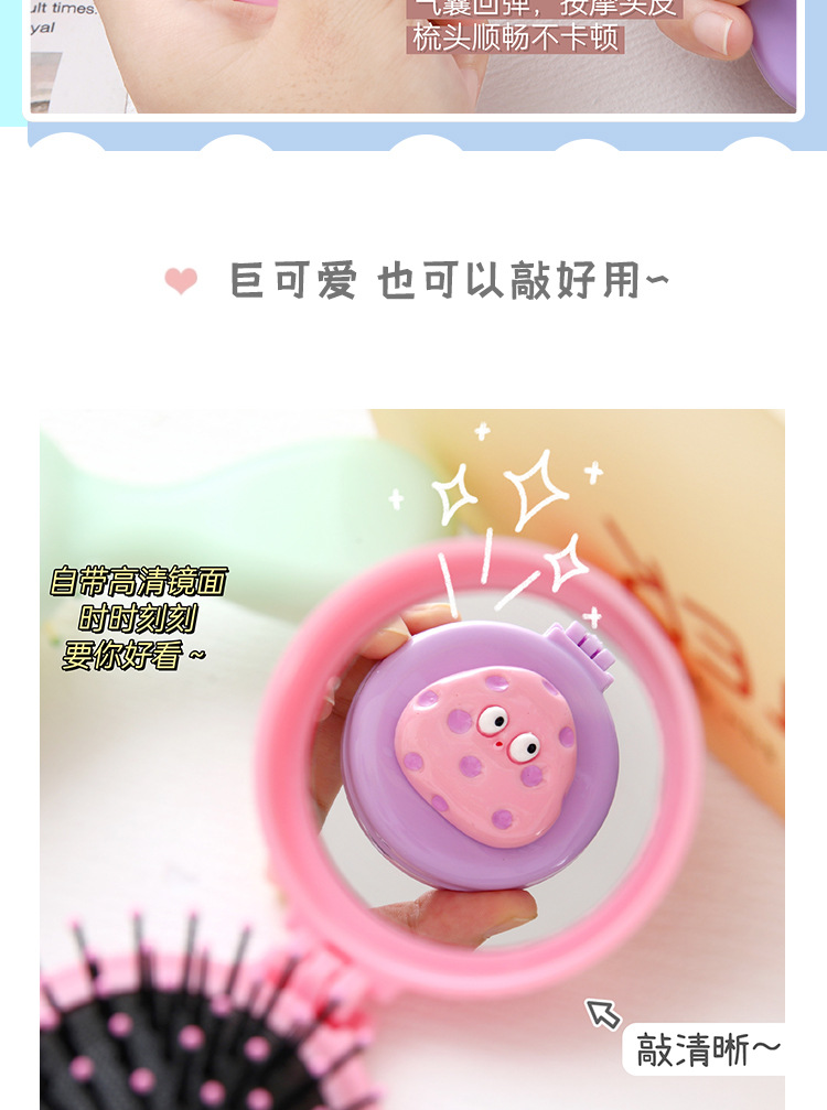 可爱卡通少女心手柄气囊梳迷你便携折叠镜子一体镜梳按摩梳子批发
