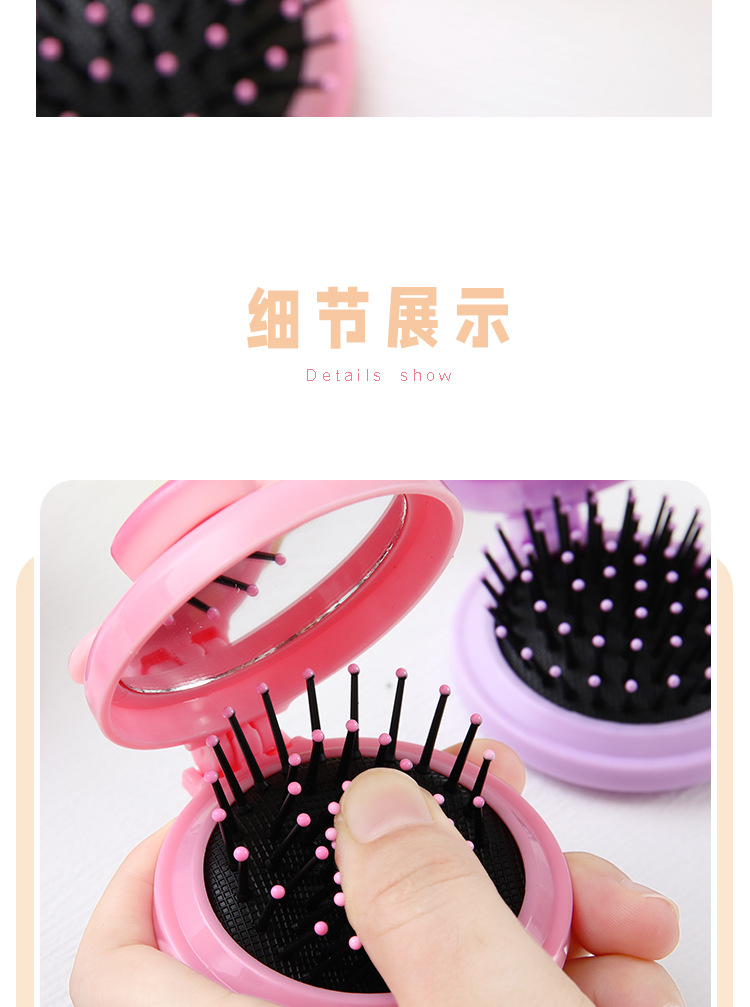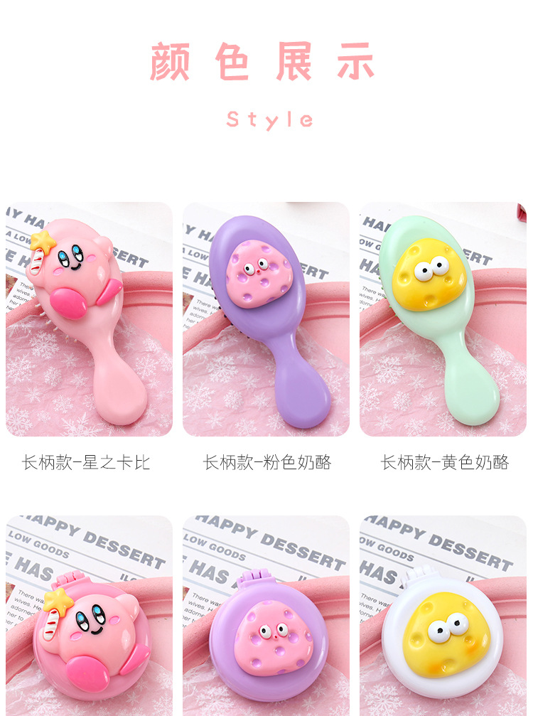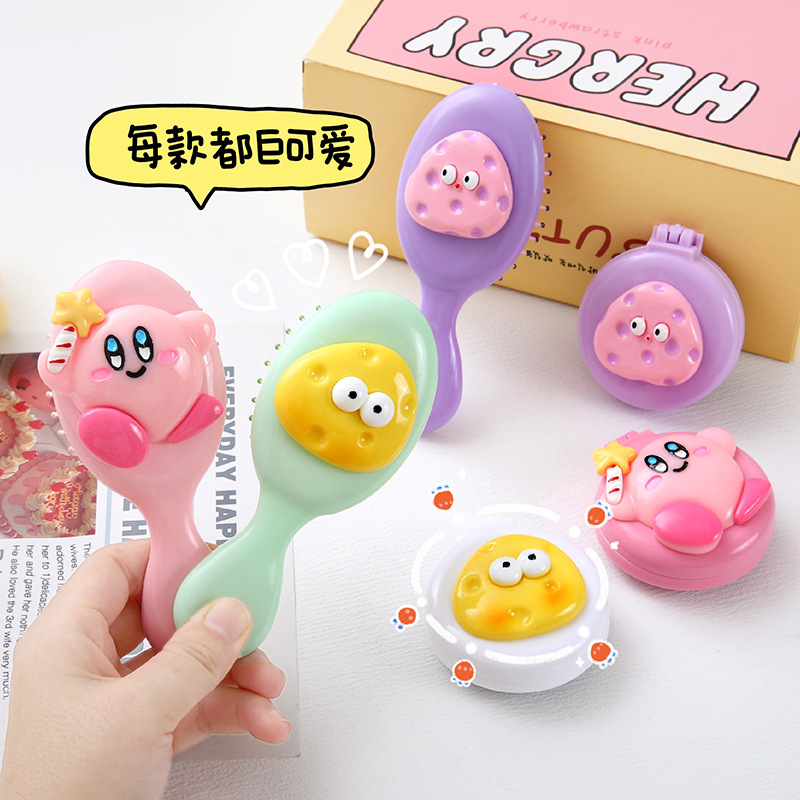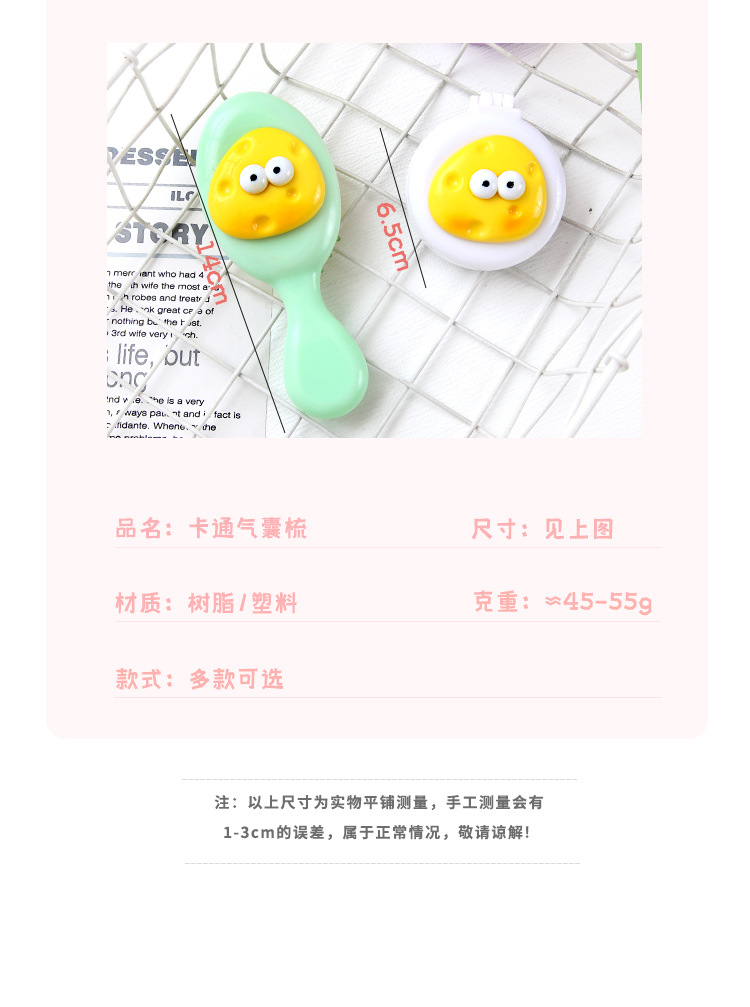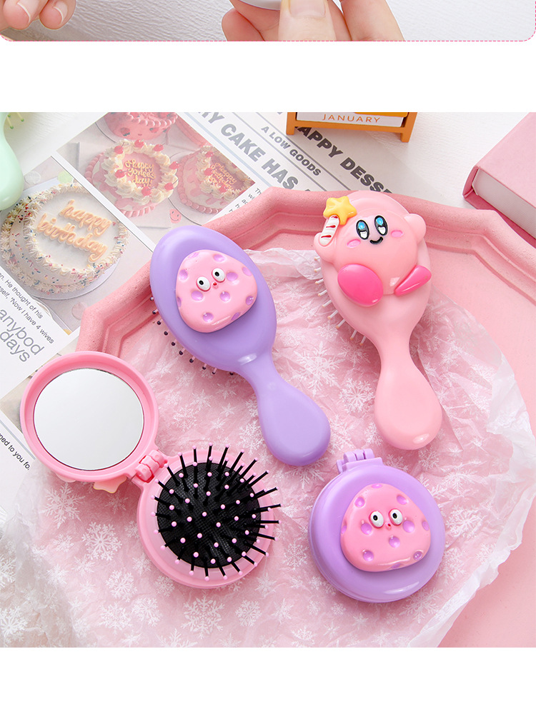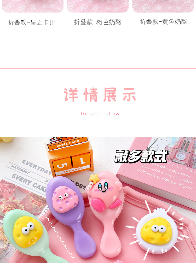 可爱卡通少女心手柄气囊梳迷你便携折叠镜子一体镜梳按摩梳子批发