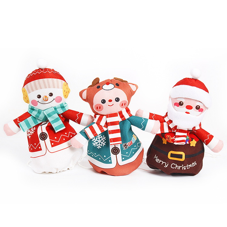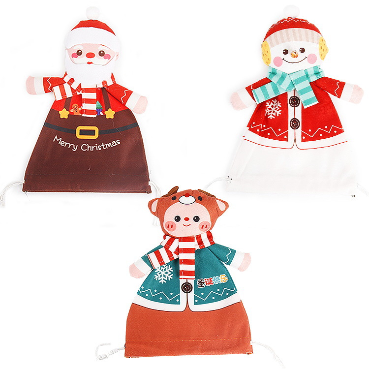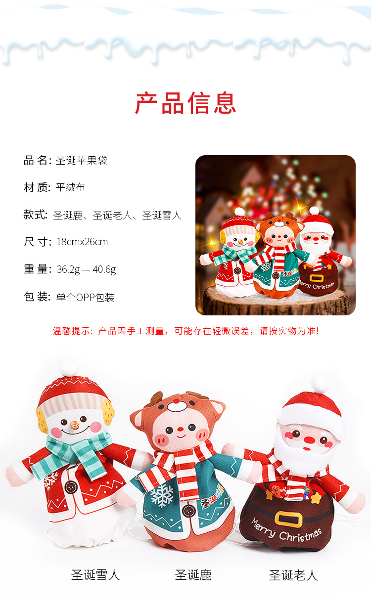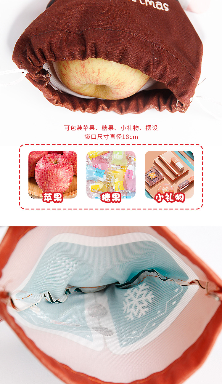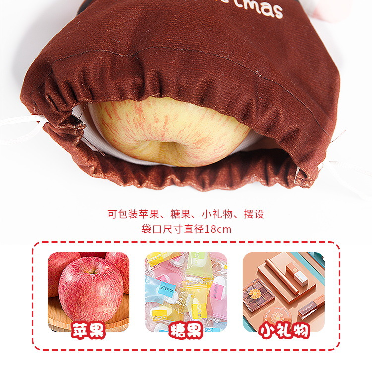 新款圣诞卡通绒布抽绳苹果袋成人儿童糖果礼物袋圣诞节装饰包装袋