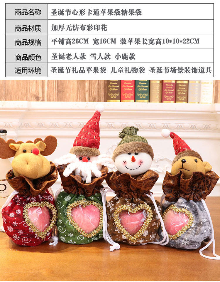 圣诞苹果袋圣诞礼物袋平安夜苹果袋小礼品袋儿童手提袋糖果包装袋