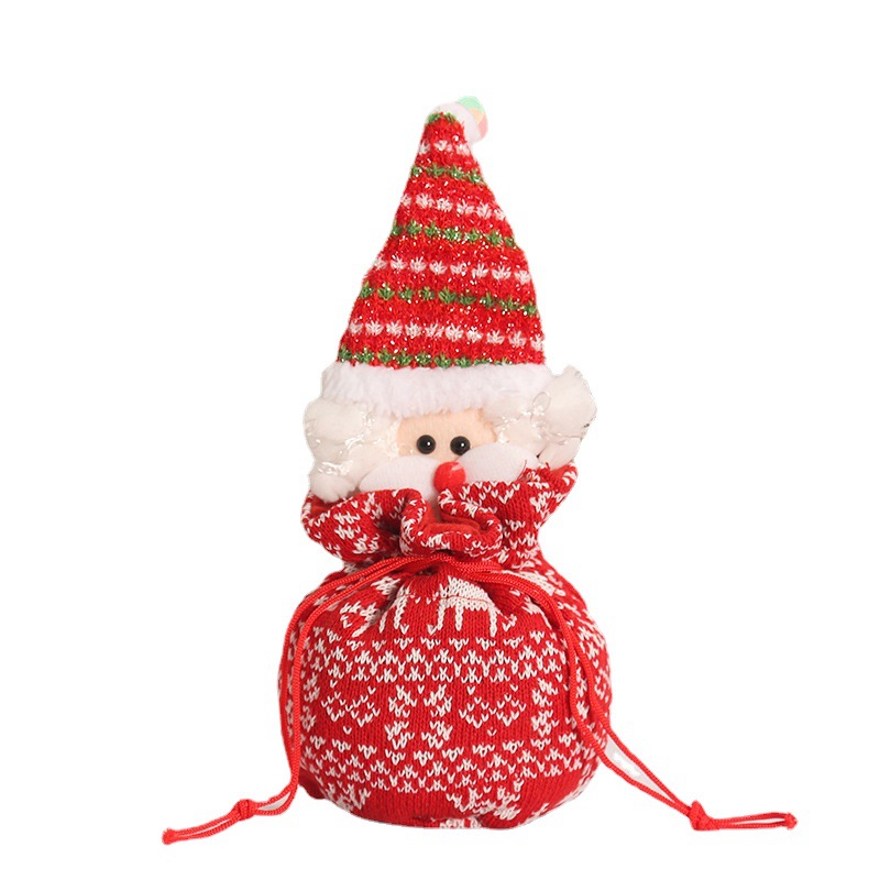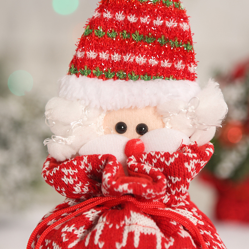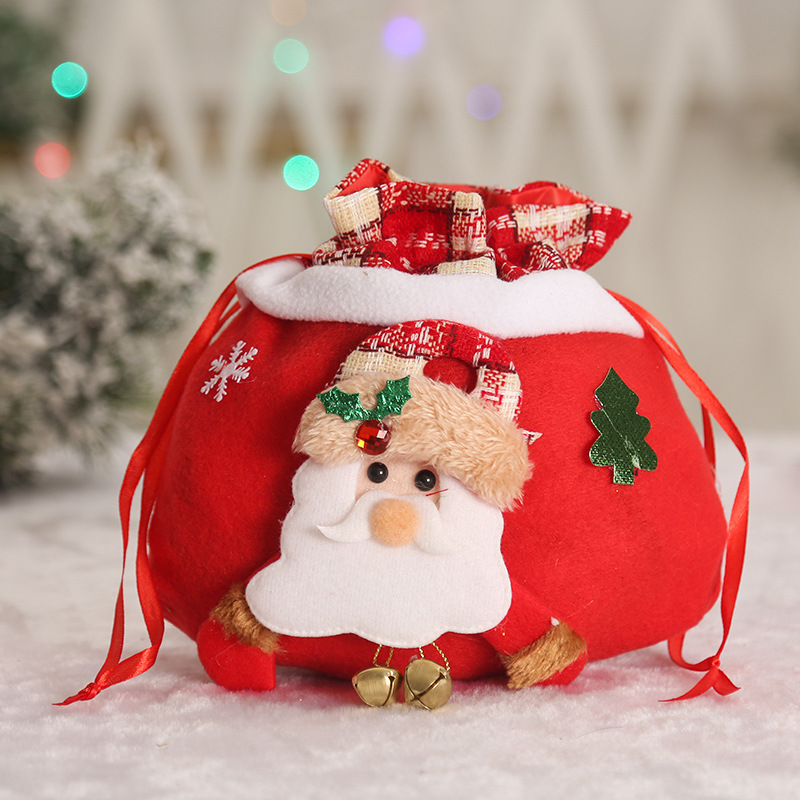 跨境热卖圣诞节礼物创意个性小熊苹果包装糖果袋拉绒布圣诞手提袋