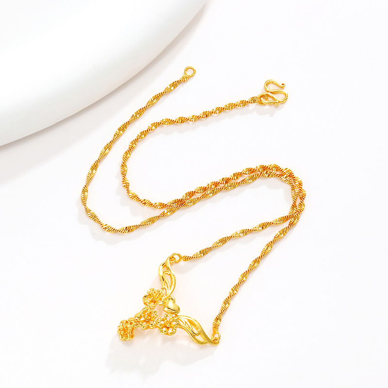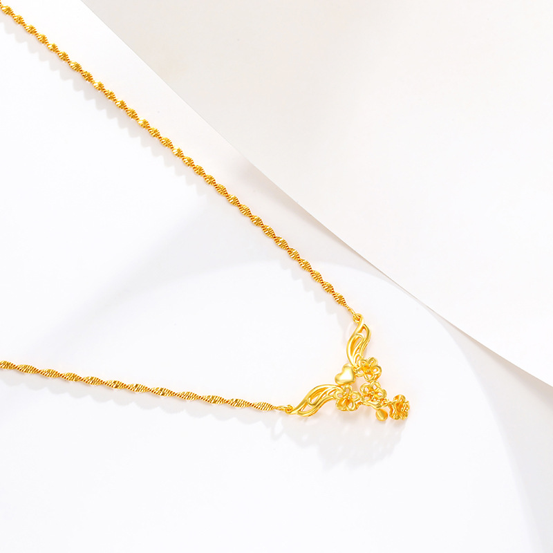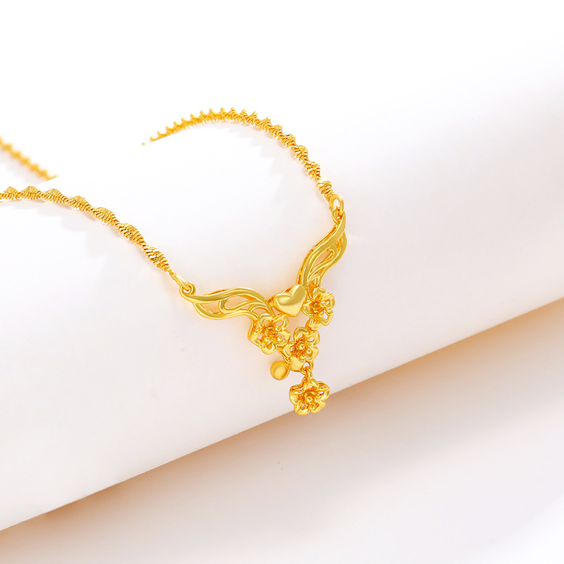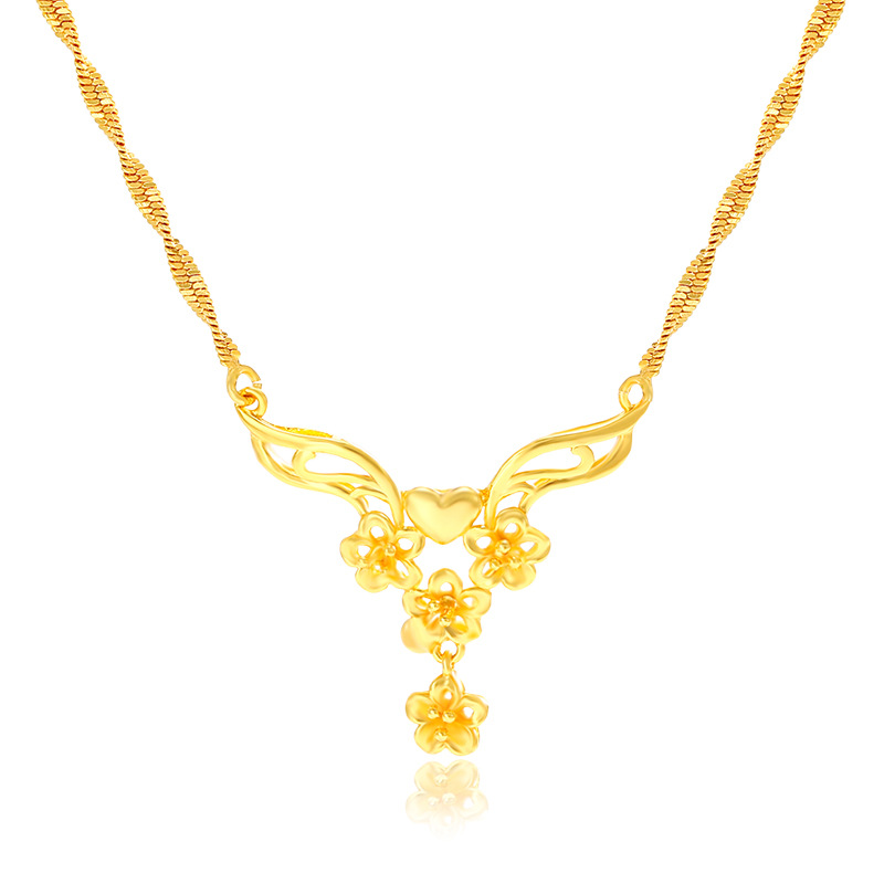 旭平首饰镀24k金色水波链花朵项链 中国风复古婚庆新娘饰品批发女