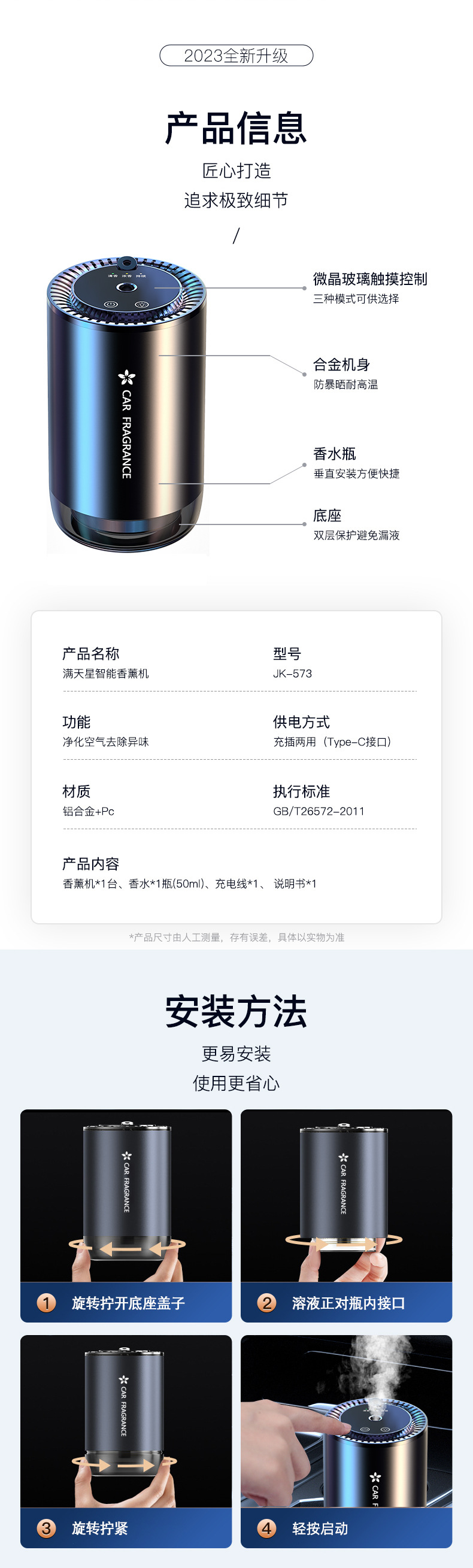 智能铝合金摆件星空顶净化除臭自动喷雾杯桶车载香薰