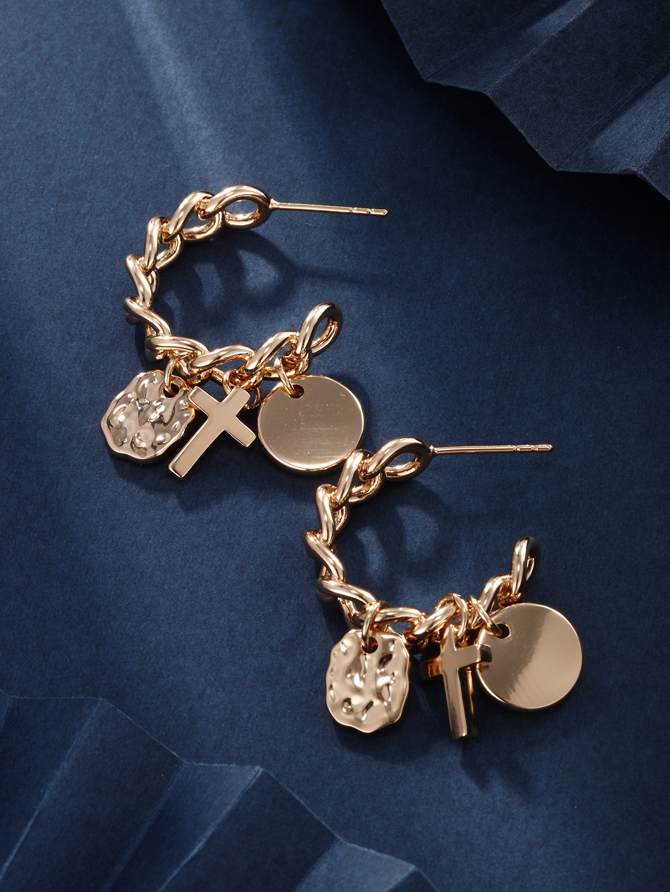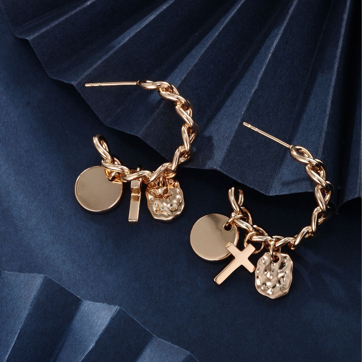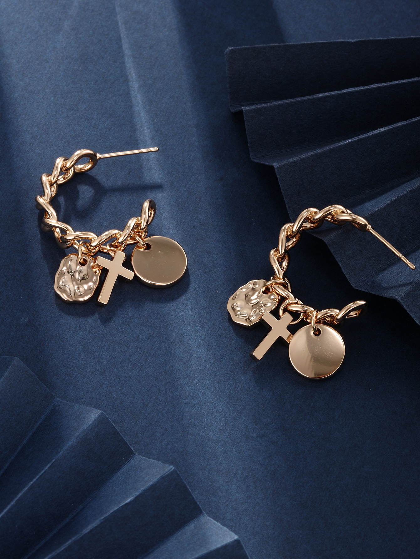 旭平首饰欧美个性小众设计感耳环女冷淡风高级感金属链条耳钉批发