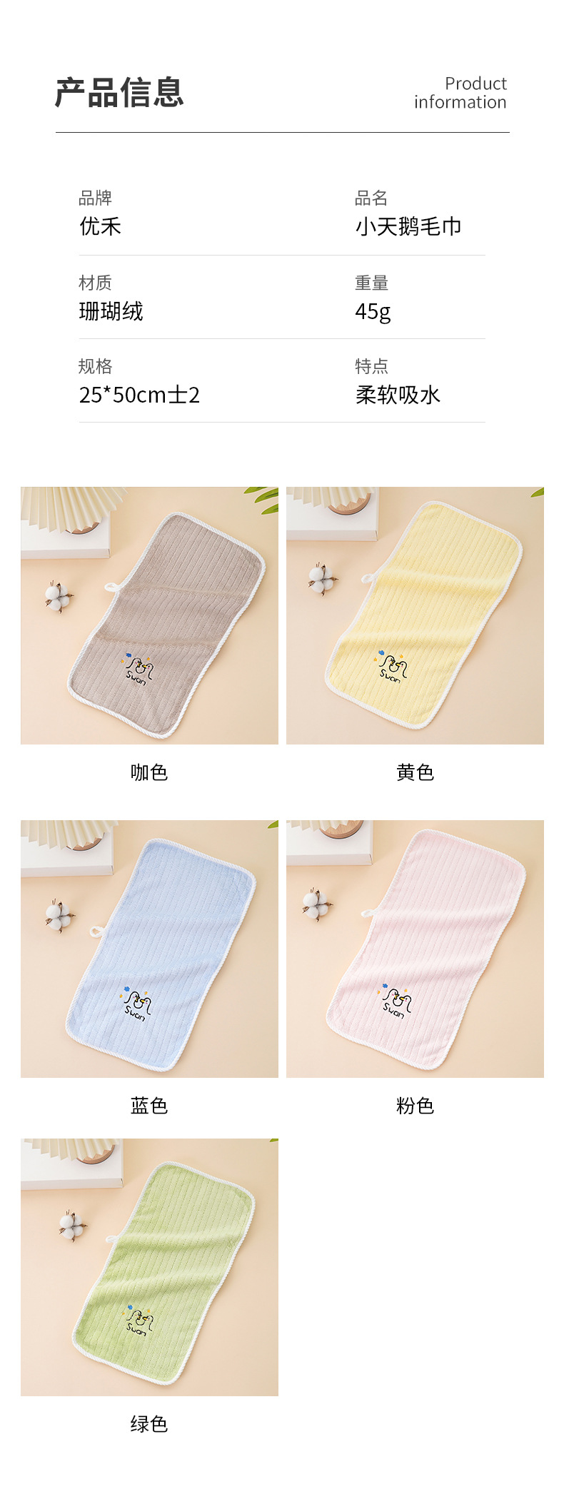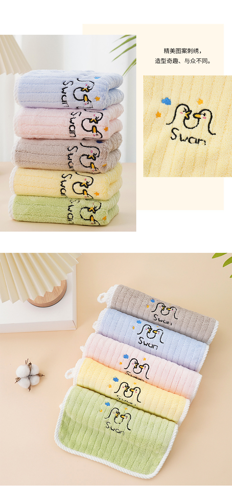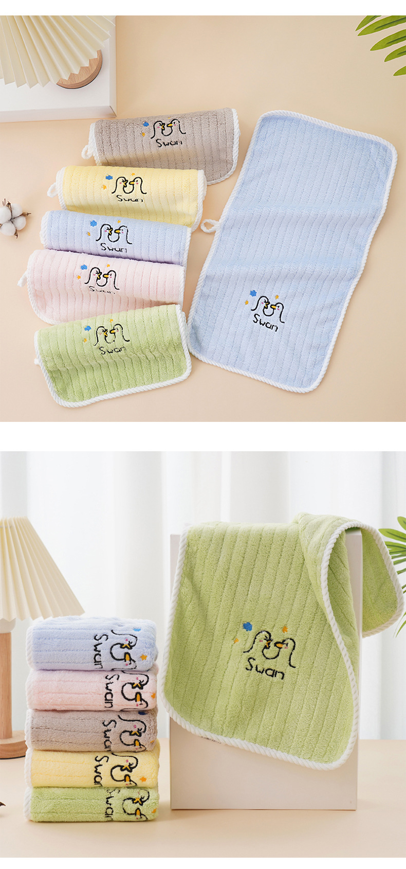 儿童毛巾珊瑚绒柔软不掉毛洗脸巾卡通小天鹅可爱刺绣幼儿园擦手巾