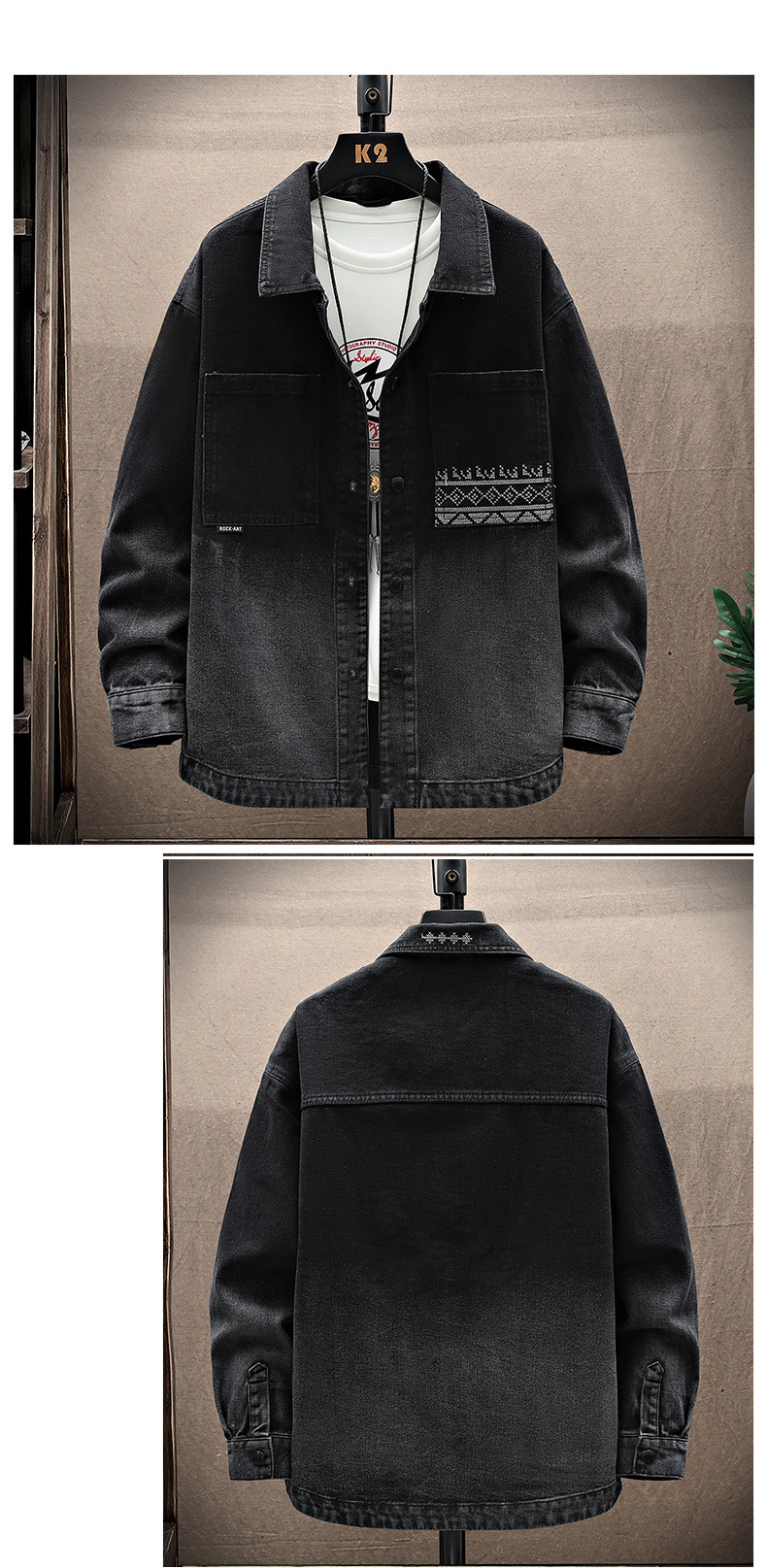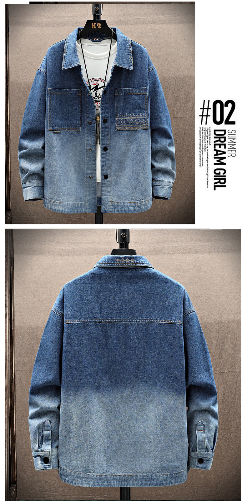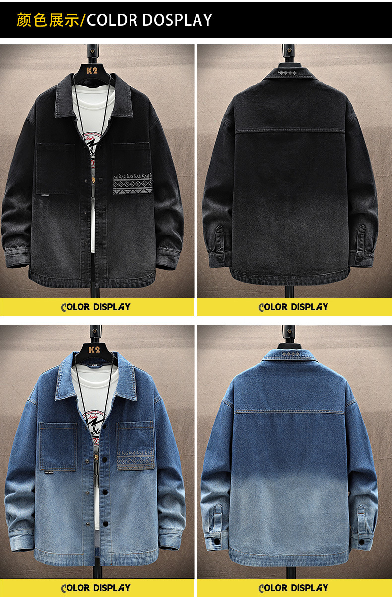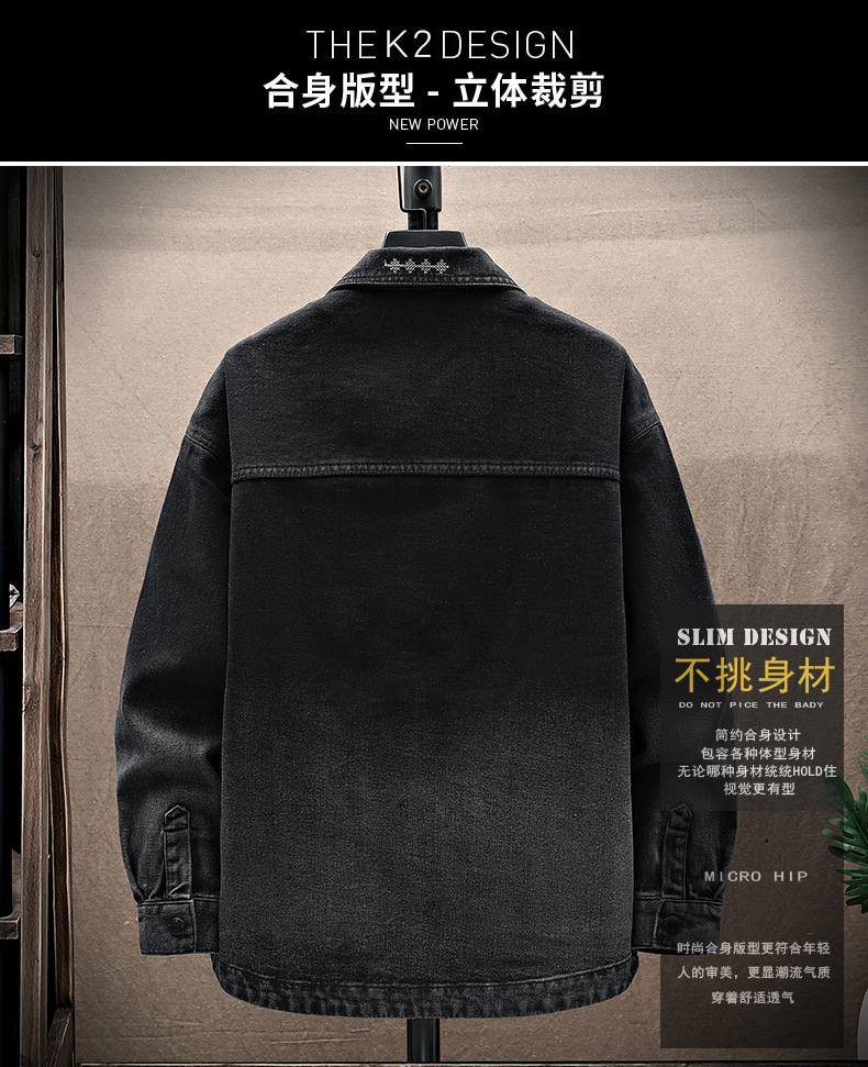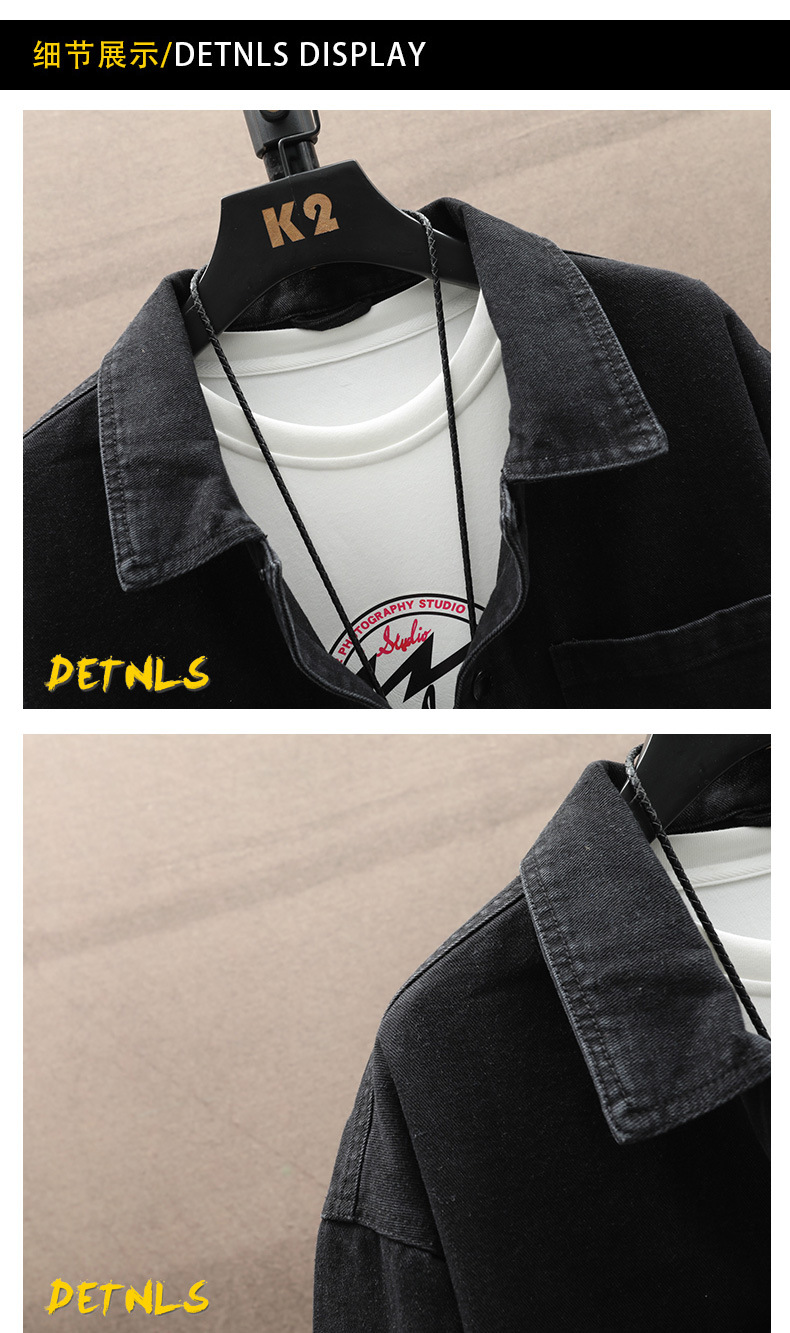 复古水洗春秋新款外套做旧男士牛仔外套宽松潮流百搭衬衫上衣夹克