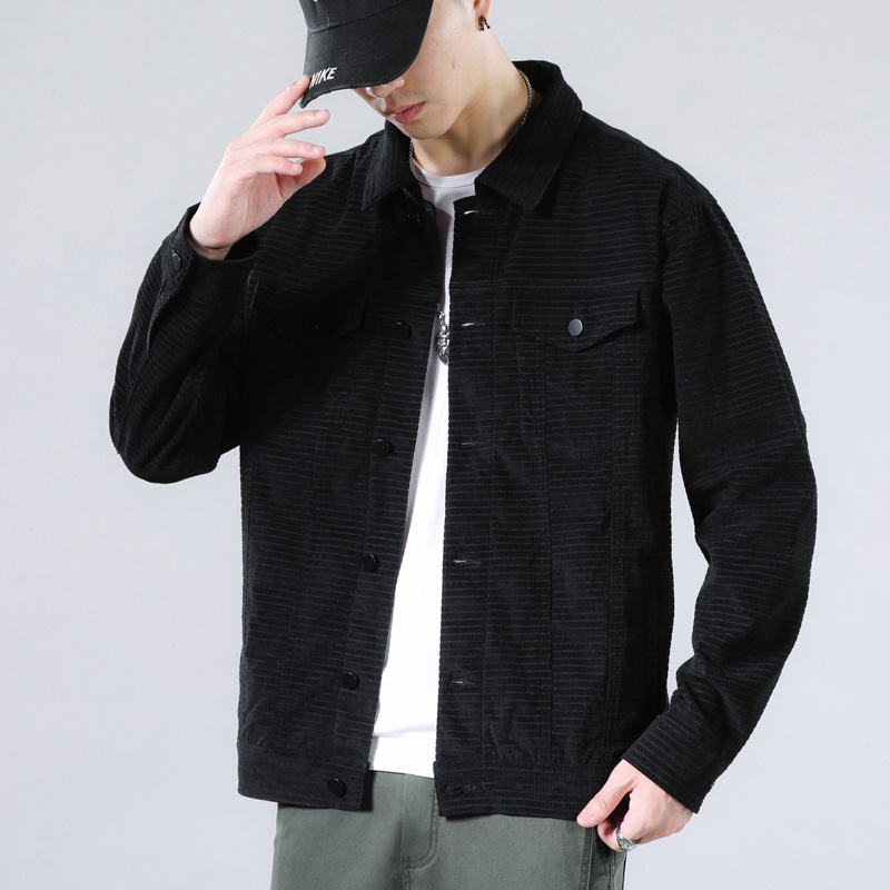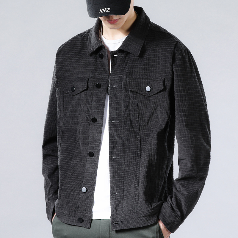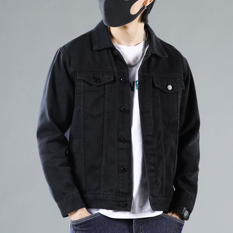 大码工装外套男士潮流2023春秋季纯棉宽松口袋帅气牛仔衣休闲夹克