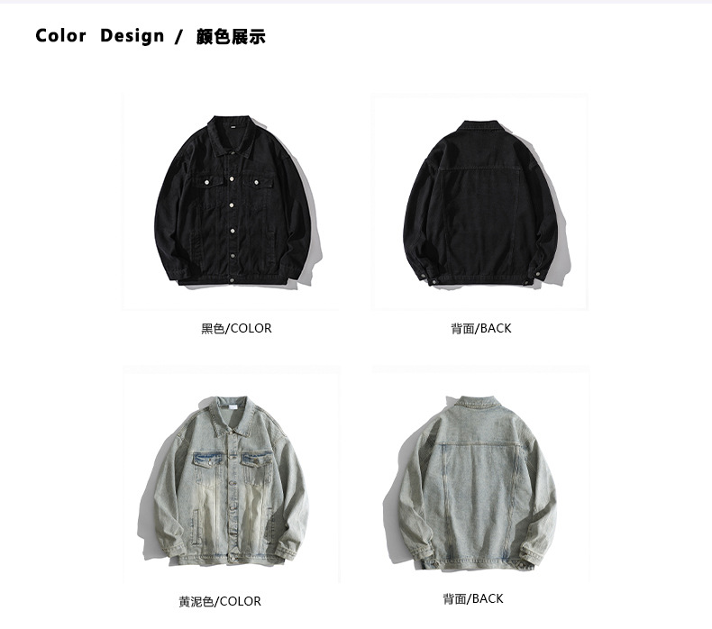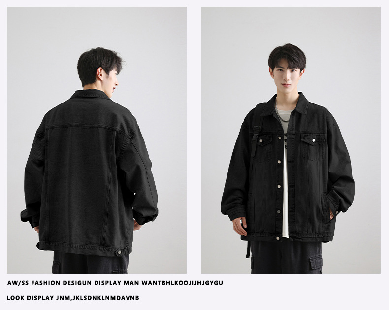 牛仔外套男生牛仔衣夹克黑色美式高街春秋冬季宽松潮外穿长袖大码