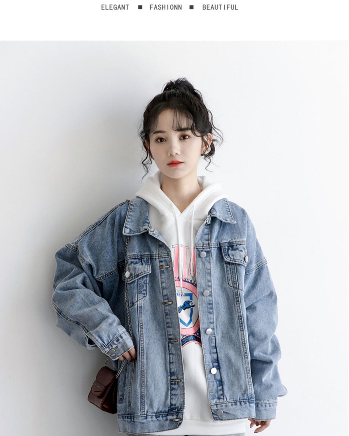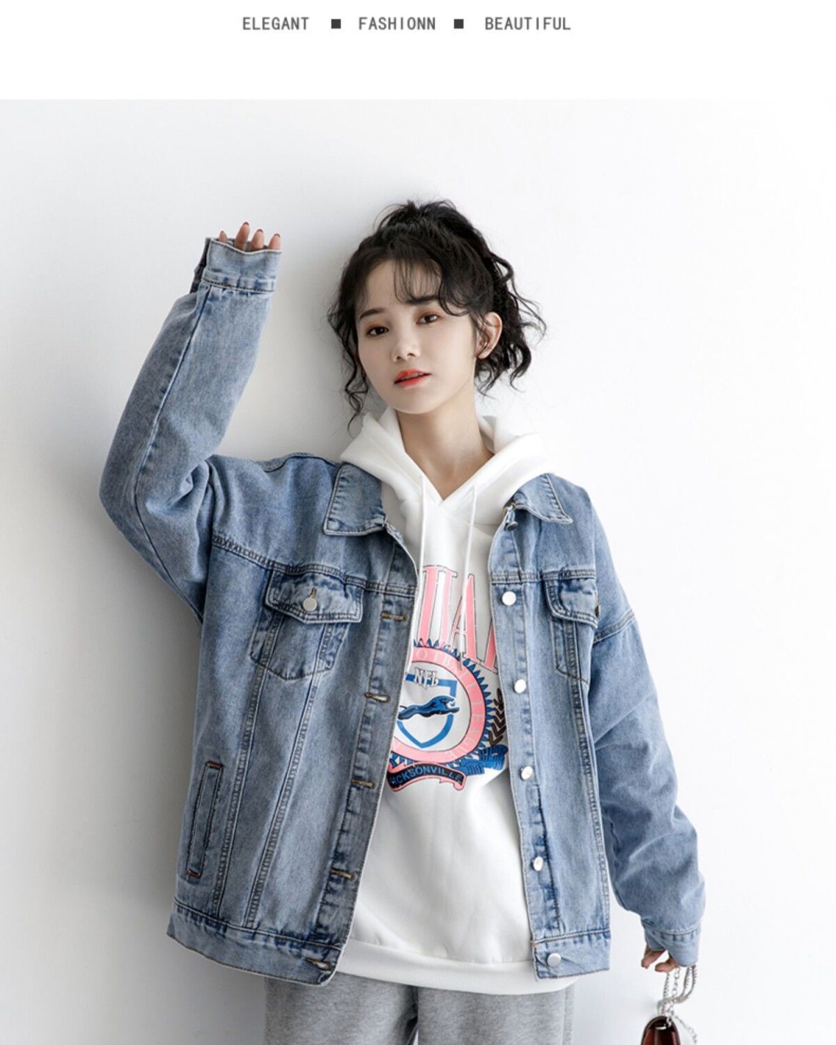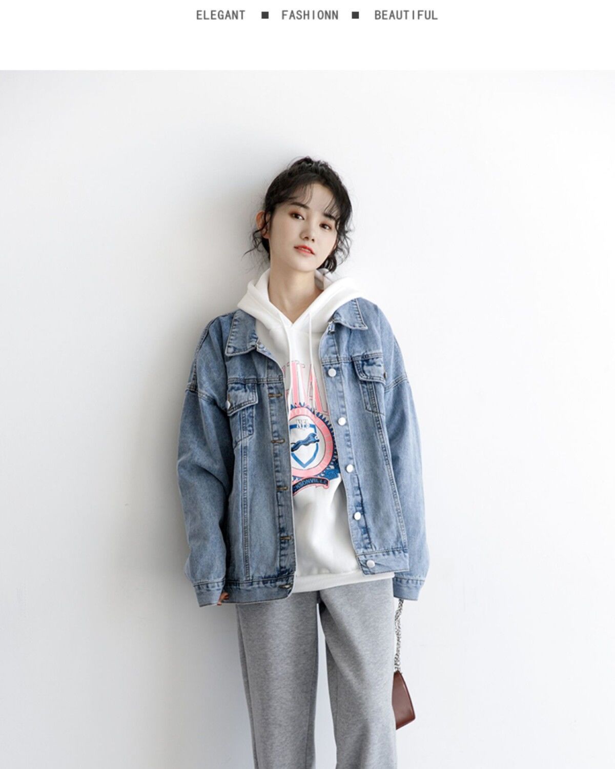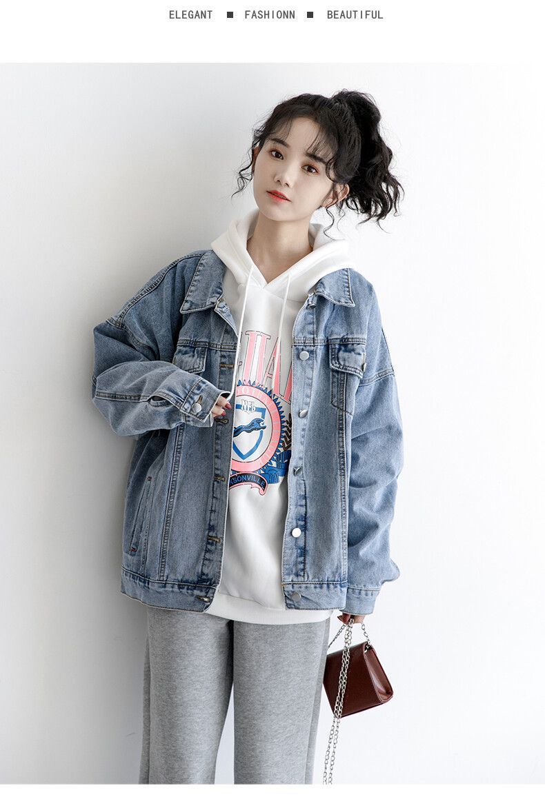 牛仔外套女2023秋季新款宽松韩版简约百搭学生上衣休闲牛仔夹克潮