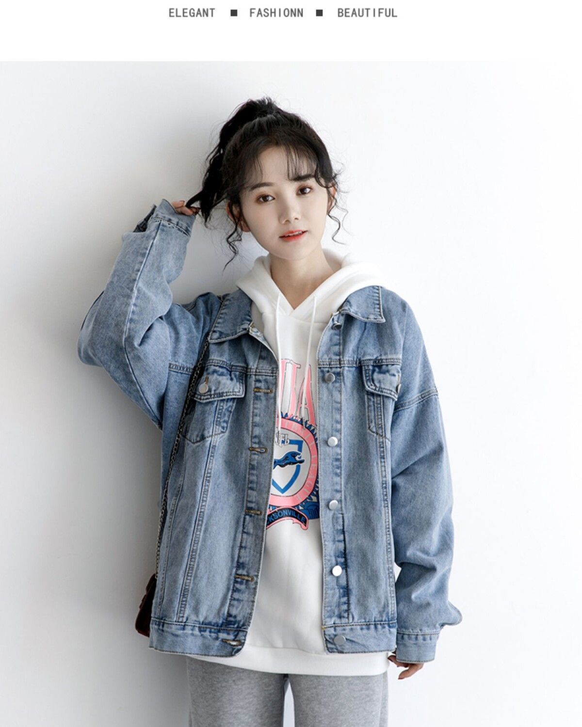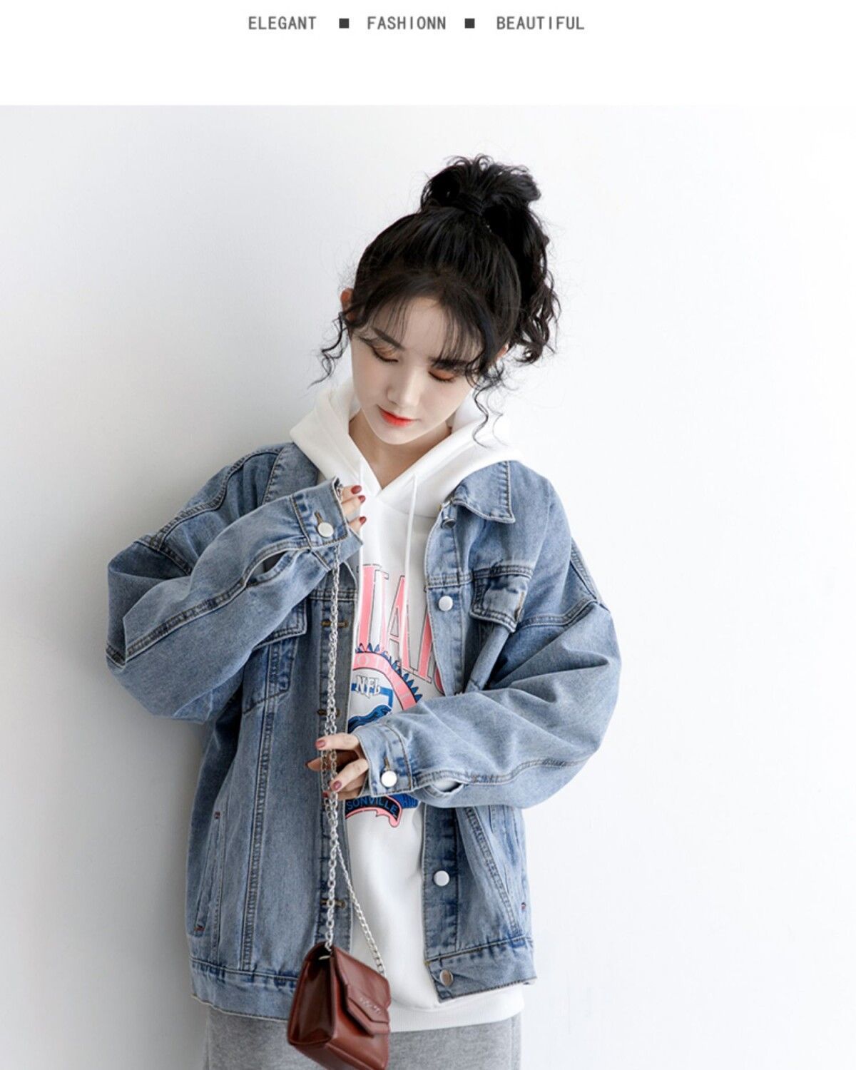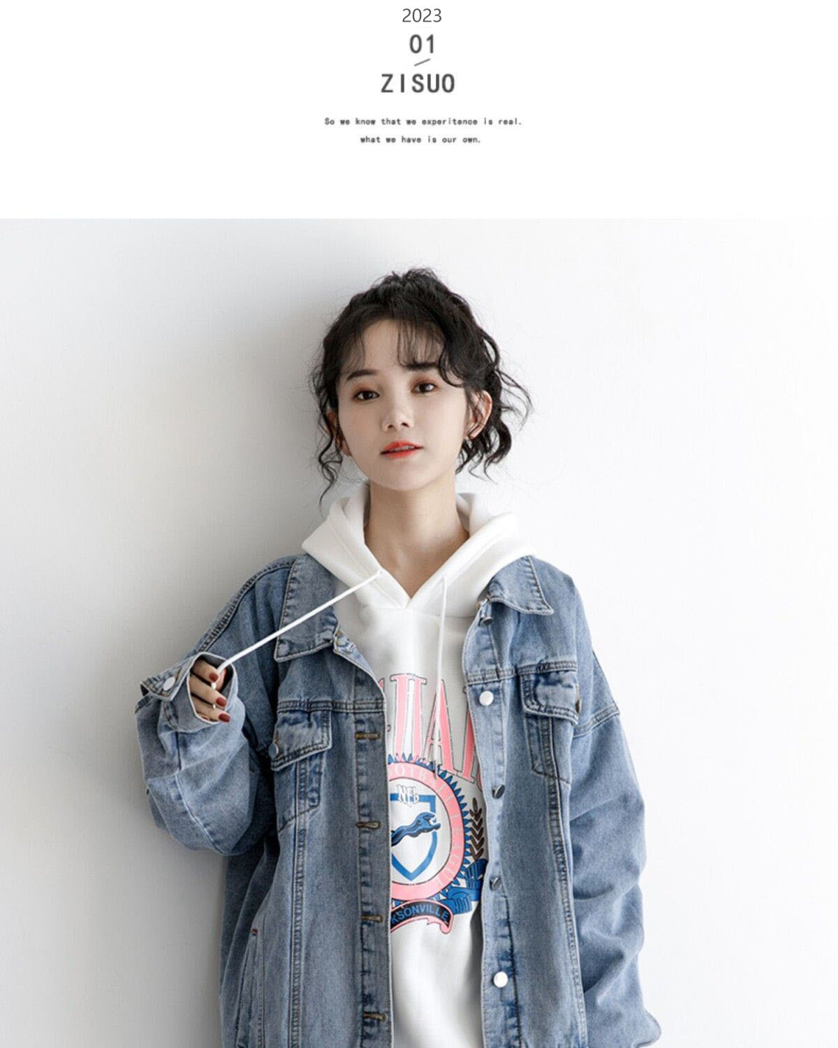 牛仔外套女2023秋季新款宽松韩版简约百搭学生上衣休闲牛仔夹克潮