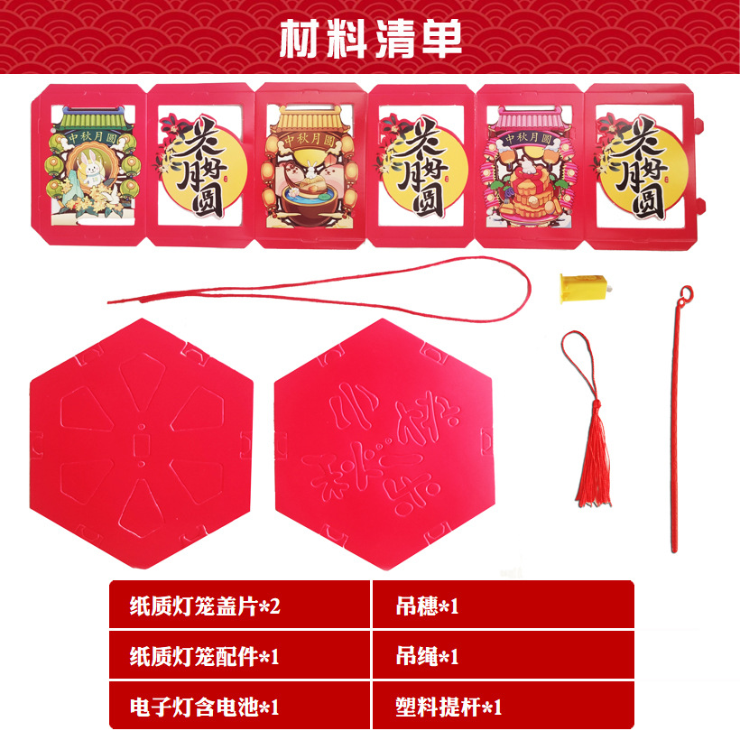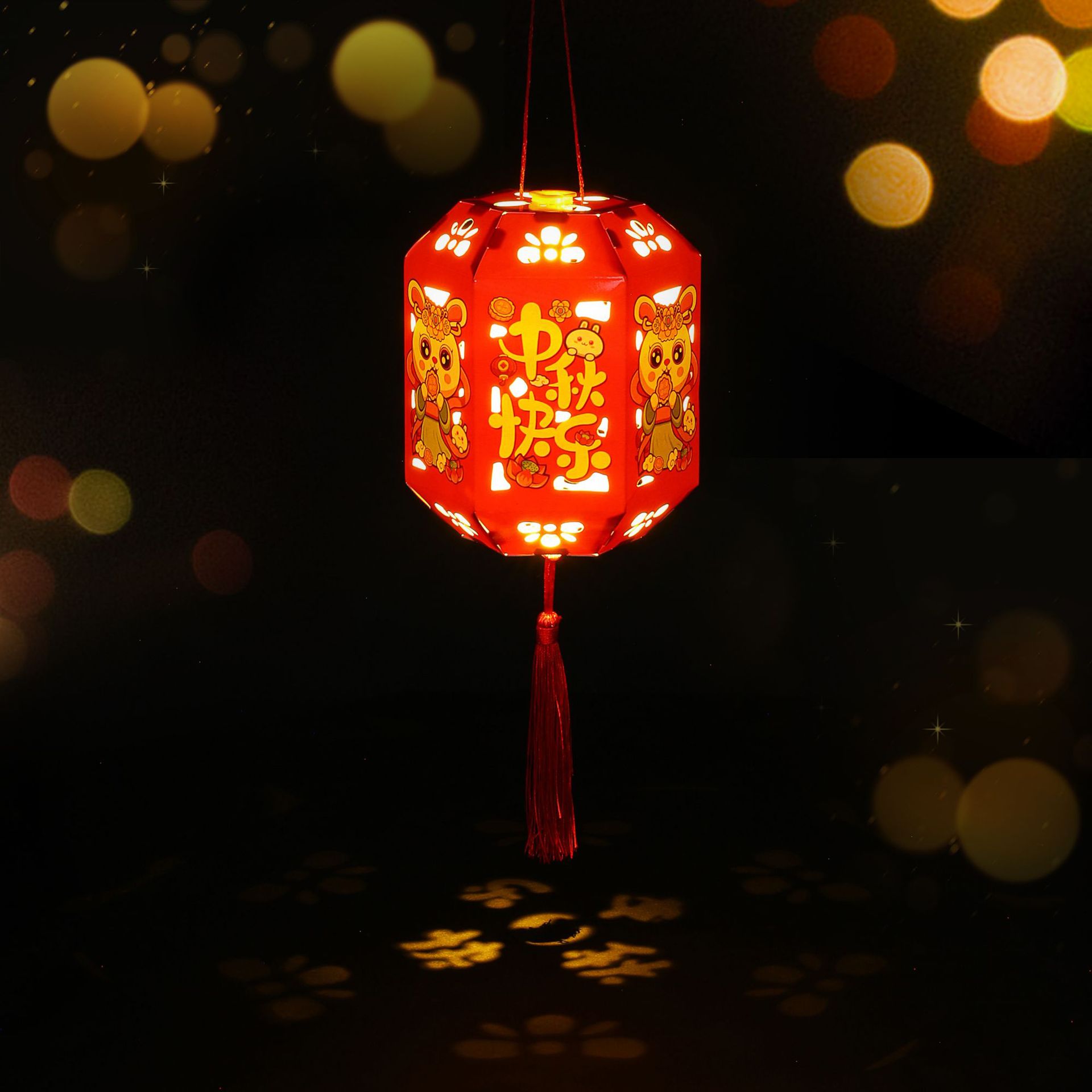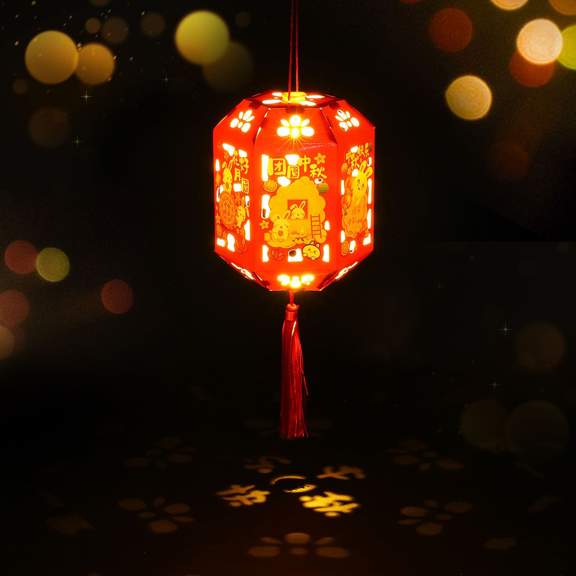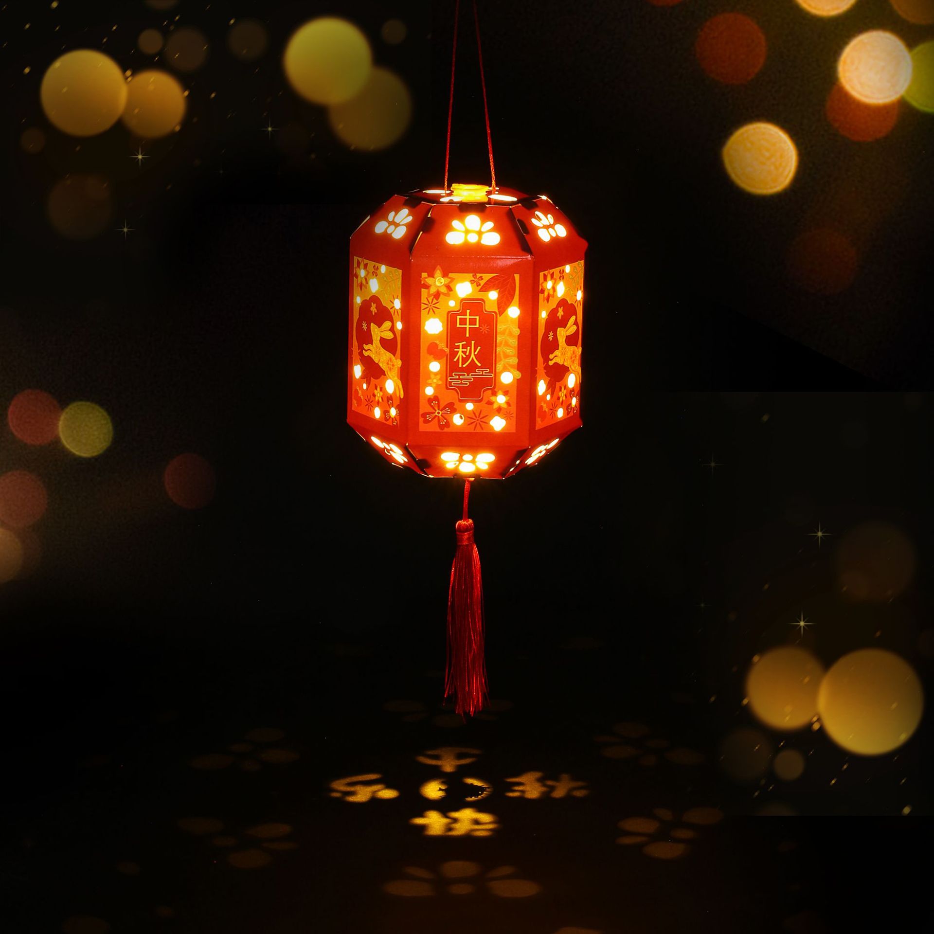 中秋节手提灯笼幼儿园手工diy投影材料走马灯儿童手工发光纸花灯