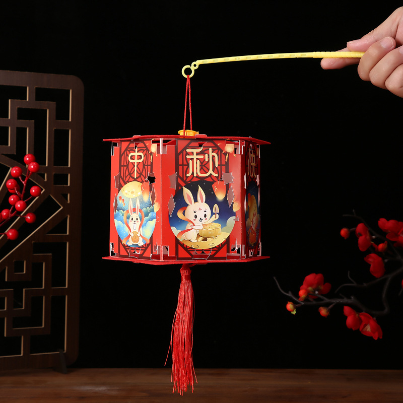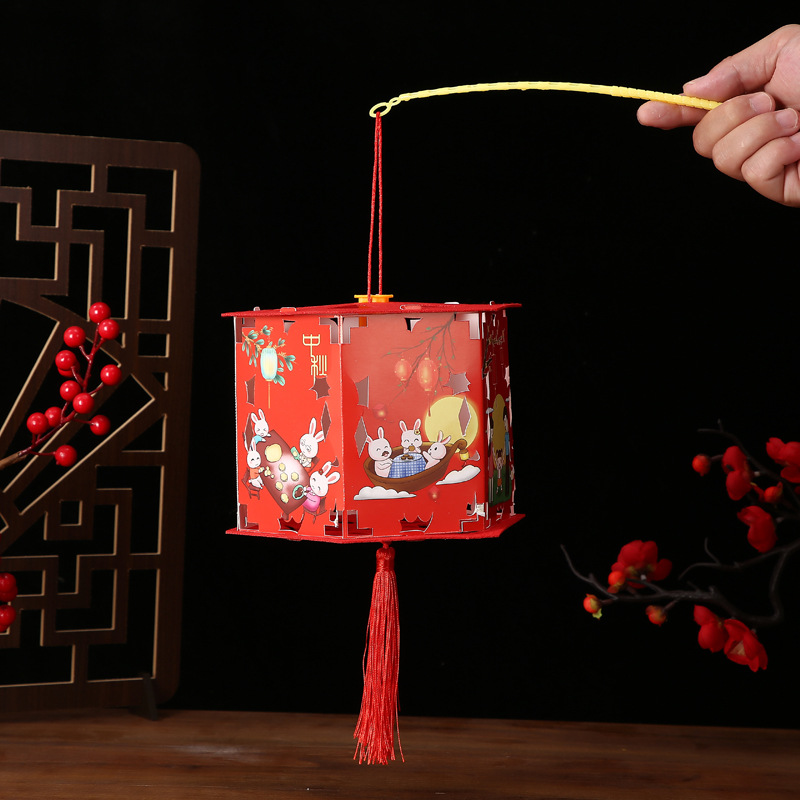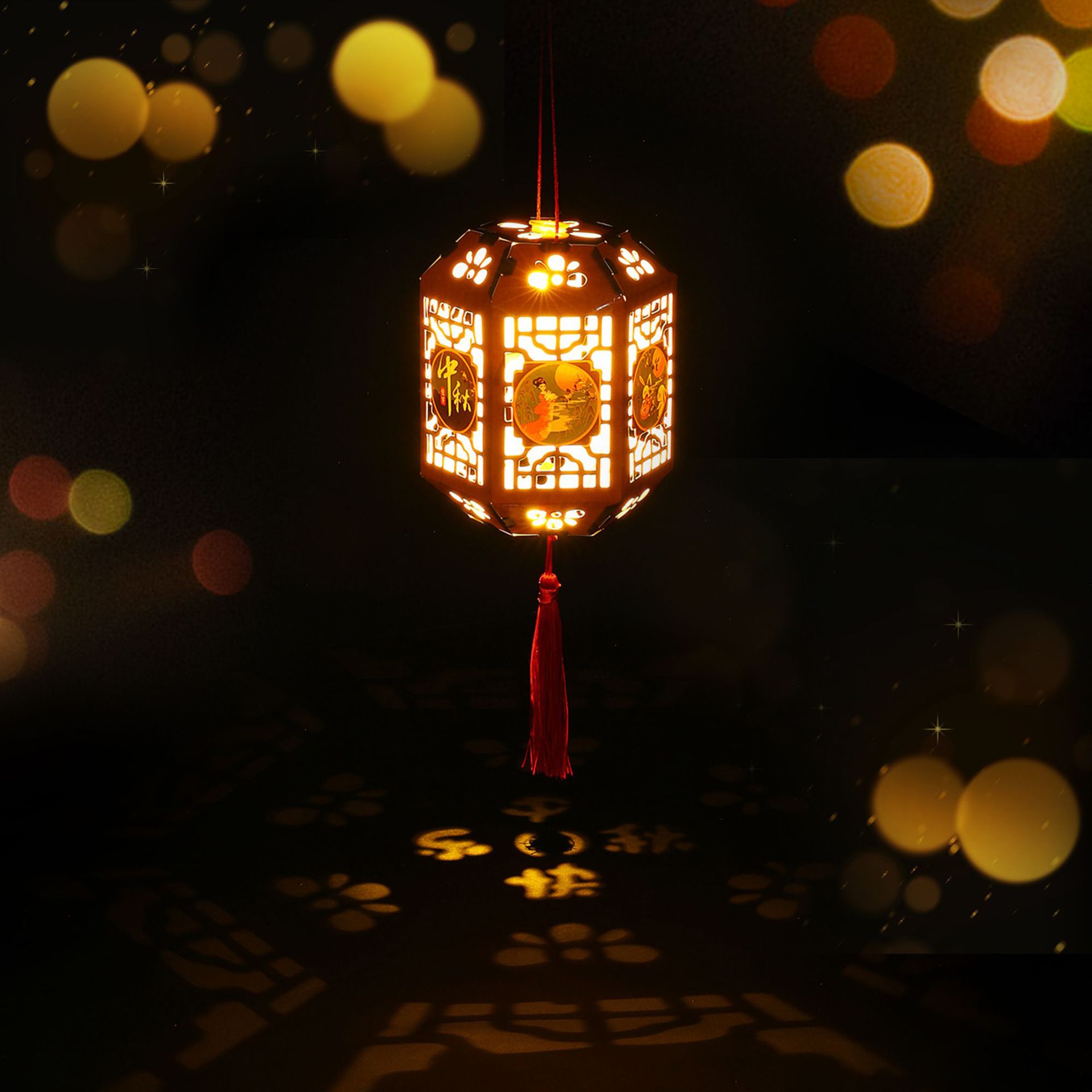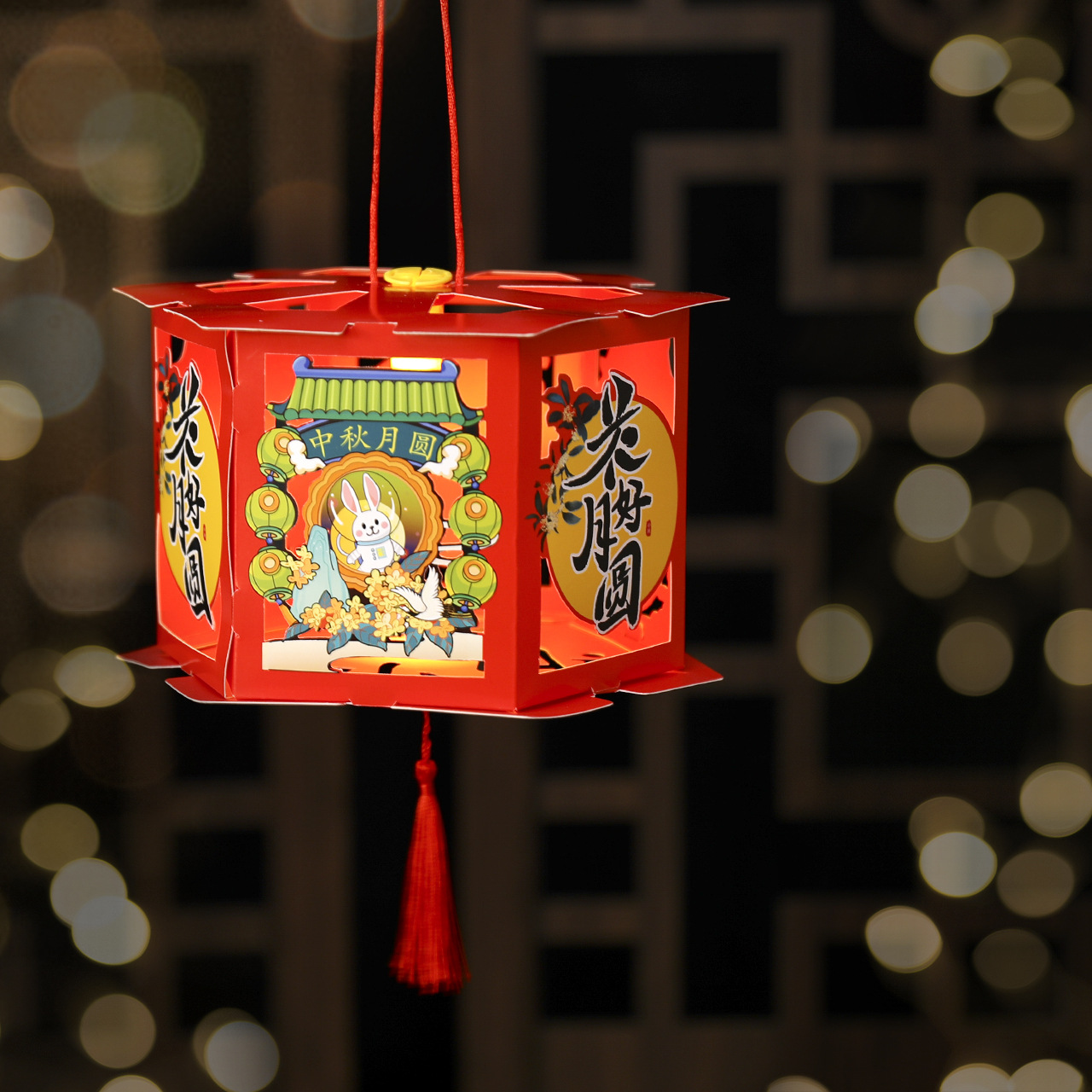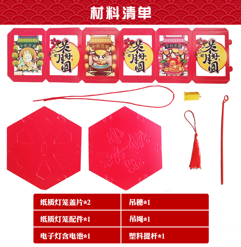 中秋节手提灯笼幼儿园手工diy投影材料走马灯儿童手工发光纸花灯