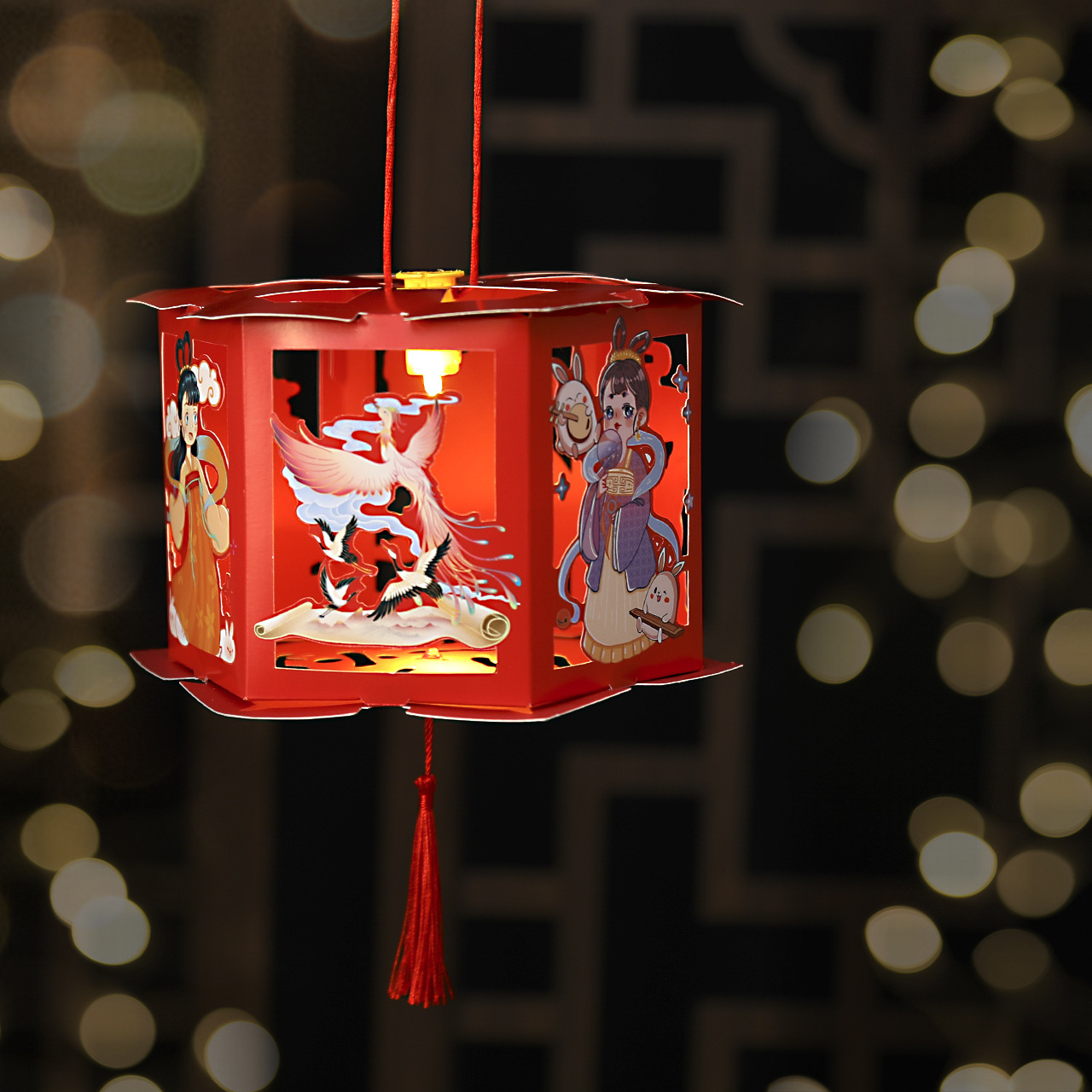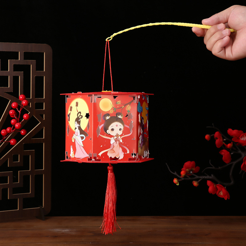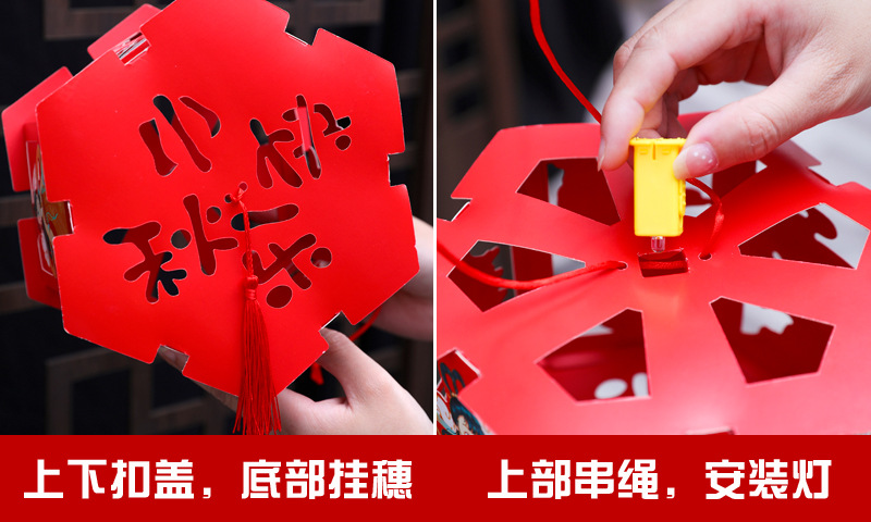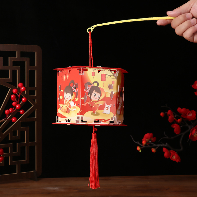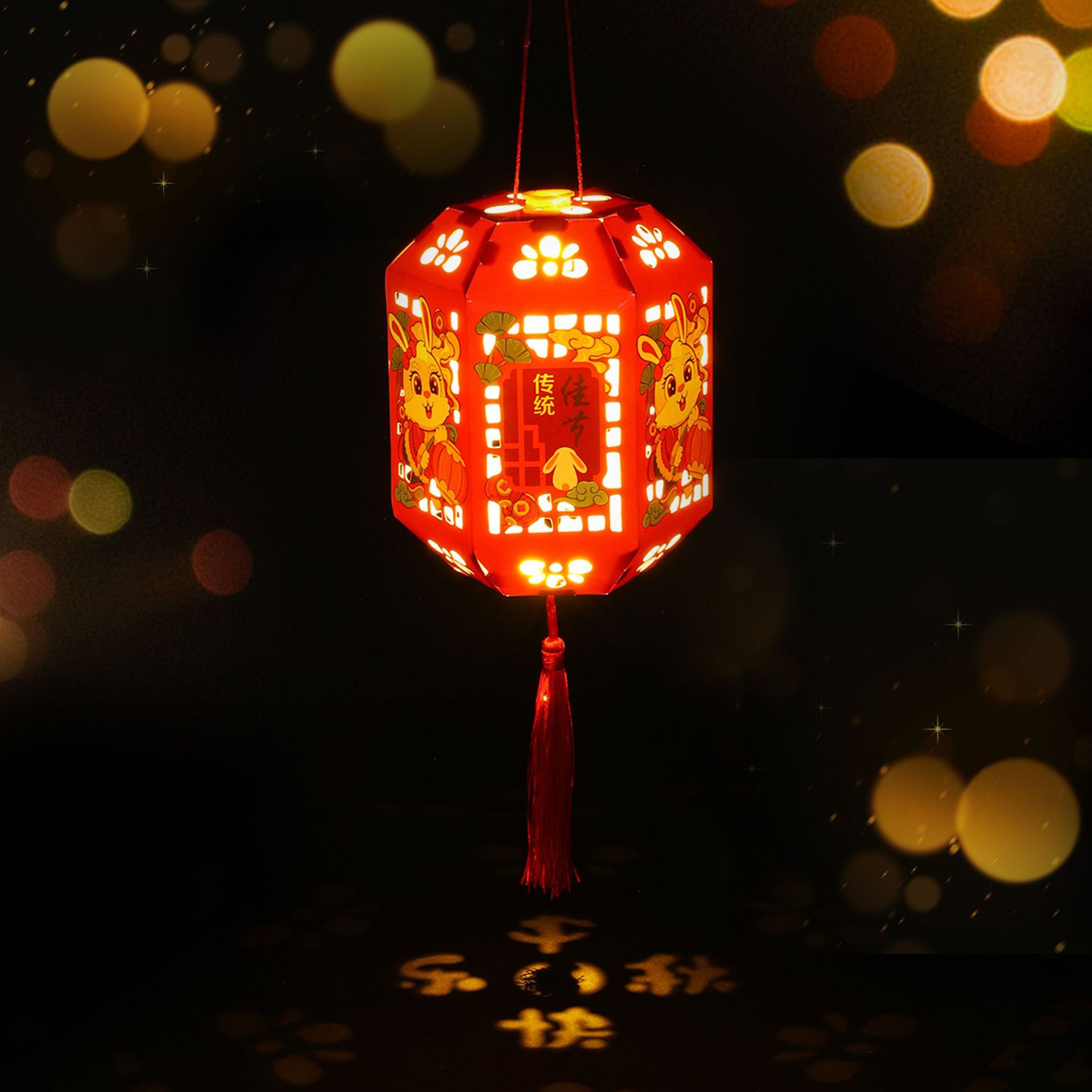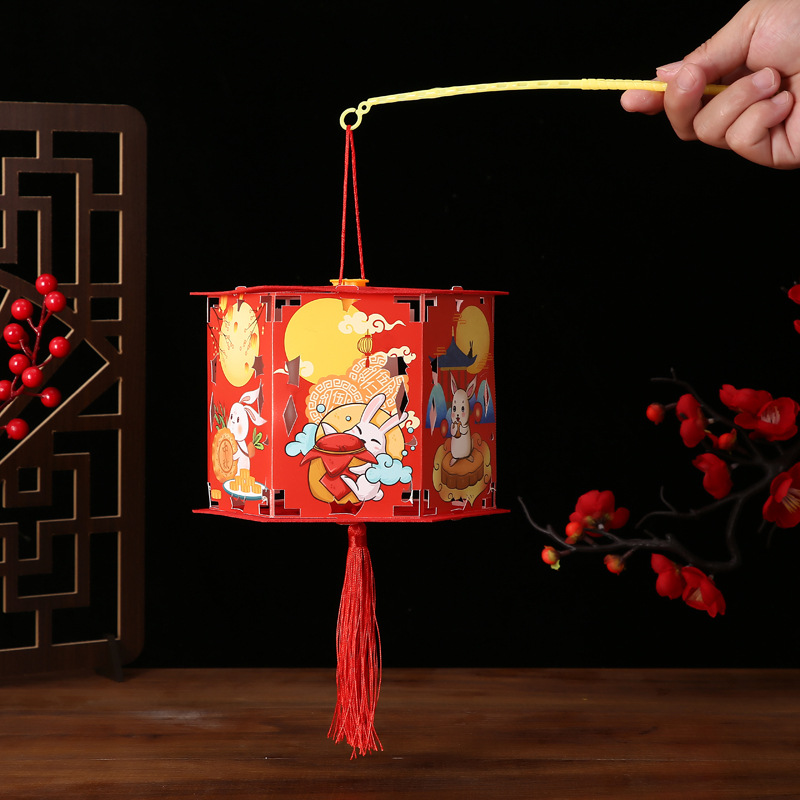 中秋节手提灯笼幼儿园手工diy投影材料走马灯儿童手工发光纸花灯