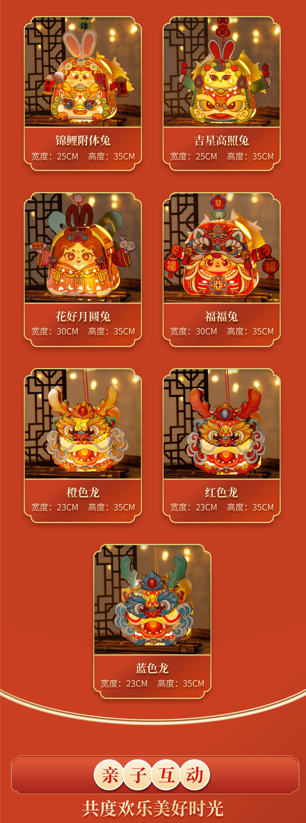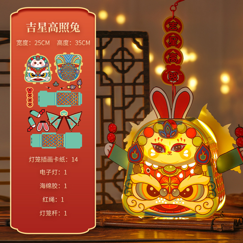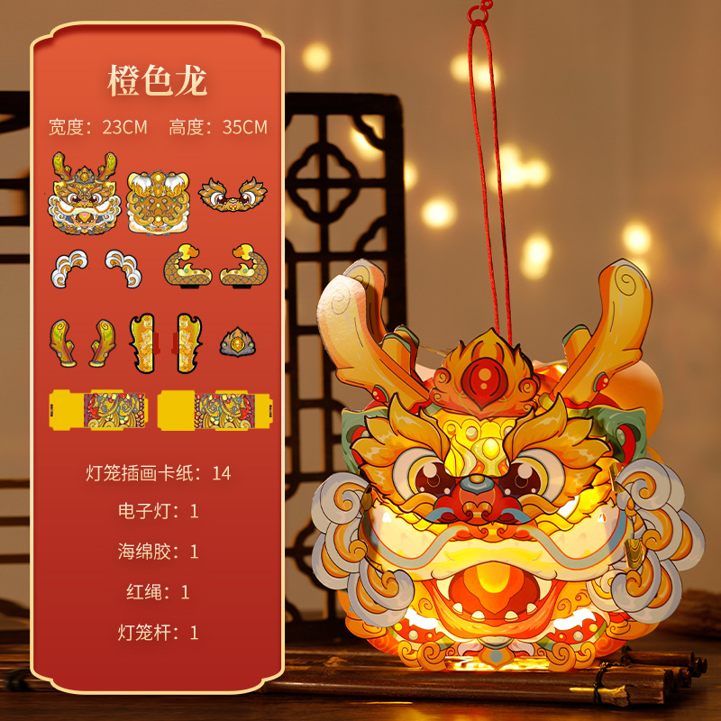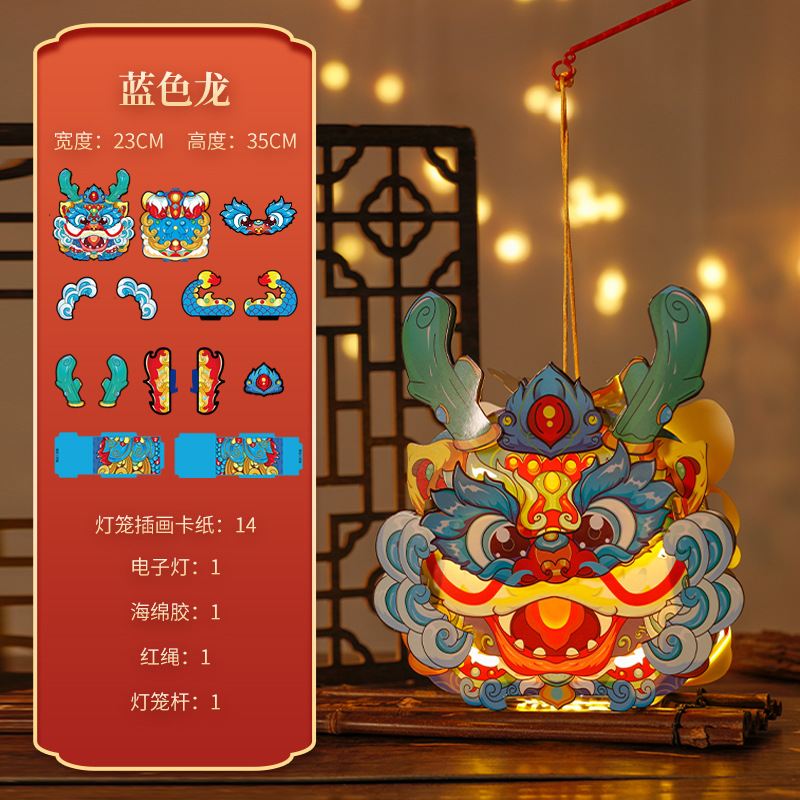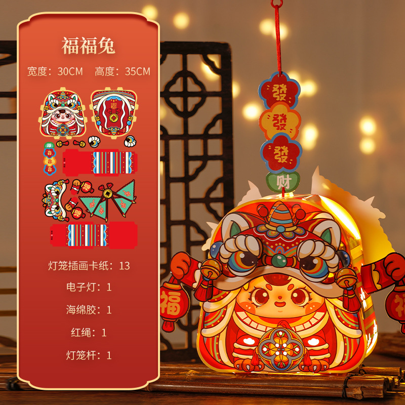 2025新年手提灯笼春节diy材料包儿童卡通国潮龙灯笼新款花灯发光